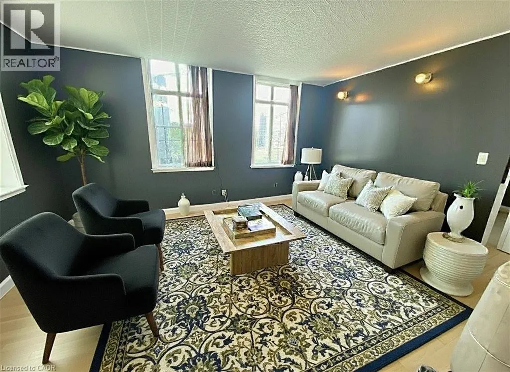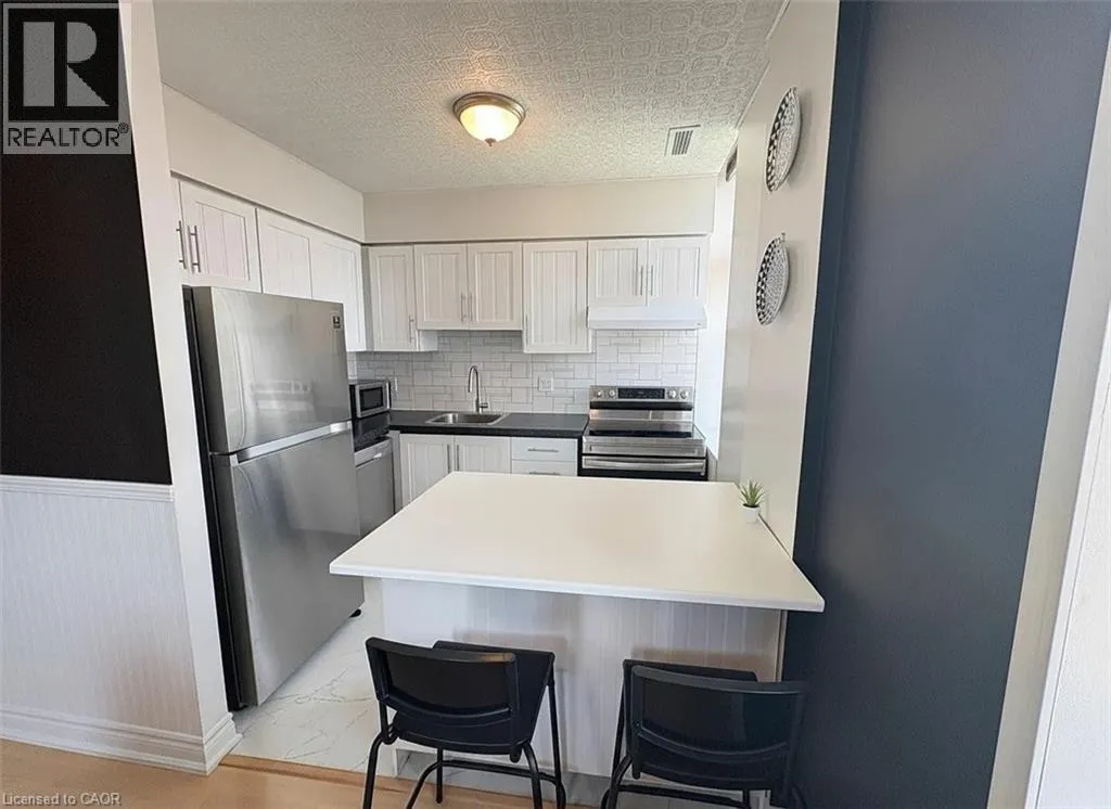 James St. South between King and Main Welcome home to 36 James St S, set on the top floor (15th) of the historic Pigott Buildingâa 108-suite heritage landmark in the heart of downtown Hamilton. Enjoy beautiful city views and a walk-to-everything location just steps to shopping, Hamilton GO, nightlife, and excellent restaurants. This modern, bright, and spacious 1-bedroom welcomes you with classic black-and-white tile at the entry accent ceiling and decorative tile in bathroom. The kitchen features stainless steel appliances (including a dishwasher), a breakfast bar, and large windows that flood the home with natural lightâcarried through to the living area, which comfortably accommodates a lounge plus home office or dining area. The bedroom is generous in size, and the sleek 4-piece bath offers a gorgeous glass door bath and shower. Conveniences include in-suite laundry, while building amenities feature a gym and party room. A designated parking spot completes this exceptional urban offering. $1950 Plus Hydro/heat (id:27476)