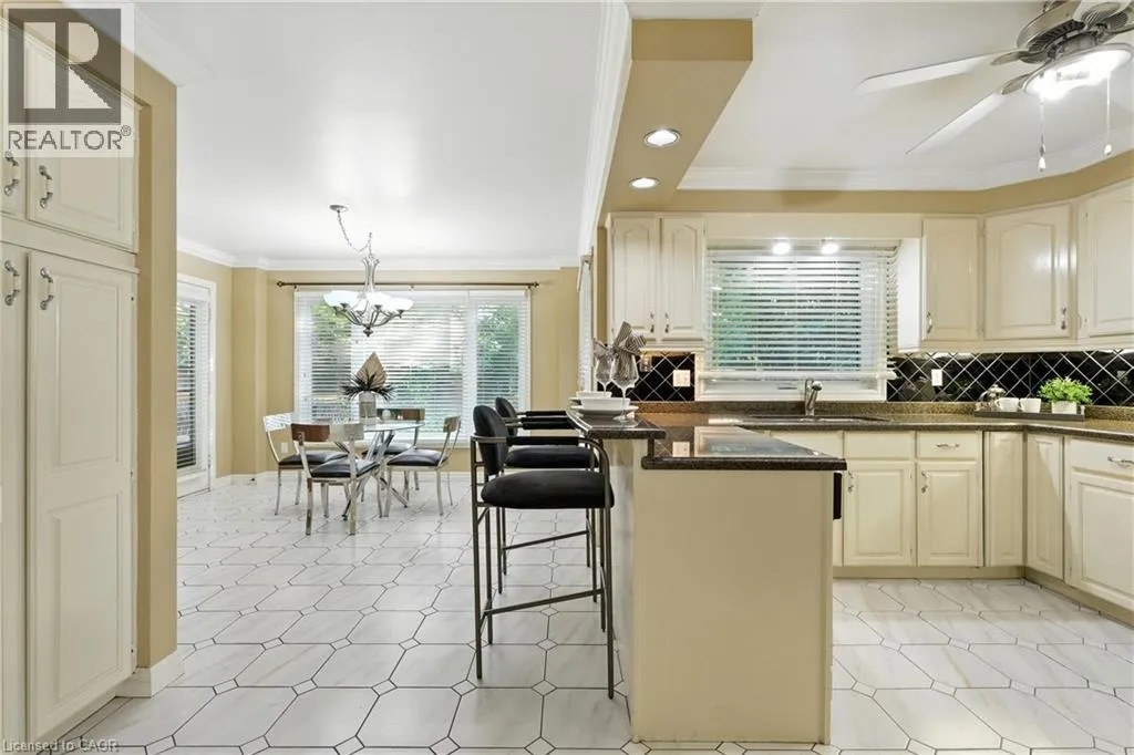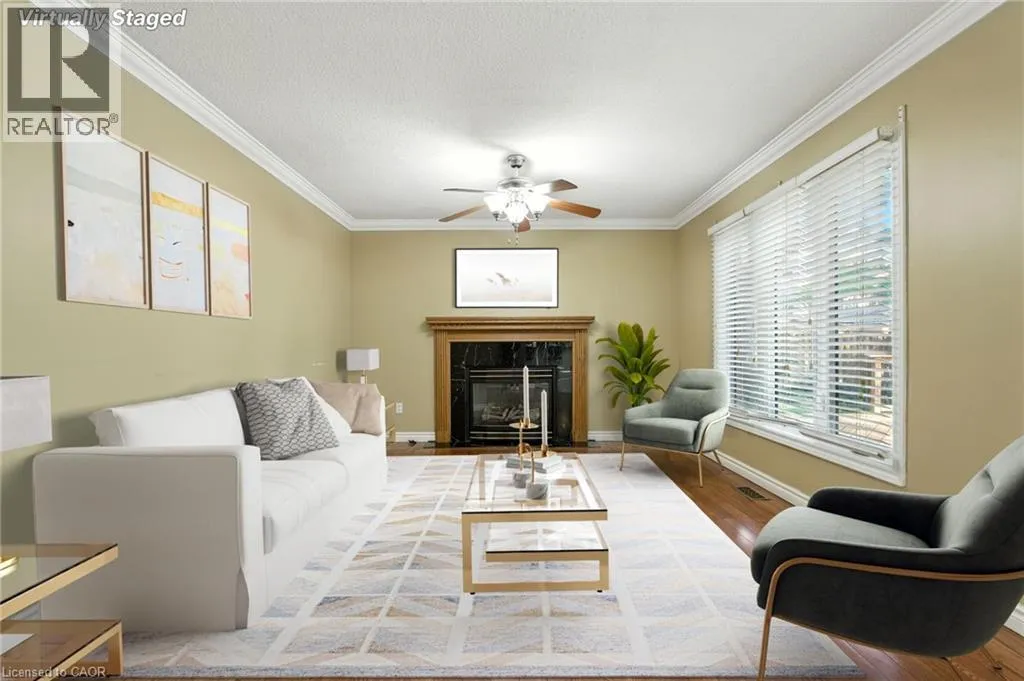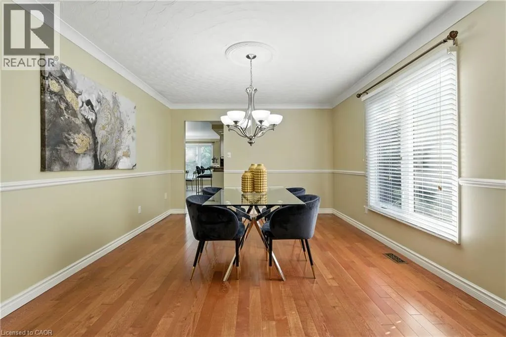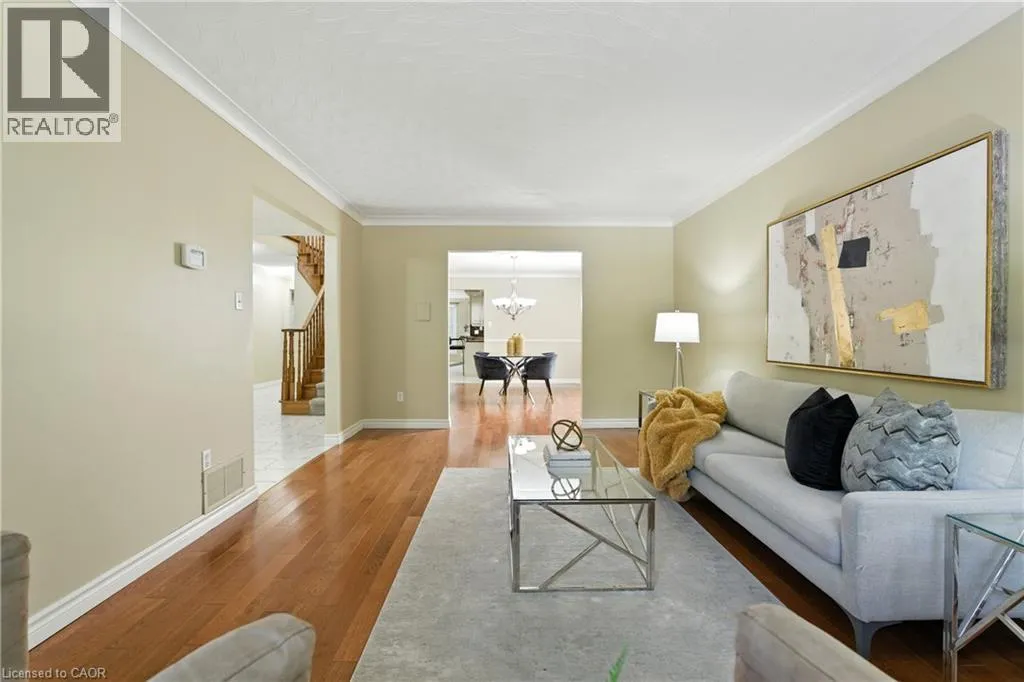 York Road to Watsons Lane to Renata Court Custom-Built 5 Bedroom Home in Prestigious Cooteâs Paradise! Welcome to this stunning all-brick 3,588sqft home, situated in one of Dundasâs most desirable neighborhoods. Impeccably cared for by the original owners for 35 years, this home combines timeless quality, thoughtful design & unique features. The bright and spacious main level boasts large principal rooms, including a living rm, dining rm, family rm w/ gas fireplace, office, kitchen w/ breakfast nook, main-level laundry & 2pc bath. Gleaming hardwood floors & ceramic tile flow throughout. Solid oak staircase leads to the second level, highlighted by an oversized primary suite w/ 6pc ensuite, walk-in closet & walk-out balcony. Three additional spacious bdrms, 4pc bath & versatile oversized room w/ its own 3pc ensuite, fireplace, hardwood floors & wet bar provide endless options â perfect as 5th bdrm, games rm, entertainment lounge, in-law suite, or nannyâs quarters. Partially finished basement w/ rough-in bath offers a blank canvas for your personal needs. Set on generous 62 x 105 lot, the private backyard features 19 x 21 deck, mature trees & sprinkler system. The double-wide aggregate drive & double garage add curb appeal & convenience. Updates over the years include roof, furnace, AC, windows, electrical & more. Unbeatable location w/ nearby trails to Webster & Tews Falls, Dundas Valley Conservation Park, minutes to quaint Dundas shops, restaurants, schools & McMaster University. A truly one-of-a-kind home! (id:27476)