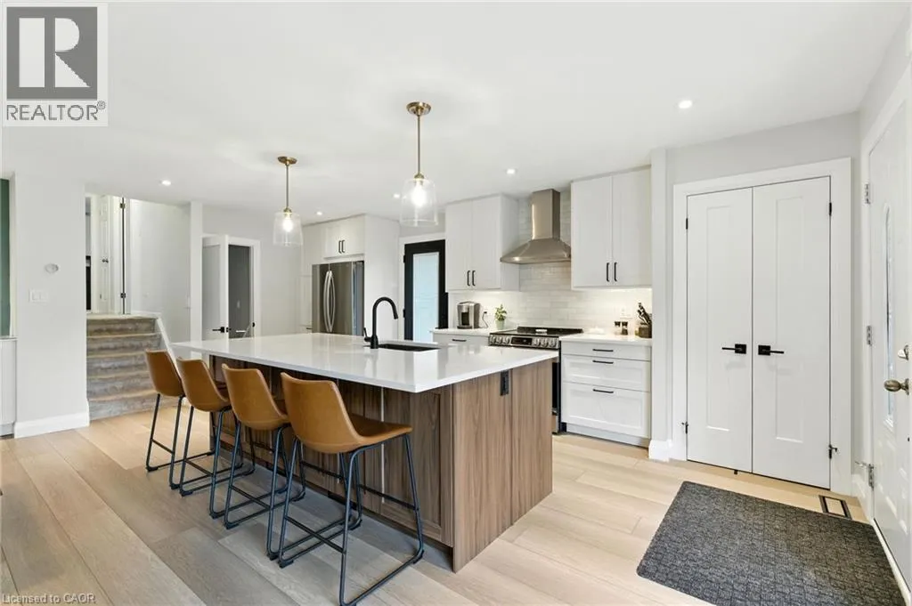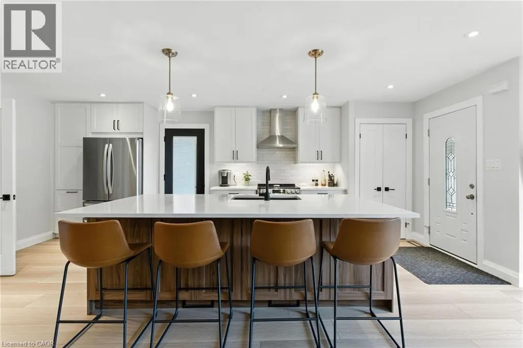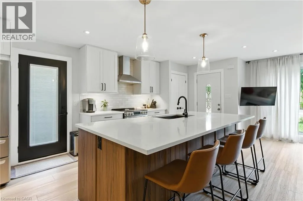 Mohawk Rd. W. to Magnolia Dr. Step Inside 374 Magnolia Dr. Welcome to this stunning 4-level backsplit located on the highly desirable West Mountain in Hamilton! This beautifully upgraded home features a bright, open-concept main floor with gleaming luxury vinyl floors, a spacious living and dining area, and a custom-designed kitchen (2023) perfect for entertaining. Upstairs, you'll find three spacious, carpeted bedrooms and a tastefully updated 4-piecebathroom. The lower level offers even more space with a fourth bedroom, a second stunning bathroom, and a gorgeous rec room highlighted by exposed wood accents and a charming wood-burning fireplace. A walk-up separate entrance leads to the expansive backyard, complete with a large concrete patio and retaining wall (2022) â ideal for outdoor gatherings. The basement level includes a generous storage room and a separate laundry area with plenty of space and potential. This home checks all the boxes â comfort, style, and functionality in a fantastic family-friendly neighborhood. Don't miss your chance to make it yours! (id:27476)