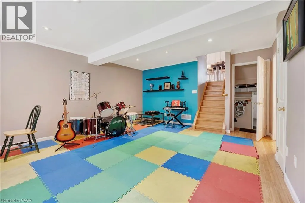 Upper James to Rymal to Marilyn Pride of ownership shines in this beautifully maintained 4-level backsplit, ideally located R near The Linc, schools, shopping, and all major amenities. A private double-wide patterned concrete driveway offers parking for 4 vehicles. Inside, the main level features a bright, open-concept living and dining area with a thoughtfully designed kitchen, ceramic tile flooring, and convenient side-door access. Upstairs, you'll find three generous bedrooms and a 4pc bath. The lower level includes a spacious family room, a bedroom, and a 3pc bath, ideal for guests or multigenerational living. The partially finished basement offers excellent storage or room to expand. Now for the showstopper: the backyard. Staycation-ready and full of charm, this outdoor oasis is fully fenced and surrounded by mature grapevines, berry bushes, and manicured garden beds. Relax to the sounds of a koi pond waterfall, enjoy dinner under the custom pergola, or retreat to the handcrafted workshop currently used as an art studio. Stone walkways, a built-in outdoor BBQ, and bonus side-yard storage complete the package. This is more than a home; it's a lifestyle. A rare find blending peaceful outdoor living with urban convenience. (id:27476)