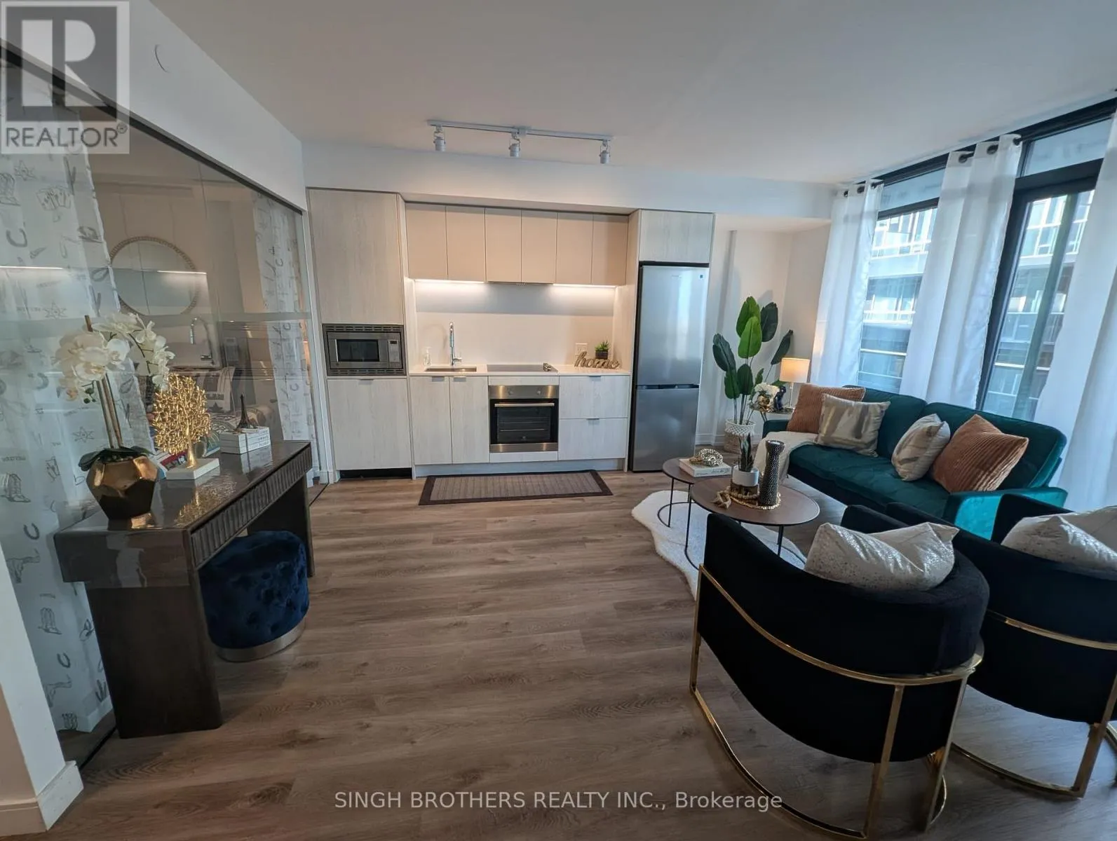 Jarvis St. & King St. **Entertain yourself in style** with two bedrooms and one full bath. Featuring laminate flooring throughout, a contemporary kitchen boasting quartz countertops, and stainless-steel built-in appliances. The living area, bathed in natural light from floor-to-ceiling windows, seamlessly extends to the private terrace. The master bedroom is a serene retreat looking out to the terrace through the large window that invites in abundant natural light. The modern ensuite features custom cabinetry, quartz counters, and a designer vanity. The second bedroom also features a large floor-to-ceiling window. (id:27476)