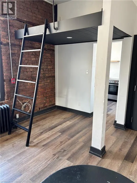 James to West on Bold to North on MacNab Welcome to the Apollo apartments in the sought after Durand neighbourhood. This bachelor apartment is conveniently located within steps of all James south has to offer including the GO station. This layout has private 3 piece washroom, kitchen with stainless steel fridge, stove, dishwasher, plus loft style, double size, bed platform accessed by ladder. This is the perfect solution for students and young professionals embracing a modern, downtown lifestyle. This secure Building is under new management with great friendly, respectful neighbours. Heat and water are included in the rent cost. Coin op laundry is available on site Electricity and internet/cable are the responsibility of the tenant. Rental application, current credit report and score, plus two month's of income verification required. Singlekey welcome. (id:27476)