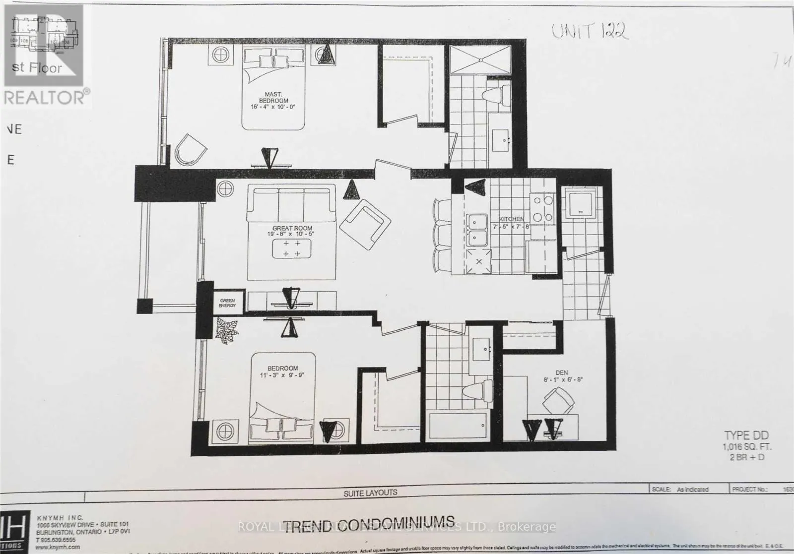 Dundas & Mallard Trail In desirable Waterdown East! This 1016 sqft, 2 beds + den, 2 baths has been tastefully upgraded. Main floor unit offers open concept living with 10 ft ceilings, hard surface flooring throughout, and in-suite laundry. Kitchen has stainless steel appliances, quartz countertops, and a large island. Spacious primary bedroom with floor-to-ceiling windows, 4-piece ensuite, and a walk-in closet. Second bedroom also has floor-to-ceiling windows with a walk-in closet. Enjoy all of the fabulous amenities that this building has to offer, including party rooms, modern fitness facilities, rooftop patios, and bike storage. Property is conveniently located minutes away from Hwy 403 & Hwy 407, Aldershot GO Station, and many other amenities. Two underground parking spots and one locker included. (id:27476)