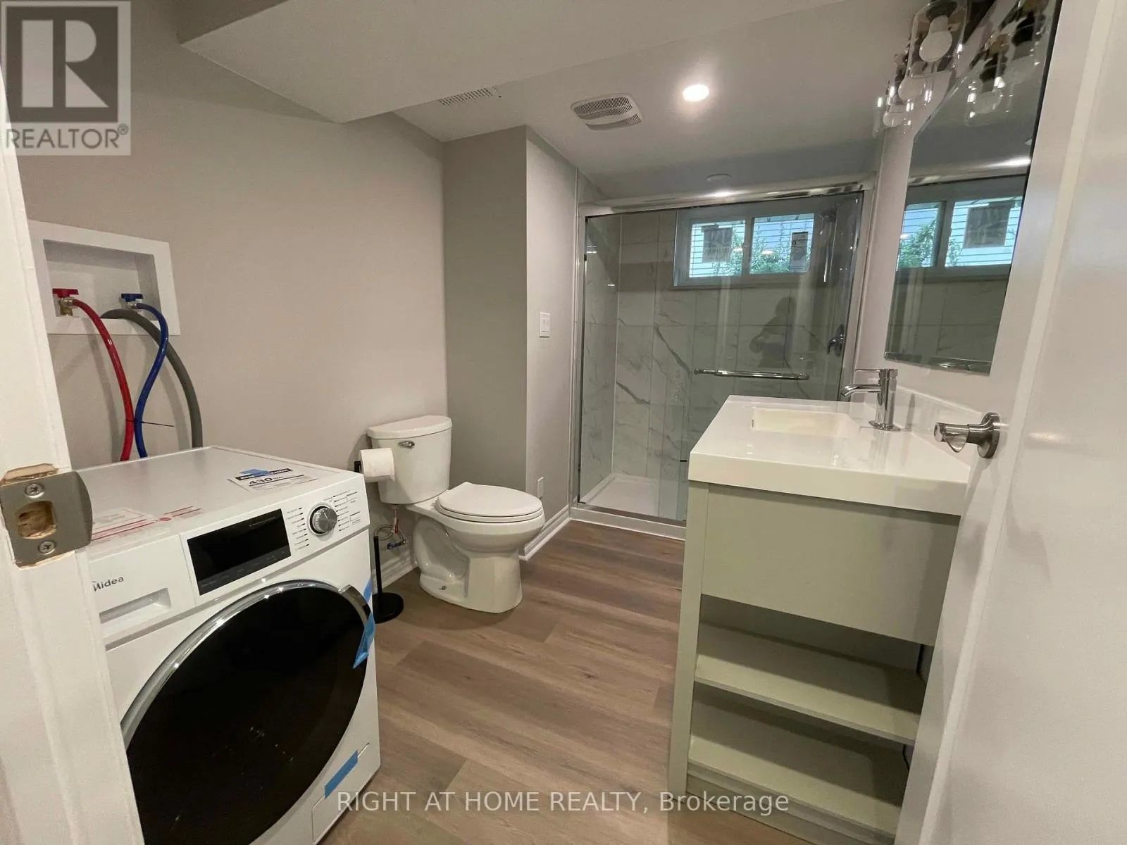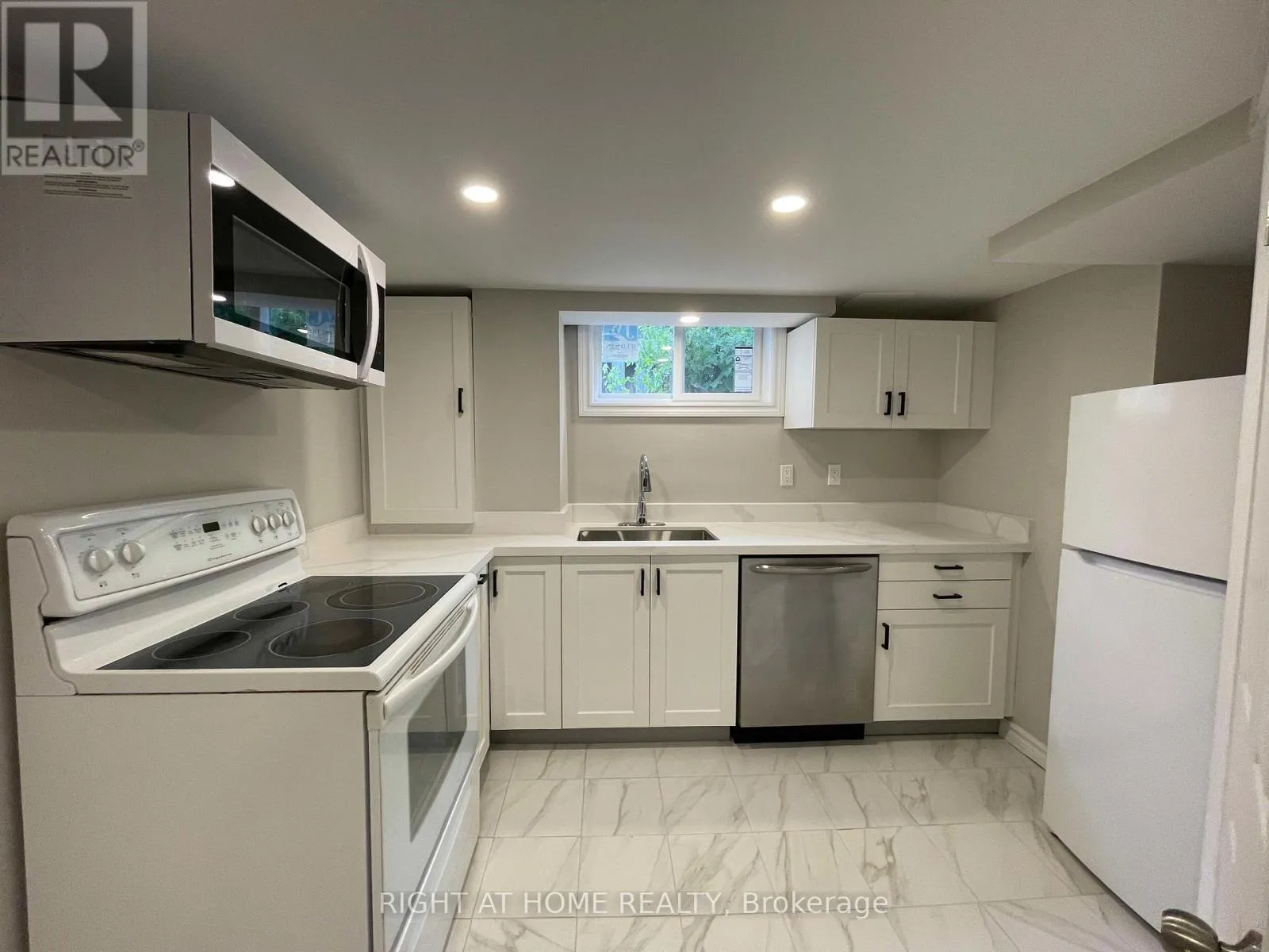 Mohawk Rd E & Regency St Very spacious and bright newly renovated basement apartment featuring 2 bedrooms, 1 bathroom, and a modern kitchen with brand-new cabinets, quartz countertop, dishwasher, microwave. This unit offers 3 brand-new sunshine-side windows, brand-new laundry, private entrance through the garage, and is carpet-free with new vinyl flooring and pot lights throughout. The bathroom has been upgraded with a new glass shower set, base, and plumbing. Comfort is ensured with brand-new central A/C, furnace, and an owned tankless water heater. Tenants pay 40% of water, hydro, gas, and internet. Two parking spots on the left side of the driveway are included. Conveniently located near schools, highways, and all amenities. No backyard access. Ready to move in! (id:27476)