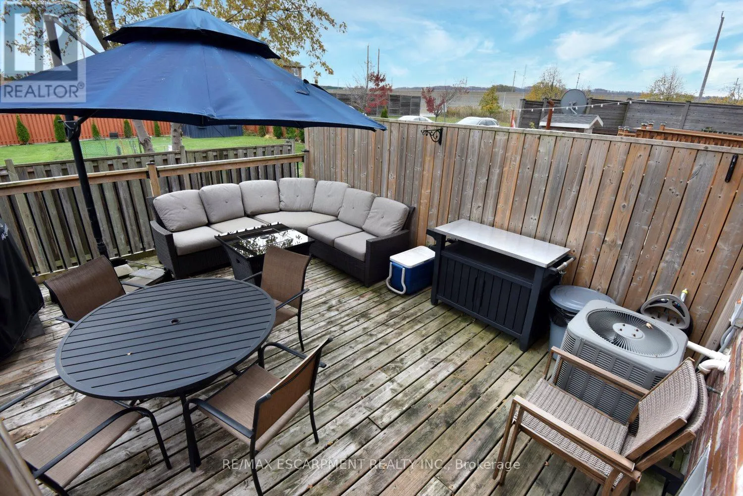 Cross Streets: McNeilly Rd and North Service Rd. ** Directions: MCNEILLY RD TO SEABREEZE CR. This beautiful two-storey townhome is ideally situated just steps from the lake, offering a perfect blend of peaceful, lakeside living and modern convenience. The upper level features 3 spacious bedrooms, including a main bedroom retreat complete with a 4-piece ensuite bathroom. Downstairs, the main level boasts a warm, inviting feel with durable hardwood and ceramic floors throughout, complemented by a kitchen with updated appliances, including a brand-new Fridge from 2024. The fully finished basement adds a home theatre complete with a welcoming recreation room and an HD TV Projector and screen included with the sale, perfect for entertaining. Outside, you can enjoy your private, fully fenced backyard which features a large deck for summer gatherings, BBQ included. For practicality, the home offers a single driveway and a one-car garage with convenient inside entry, and peace of mind is built in with a newer roof, replaced in 2022. Central Vacuum included. Location is key here, with easy highway access, plus you are just moments away from the Costco plaza and a lot of local amenities. Immediate possession available (id:27476)