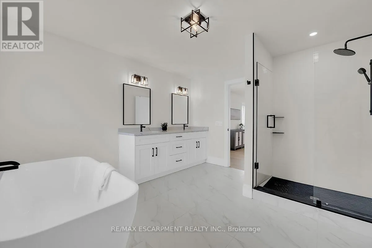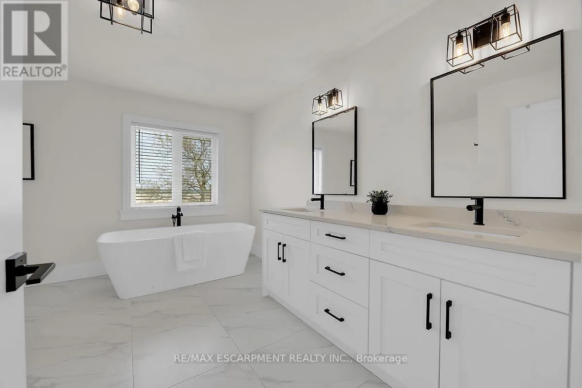 Cross Streets: Hwy 6 and Airport Road. ** Directions: From Hwy 6, East on Airport Road, Property is on left hand side. Luxury custom home built in 2023. Rent to own option available. Escape to the country with the convenience of all amenities just a short drive away! Mins from Hwy 6 & Hwy 403, with quick access to shopping, restaurants and Hamilton Airport. The main floor features an open concept layout with a combination of engineered hardwood &tile floors, and an abundance of natural light. The den is situated at the entry of the home & provides a great work from home space. The kitchen offers quartz counters and backsplash, stainless steel appliances & a large island that is great for entertaining. There is also an upper level family room which is ideal for large and growing families. The stunning primary suite features an enormous walk in closet & lavish ensuite with freestanding soaker tub & separate shower. The upper level hosts 3 additional bedrooms, main 5 piece bath and a convenient laundry room. Enjoy the outdoors on your covered rear porch complete with scenic farm views. (id:27476)