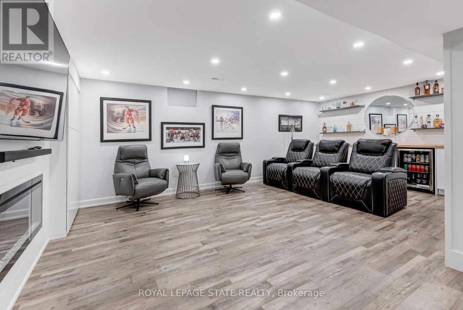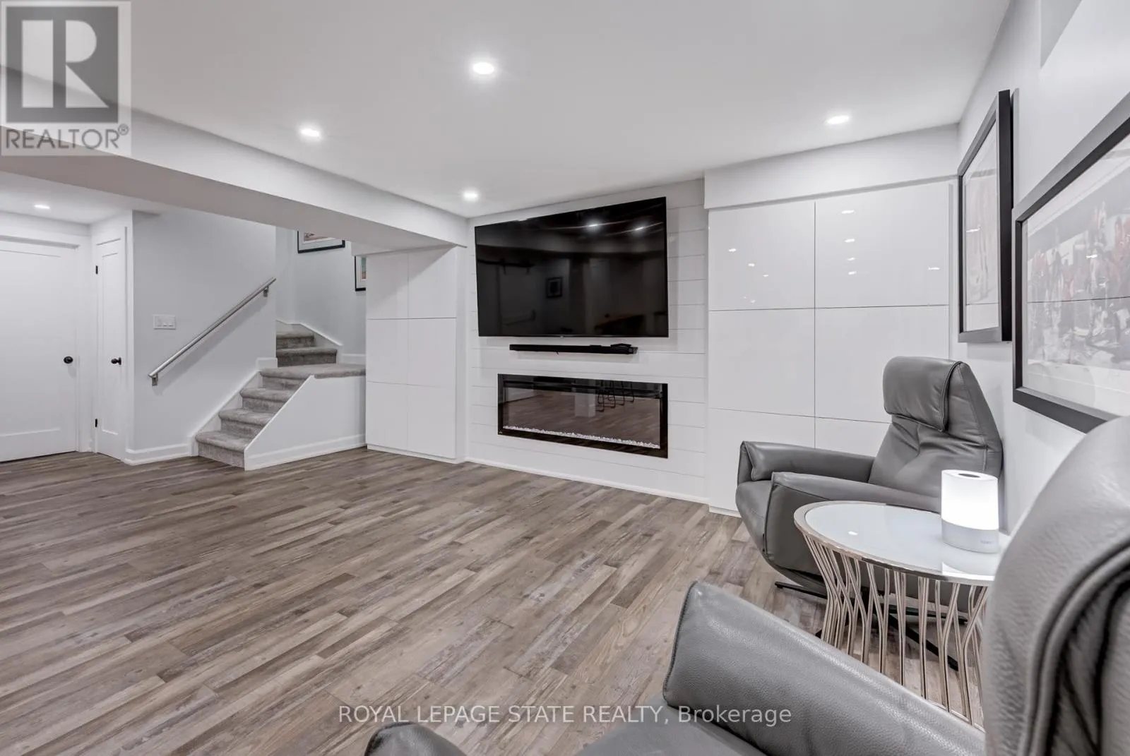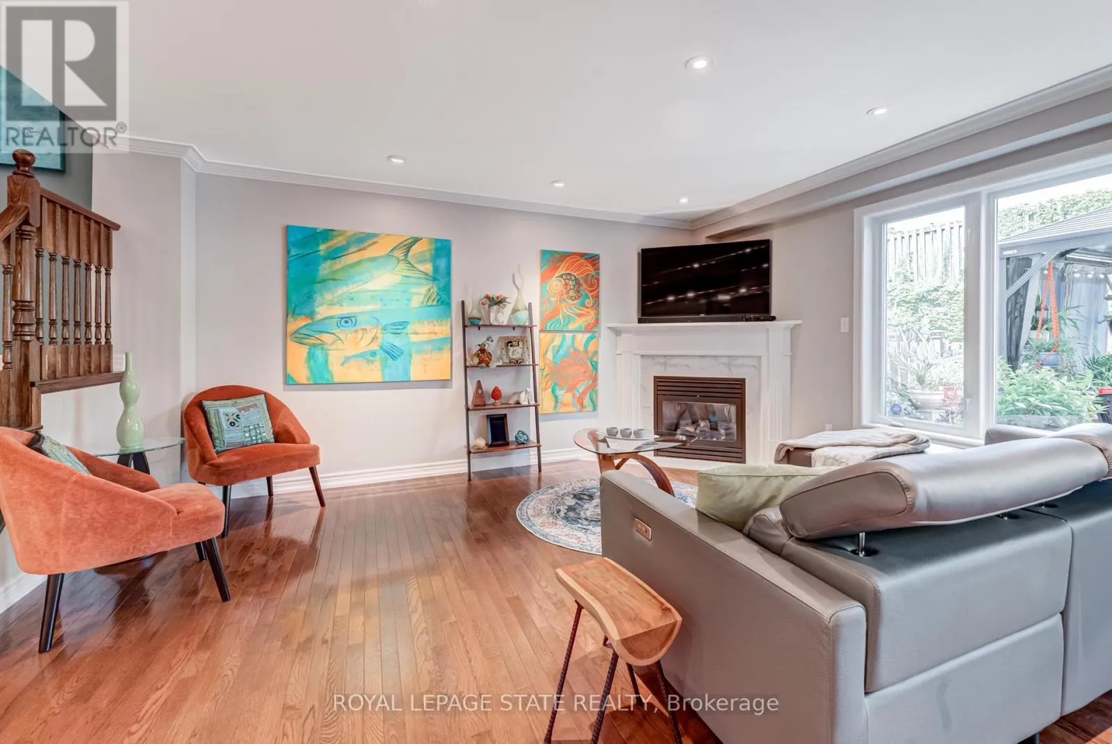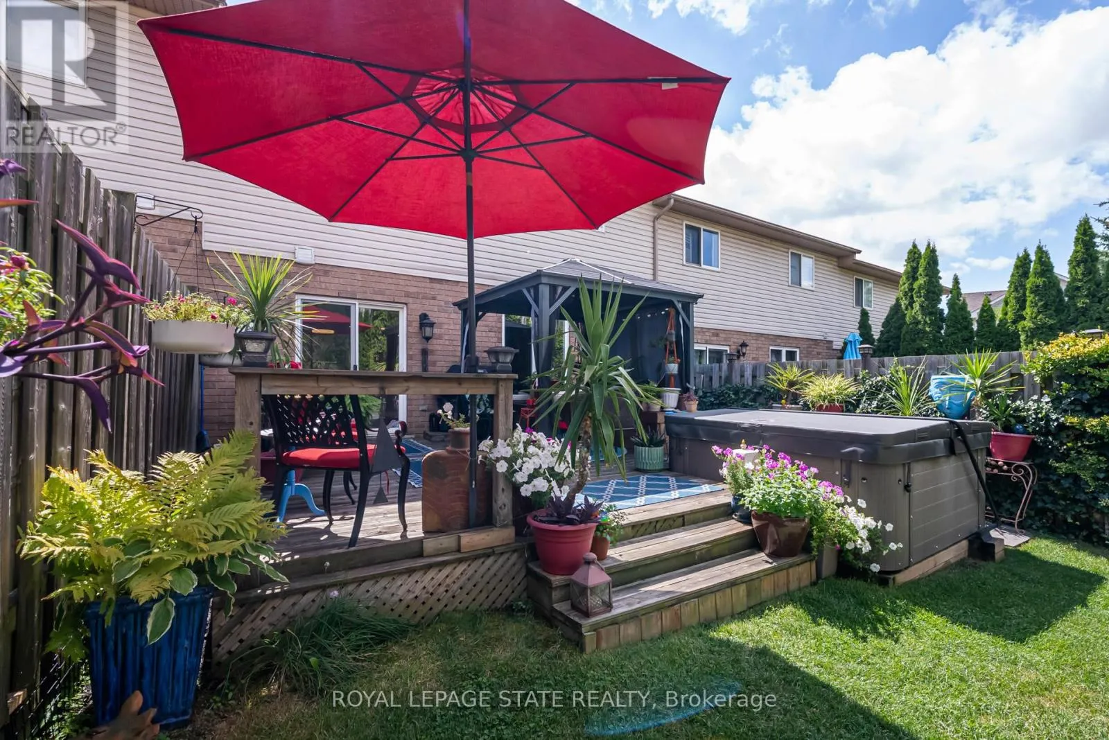 Cross Streets: Stone Church Rd. ** Directions: West on Stone Church Rd. Gorgeous, professionally updated freehold townhome across from a Conservation Area with a number of paths and ponds for the enjoyment of nature lovers and dog enthusiasts. There is 1890 sq ft on the main and second floors, and almost 2700 sq ft of finished living space total. Inviting backyard with a deck, gazebo, 5-person hot tub, and lovely, mature greenery. Open concept main floor features hardwood flooring in the large living room with a gas fireplace, and in the dining room there are sliding doors to a deck. A stunning kitchen includes a gas stove, granite counter tops, a gorgeous tile backsplash and a breakfast/entertainment bar. The finished basement features luxury vinyl flooring, built-in custom wall-to-wall cupboards and drawers with bar fridge and a wet bar/refreshment area. Cabinetry surrounds an area for a wall mounted TV of up to an 85" with electric fireplace below. The second floor includes feature décor walls, a loft area, engineered hardwood throughout, custom blinds and a convenient laundry room. The spacious primary bedroom has a large 4-piece ensuite and walk-in closet. The main bath has a walk-in shower and a modern, free-standing vanity with 2 under mount sinks. The bedroom that is used as an exercise room has a Murphy bed offering a multi-purpose room including a guest room, exercise room or office. The Murphy bed has a storage cabinet and a pull out side table. Insulated garage is ideal for hobbyists in winter. Updates include AC/Furnace/Roof, 2 bathrooms, kitchen, basement, and pot lights throughout 3 levels including bedroom closets. Walk to amenities, shopping and restaurants. Two-minute drive to a large dog park. Close to highway access. This home is turnkey so just move in and enjoy all that this home and area have to offer! (id:27476)