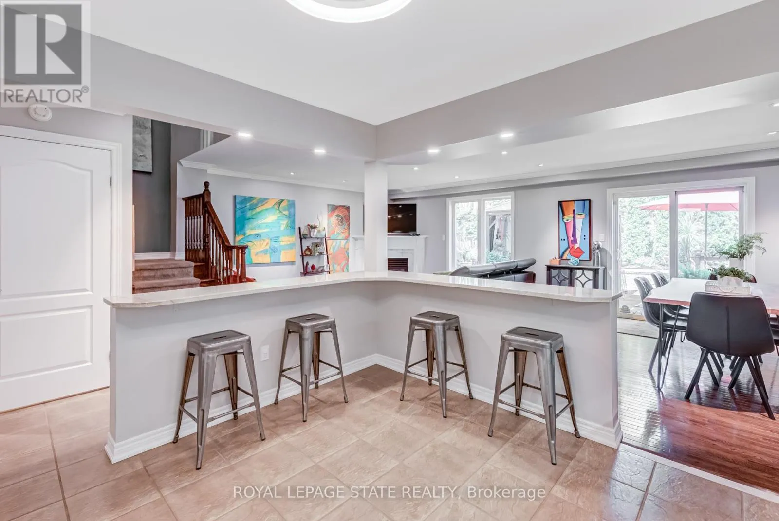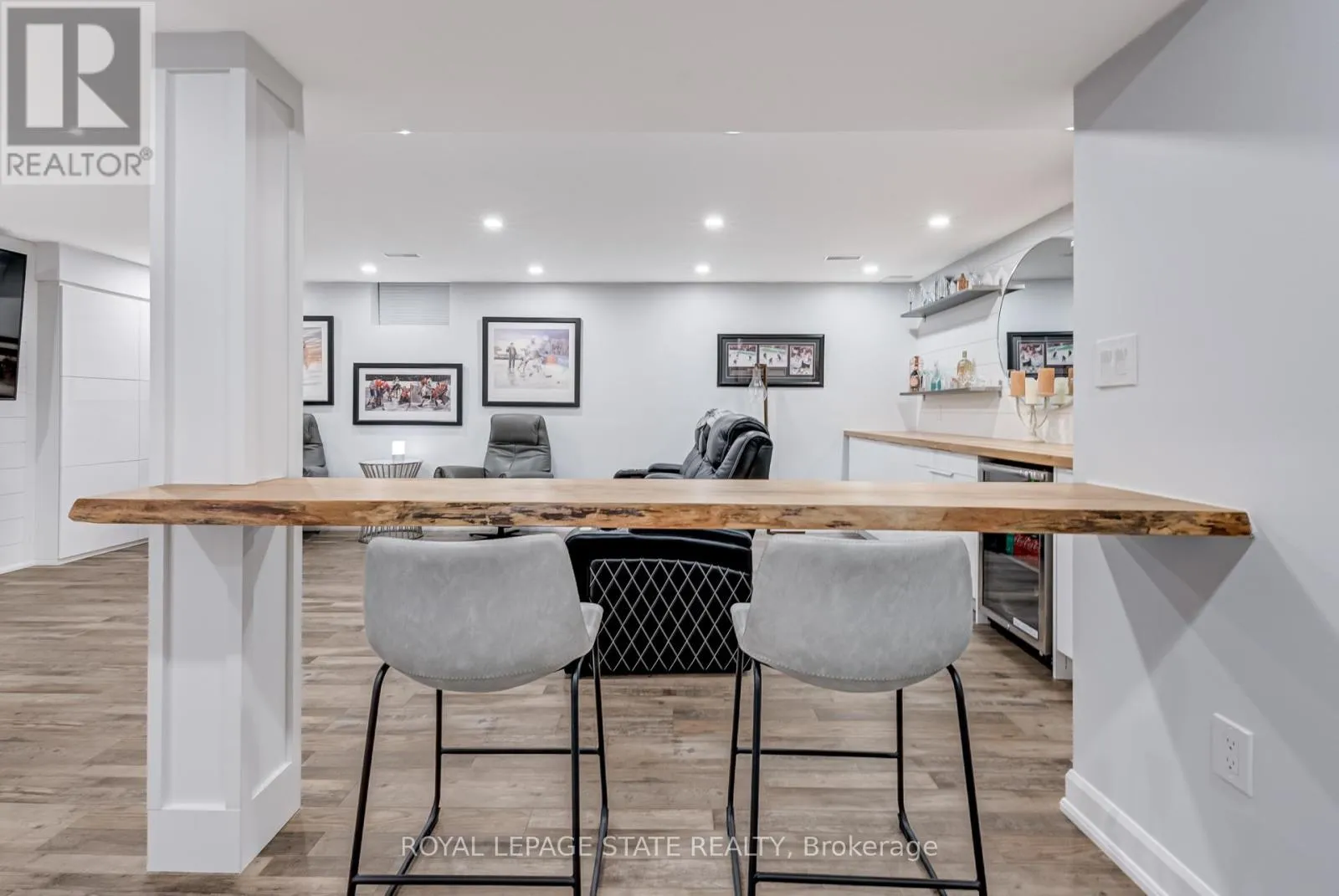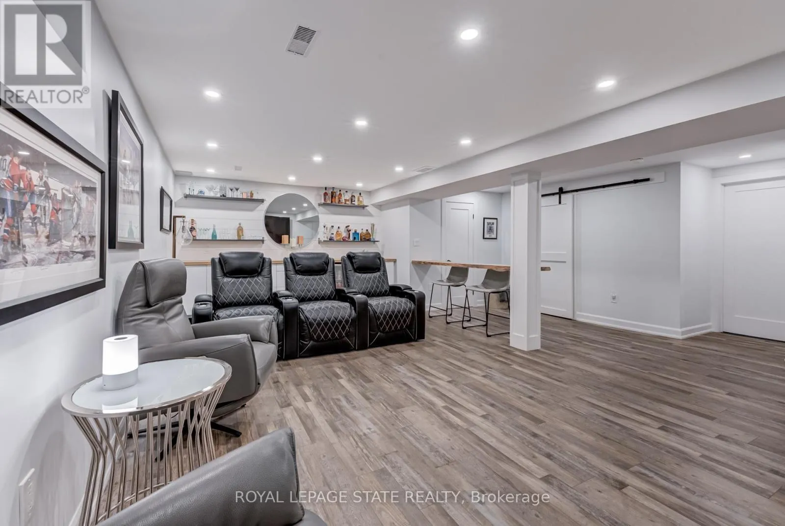 Cross Streets: Stone Church Rd. ** Directions: West on Stone Church Rd. Gorgeous, professionally updated freehold townhome across from a Conservation Area with a number of paths and ponds for the enjoyment of nature lovers and dog enthusiasts. There is 1890 sq ft on the main and second floors, and almost 2700 sq ft of finished living space total. Inviting backyard with a deck, gazebo, 5-person hot tub, and lovely, mature greenery. Open concept main floor features hardwood flooring in the large living room with a gas fireplace, and in the dining room there are sliding doors to a deck. A stunning kitchen includes a gas stove, granite counter tops, a gorgeous tile backsplash and a breakfast/entertainment bar. The finished basement features luxury vinyl flooring, built-in custom wall-to-wall cupboards and drawers with bar fridge and a wet bar/refreshment area. Cabinetry surrounds an area for a wall mounted TV of up to an 85" with electric fireplace below. The second floor includes feature décor walls, a loft area, engineered hardwood throughout, custom blinds and a convenient laundry room. The spacious primary bedroom has a large 4-piece ensuite and walk-in closet. The main bath has a walk-in shower and a modern, free-standing vanity with 2 under mount sinks. The bedroom that is used as an exercise room has a Murphy bed offering a multi-purpose room including a guest room, exercise room or office. The Murphy bed has a storage cabinet and a pull out side table. Insulated garage is ideal for hobbyists in winter. Updates include AC/Furnace/Roof, 2 bathrooms, kitchen, basement, and pot lights throughout 3 levels including bedroom closets. Walk to amenities, shopping and restaurants. Two-minute drive to a large dog park. Close to highway access. This home is turnkey so just move in and enjoy all that this home and area have to offer! (id:27476)