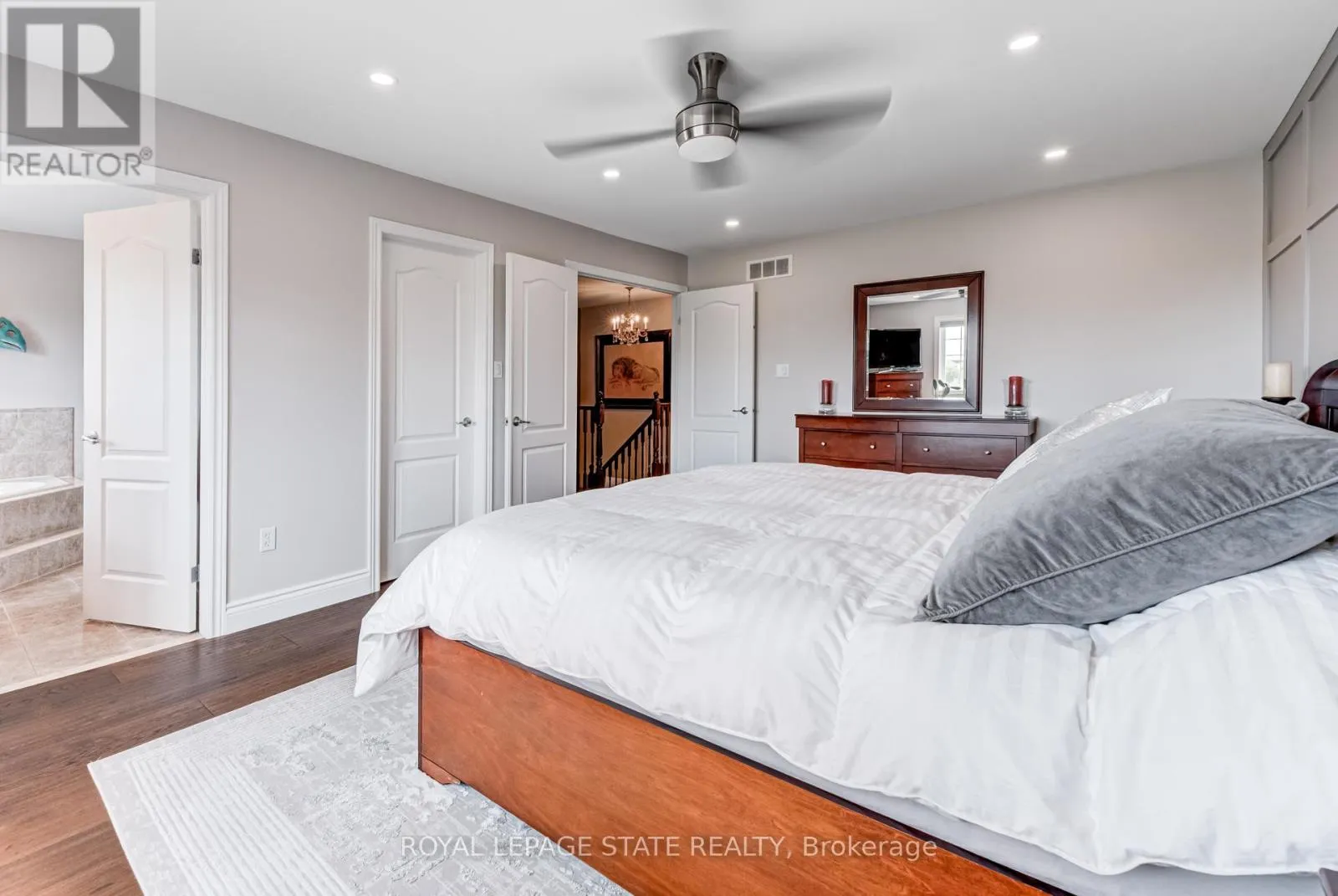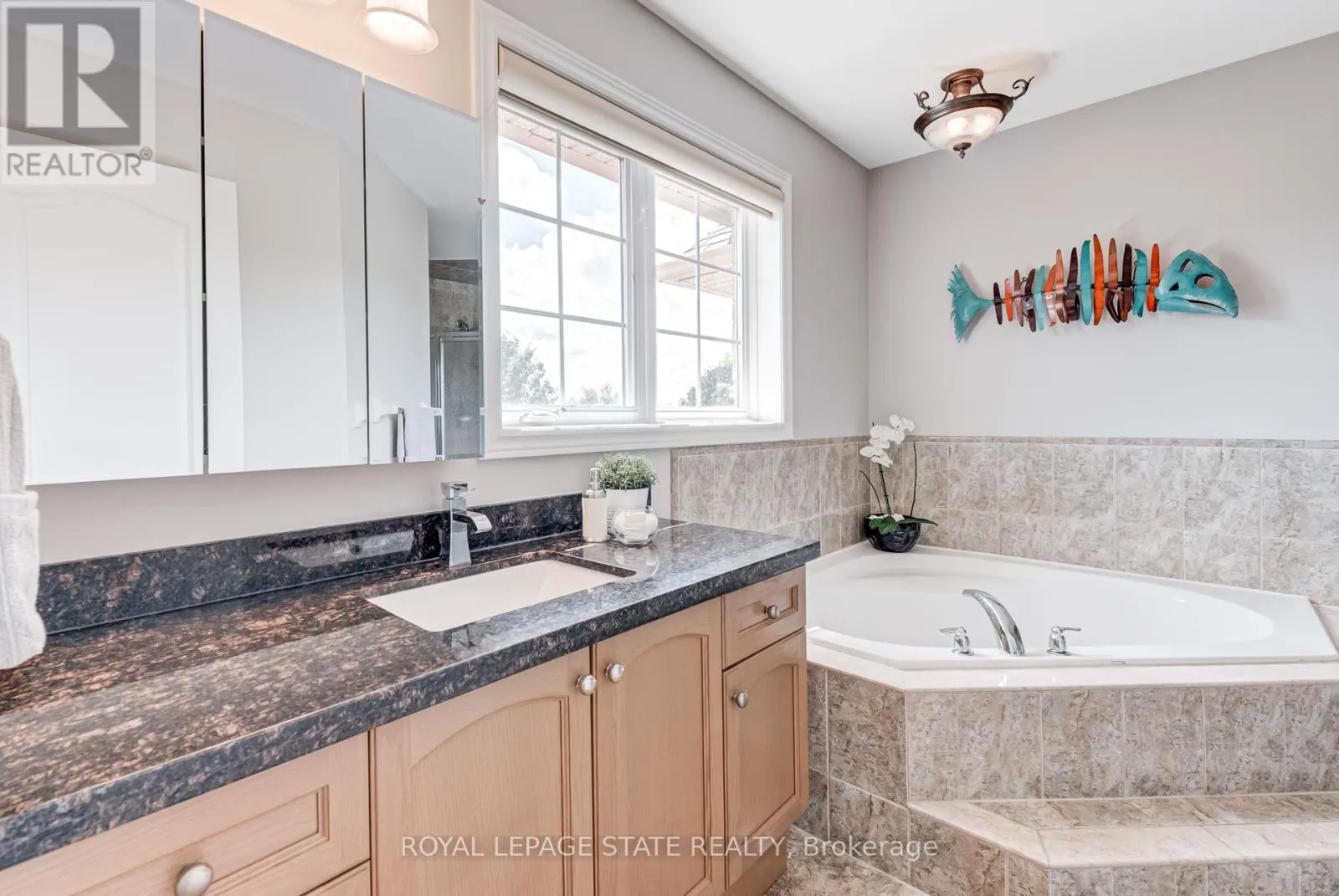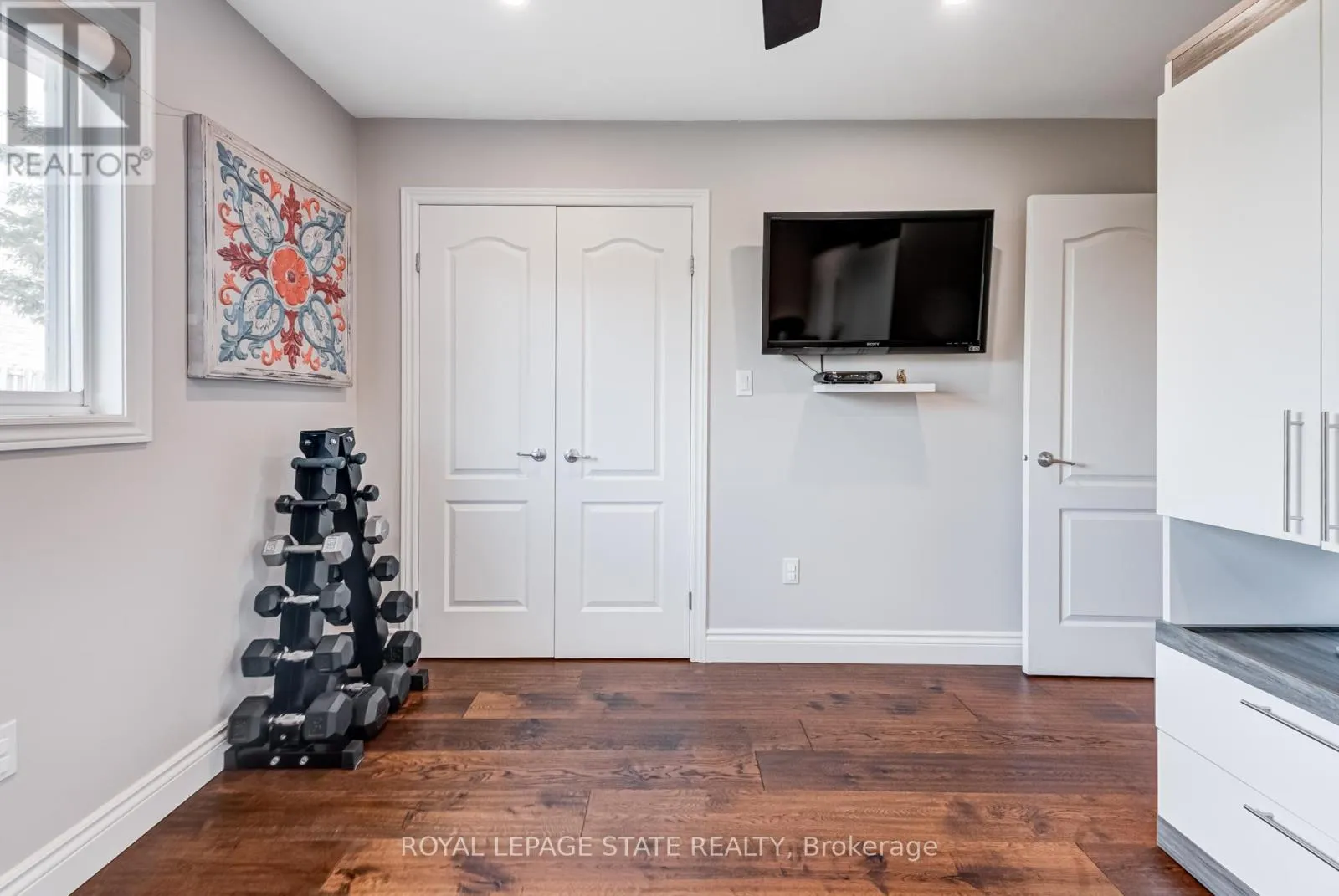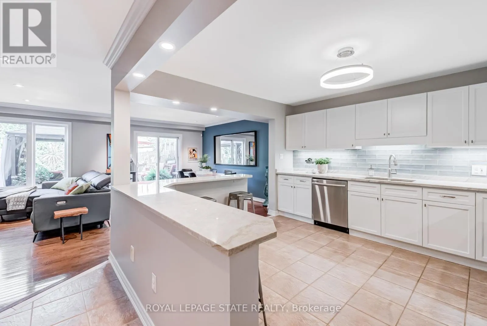 Cross Streets: Stone Church Rd. ** Directions: West on Stone Church Rd. Gorgeous, professionally updated freehold townhome across from a Conservation Area with a number of paths and ponds for the enjoyment of nature lovers and dog enthusiasts. There is 1890 sq ft on the main and second floors, and almost 2700 sq ft of finished living space total. Inviting backyard with a deck, gazebo, 5-person hot tub, and lovely, mature greenery. Open concept main floor features hardwood flooring in the large living room with a gas fireplace, and in the dining room there are sliding doors to a deck. A stunning kitchen includes a gas stove, granite counter tops, a gorgeous tile backsplash and a breakfast/entertainment bar. The finished basement features luxury vinyl flooring, built-in custom wall-to-wall cupboards and drawers with bar fridge and a wet bar/refreshment area. Cabinetry surrounds an area for a wall mounted TV of up to an 85" with electric fireplace below. The second floor includes feature décor walls, a loft area, engineered hardwood throughout, custom blinds and a convenient laundry room. The spacious primary bedroom has a large 4-piece ensuite and walk-in closet. The main bath has a walk-in shower and a modern, free-standing vanity with 2 under mount sinks. The bedroom that is used as an exercise room has a Murphy bed offering a multi-purpose room including a guest room, exercise room or office. The Murphy bed has a storage cabinet and a pull out side table. Insulated garage is ideal for hobbyists in winter. Updates include AC/Furnace/Roof, 2 bathrooms, kitchen, basement, and pot lights throughout 3 levels including bedroom closets. Walk to amenities, shopping and restaurants. Two-minute drive to a large dog park. Close to highway access. This home is turnkey so just move in and enjoy all that this home and area have to offer! (id:27476)