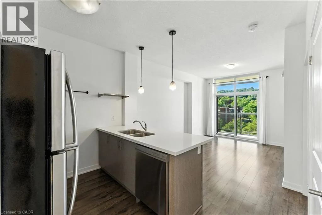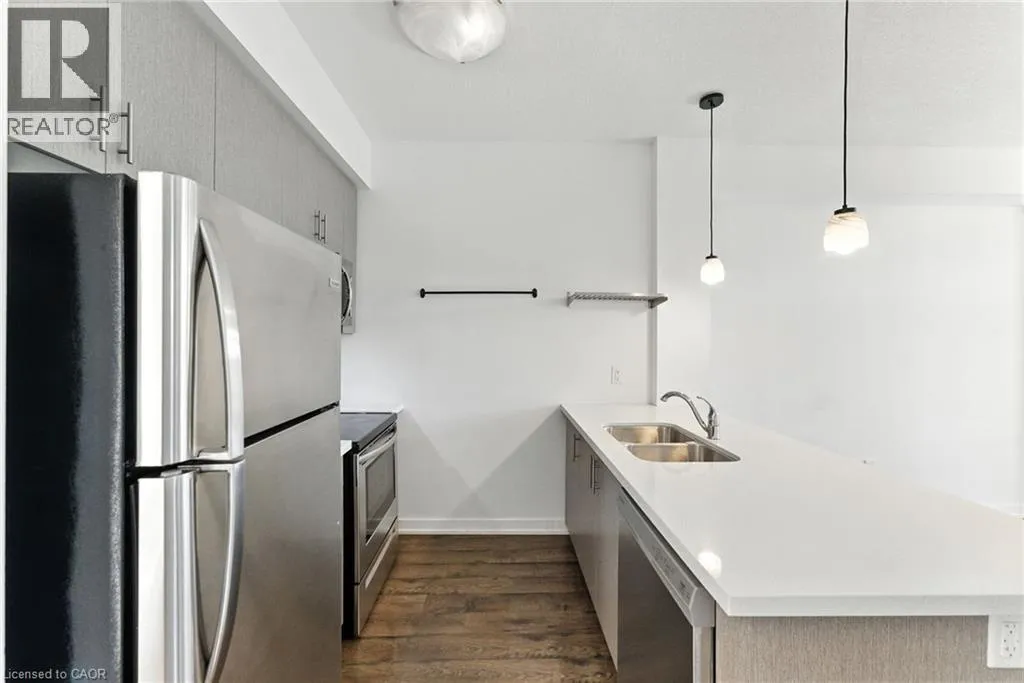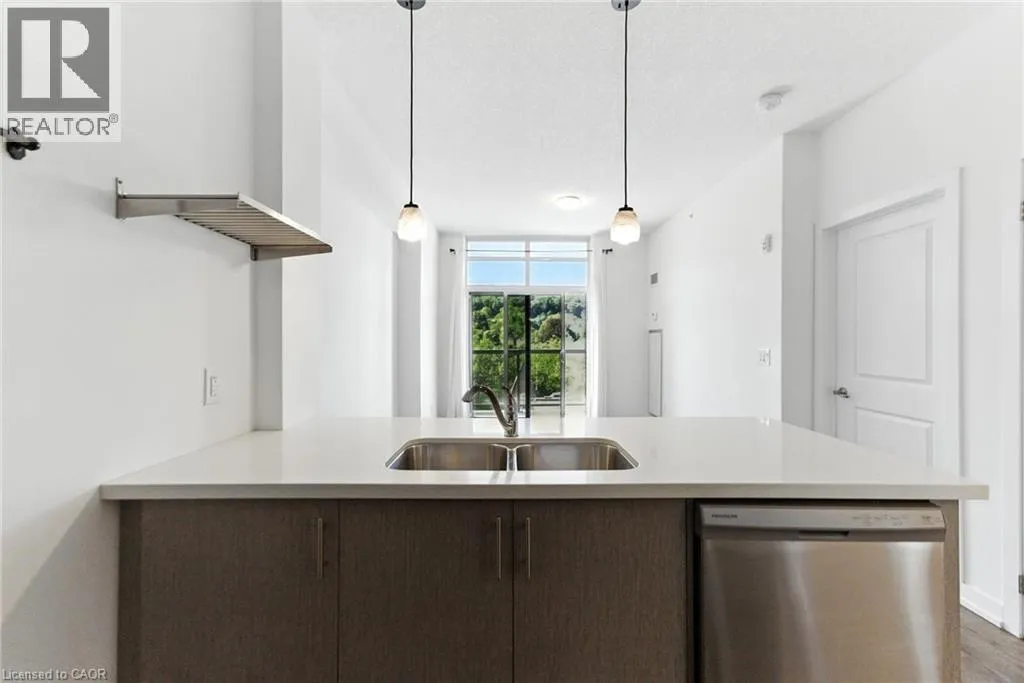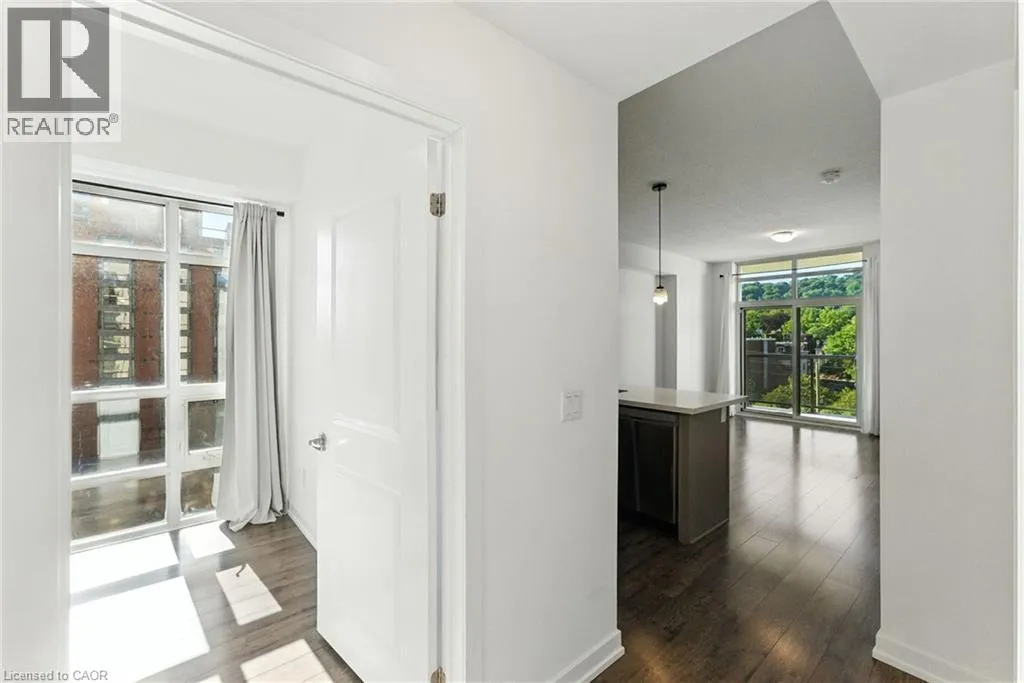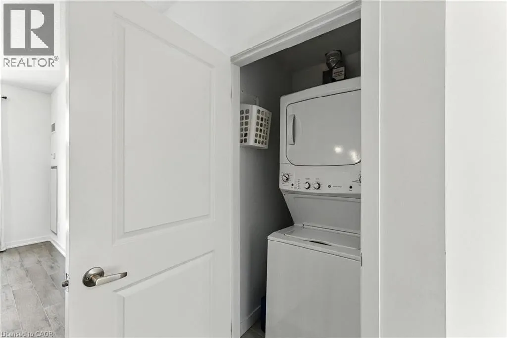 Bay St. S. to Robinson. Step into stylish city living with this 2-bed, 1-bath condo at City Square, right in Hamiltonâs vibrant Durand neighbourhood. With cafés, cool boutiques, and foodie spots on James South and Locke Street just a short walk away, youâll have the best of the city at your doorstep. Inside, 9-ft ceilings and floor-to-ceiling windows flood the space with light. The open-concept layout is perfect for hosting friends or cozy nights in, and the sleek kitchen complete with stainless steel appliances and quartz counters delivers serious wow factor. In-suite laundry? Yep. Private balcony with peaceful Escarpment views? Also, yes. The building has all the extras you want: a gym, party room, media room, and even an outdoor terrace to hang out with friends. Plus, your own underground parking spot makes life easy. This condo delivers the perfect mix of modern living and urban convenience. Quick access to GO Transit, city buses, and the 403 keeps your commute simple. Note: some photos are virtually staged. (id:27476)