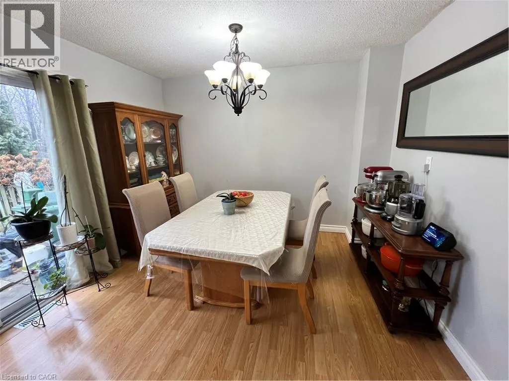 Upper Ottawa North of StoneChurch Rd E Welcome to this inviting 2-storey townhouse, perfectly located in a friendly, family-oriented neighbourhood within a quiet and well-managed complex. With its attractive brick front & welcoming curb appeal, this home offers a comfortable & functional layout ideal for everyday living. Step inside to a spacious main floor designed with both style & practicality in mind. The sun-filled living room provides a bright & relaxing space to unwind & features steps leading to a private balcony, perfect for enjoying your morning coffee or a breath of fresh air. The brightly lit dining area flows seamlessly from the living space, creating a welcoming setting for family meals or entertaining guests. The large kitchen offers plenty of room to cook & gather, complete with ample overhead cabinets & drawers to keep everything organized. The main floor also includes in-suite laundry, a convenient half washroom, & multiple closets for storage, making daily routines easy & efficient. Carpet-free flooring throughout adds a clean, modern feel & makes maintenance a breeze. Upstairs, youâll find three generously sized bedrooms, each offering comfortable space & flexibility for family members, guests, or a home office. A full bathroom completes the upper level, providing convenience for everyone. The partially finished basement offers bonus space that can be used as a recreation room, home gym, office, or additional storage. Outside, enjoy a fully fenced, large backyard, ideal for outdoor entertaining, gardening, or simply relaxing in a private setting. Conveniently located close to Shopping Mall & grocery stores, with quick highway access, this home makes commuting and errands simple. Youâll also appreciate the walkable access to schools, parks, shopping, restaurants, transit, & medical facilities. Comfortable, well-located, & move-in ready, this lovely townhouse offers a wonderful opportunity to enjoy space, convenience, & community all in one place. Sqft & room sizes are approximate. (id:27476)