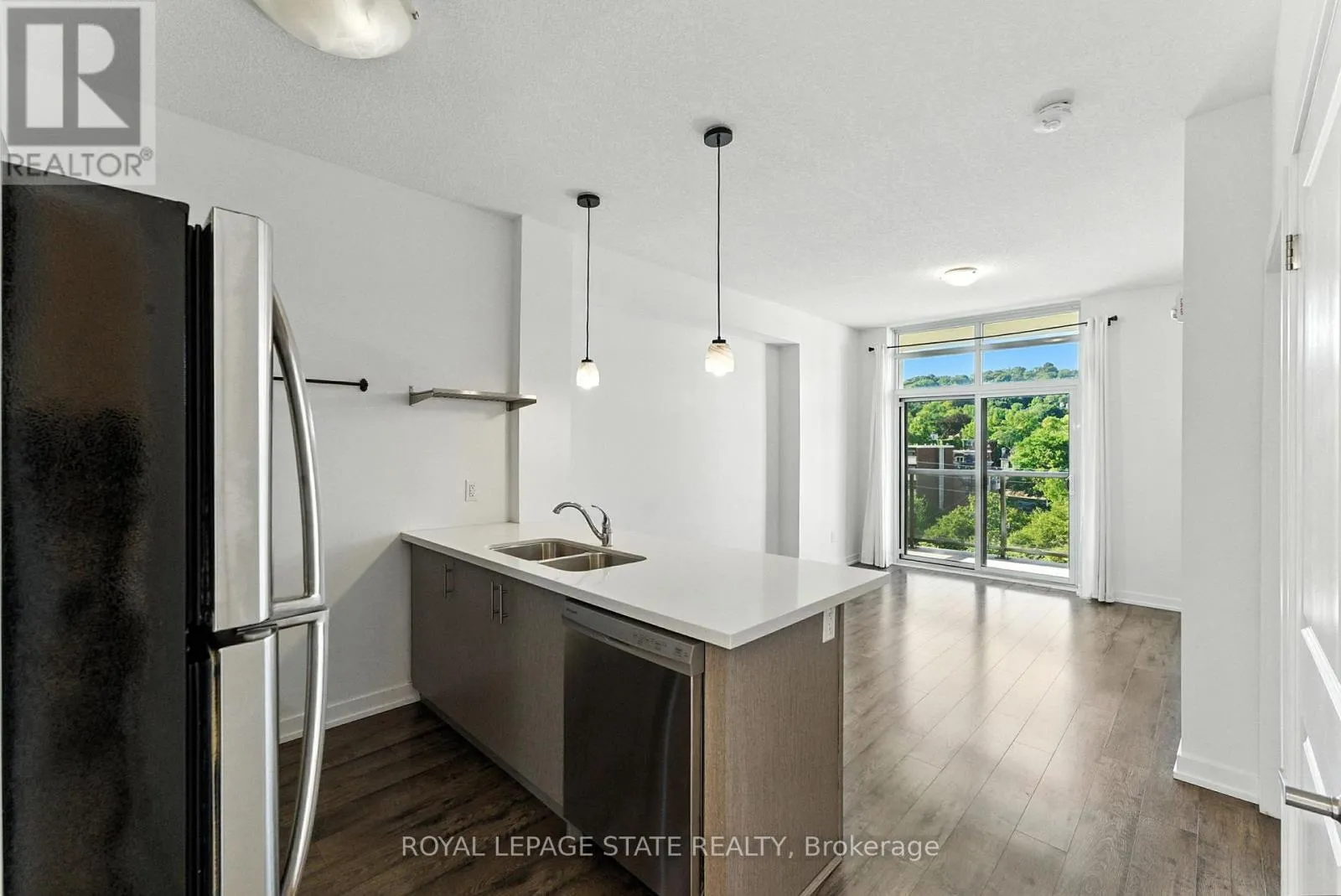 Cross Streets: Caroline St. S. ** Directions: Bay St. S. to Robinson. Step into stylish city living with this 2-bed, 1-bath condo at City Square, right in Hamilton's vibrant Durand neighbourhood. With cafés, cool boutiques, and foodie spots on James South and Locke Street just a short walk away, you'll have the best of the city at your doorstep. Inside, 9-ft ceilings and floor-to-ceiling windows flood the space with light. The open-concept layout is perfect for hosting friends or cozy nights in, and the sleek kitchen complete with stainless steel appliances and quartz counters delivers serious wow factor. In-suite laundry? Yep. Private balcony with peaceful Escarpment views? Also, yes. The building has all the extras you want: a gym, party room, media room, and even an outdoor terrace to hang out with friends. Plus, your own underground parking spot makes life easy. This condo delivers the perfect mix of modern living and urban convenience. Quick access to GO Transit, city buses, and the 403 keeps your commute simple. Note: some photos are virtually staged. (id:27476)