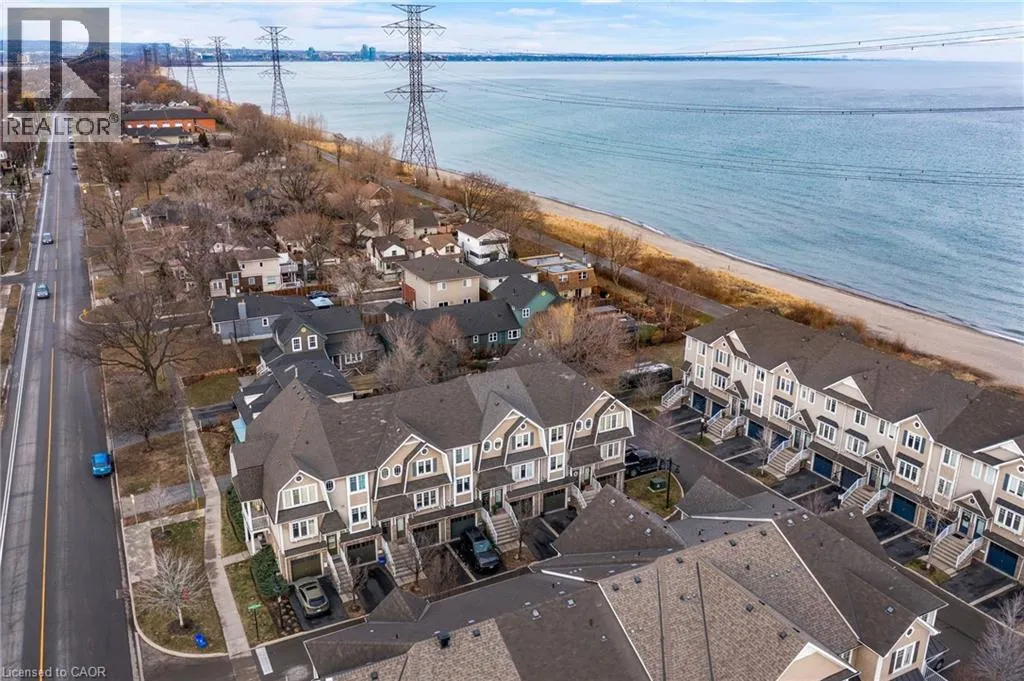 FROM QEW, TAKE EXIT 90 WOODWARD AVE TO BEACH BOULEVARD. LOCATED BETWEEN DYNES PARK AND FITCH AVE, ACROSS FROM HAMILTON BEACH RESCUE Live by the lake without sacrificing style or convenience. This modern 3-bedroom, 2-bath townhouse offers 1400 sq. ft. of flexible living space across three levelsâperfect for working from home, entertaining, or simply spreading out. The bright eat-in kitchen features stainless steel appliances, granite countertops and ample pantry for storage. The kitchen flows seamlessly into the open-concept living and dining area with crown moulding and walk-out balcony to partial lake viewsâideal for hosting friends or unwinding after work. Upstairs, newer carpeted stairs lead to a spacious primary bedroom with large windows, crown moulding and tray ceiling; generous second bedroom and full 4-piece bath with updated quartz counters. The lower level adds even more versatility with a third bedroom, walk-out to covered patio, 3-piece bathroom and inside access from the garage â great for guests, home office, or gym setup. Home provides generous storage throughout. Enjoy parking for two cars and a low condo fee that covers snow removal, landscaping, and irrigation. Spend your downtime paddle boarding or kayaking just steps from home, then fall asleep to the sound of the waves. Minutes to restaurants, shops, Confederation GO, and downtown Burlingtonâthis is low-maintenance lakeside living that fits a modern lifestyle. (id:27476)
