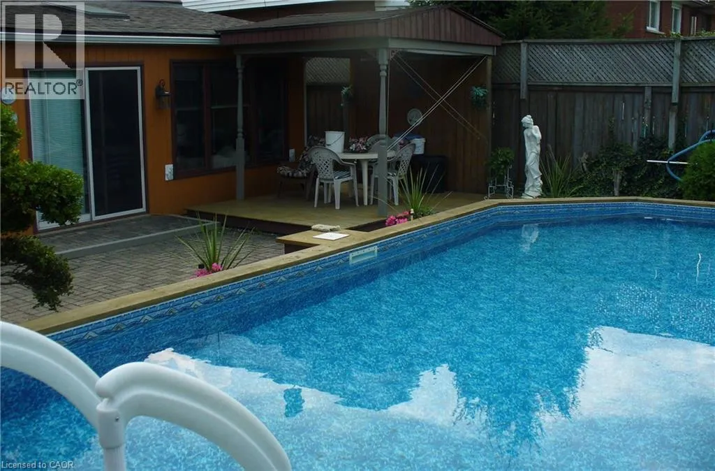 Woodward Ave to Glow Left on Dunn Ave Wow!! Welcome to this stunning 3-bedroom home, 2-bathroom, over 1660 sq ft of finished living space - this home located in the desirable friendly family East Hamilton area. This lovely, well cared for and spotless 1.5 storey home features spacious updated eat-in kitchen with plenty of cupboard space, large main floor living with hardwood floors, with large windows creating ample lighting throughout, and the main floor bedroom currently being used as dining area. Step upstairs - charming staircase leading to 2 bedrooms and a 4-piece bath. Step down to your large recreation room/sunroom - with large windows, fabulous entertaining area. Step outdoors, relax and enjoy the privacy of your own pool, patio stones, gazebo, decks, overlooking flower gardens and trees, large, fenced yard, 3 sheds, cement driveway, gated front fence, front yard well landscaped with mature trees. All newer windows were replaced within the last five years, full finished basement, bath, rec room, laundry room and utility room. Furnace replaced 2023. This home is conveniently located just minutes to all amenities, a short walk to parks and public transit, 15 min walk to the beach and confederation park, trails, short distance to grocery and retail stores, and schools. Easy access to major highways. Donât miss your chance to own this charming and conveniently located home! An absolute must-see!! The home is being sold 'as is' along with the pool is being sold 'as is'. (id:27476)