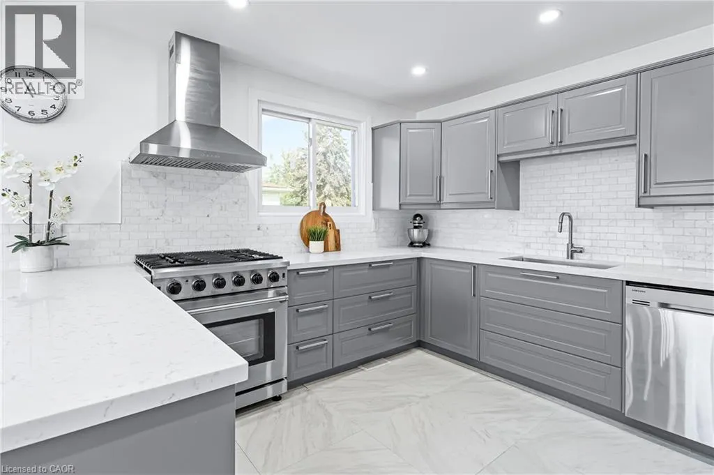 South on Upper Sherman from Mohawk, left on Berko, right on Bellingham Welcome to 173 Bellingham Drive, ideally located with easy access to a range of amenities. This tastefully updated bungalow is perfect for families and downsizers. The main floor offers a spacious living room, dining area, and a modern kitchen with quartz countertops and stainless-steel appliances. Two bedrooms and a well-appointed bathroom complete this level. The basement includes a large family room, two additional bedrooms, a laundry room, and a spacious bathroom. With nearby schools, parks, Lime Ridge Mall, public transportation, and major commuter routes, this residence seamlessly blends convenience with a desirable lifestyle. Don't miss your chance to make 173 Bellingham Drive your new home! (id:27476)