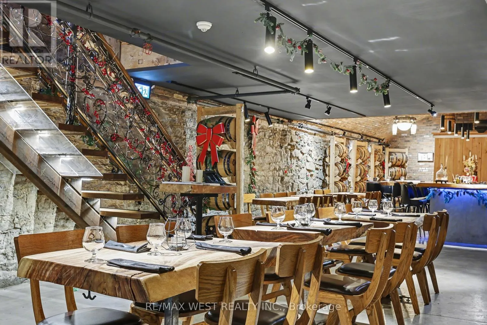 Cross Streets: King Street E & Walnut Street. ** Directions: King Street East & Walnut Street. An excellent opportunity to acquire Brothers Grimm Bistro, a well-known restaurant in the heart of Hamilton. This established business offers a recognizable name, existing customer base, and a fully equipped commercial kitchen with all chattels and fixtures included, allowing a new owner to step in with minimal setup. The space is well laid out for efficient service and dining, with a welcoming atmosphere suited for casual dining, date nights, or group gatherings. With strong local exposure in a vibrant, high-traffic area surrounded by residential and commercial density, there is clear upside potential through expanded hours, menu refinement, catering, delivery, or enhanced marketing. Whether continuing the current concept or introducing a new vision, this is a solid opportunity to acquire an operating restaurant with immediate usability and long-term growth potential. (id:27476)
