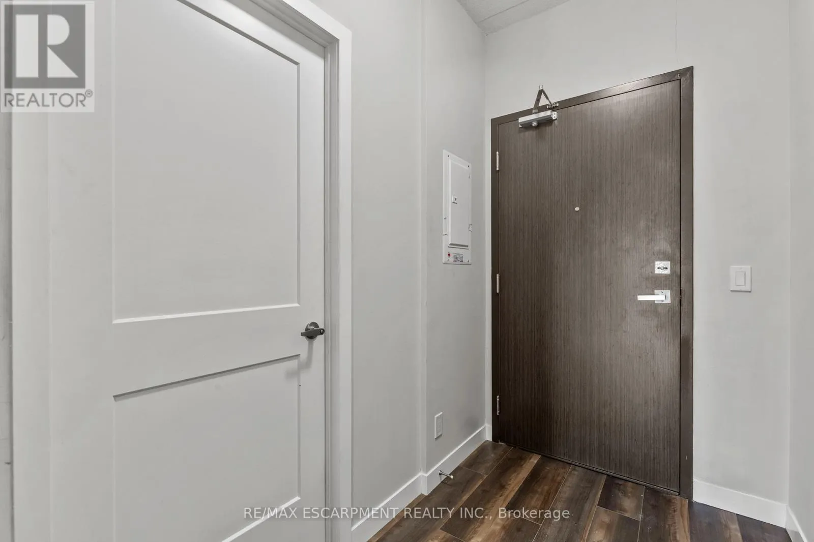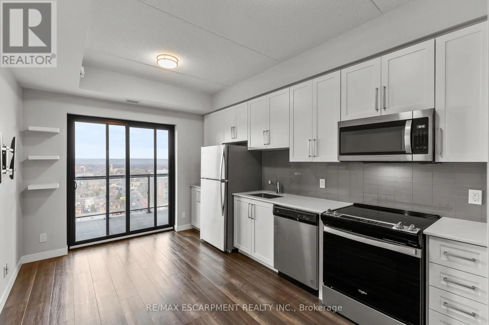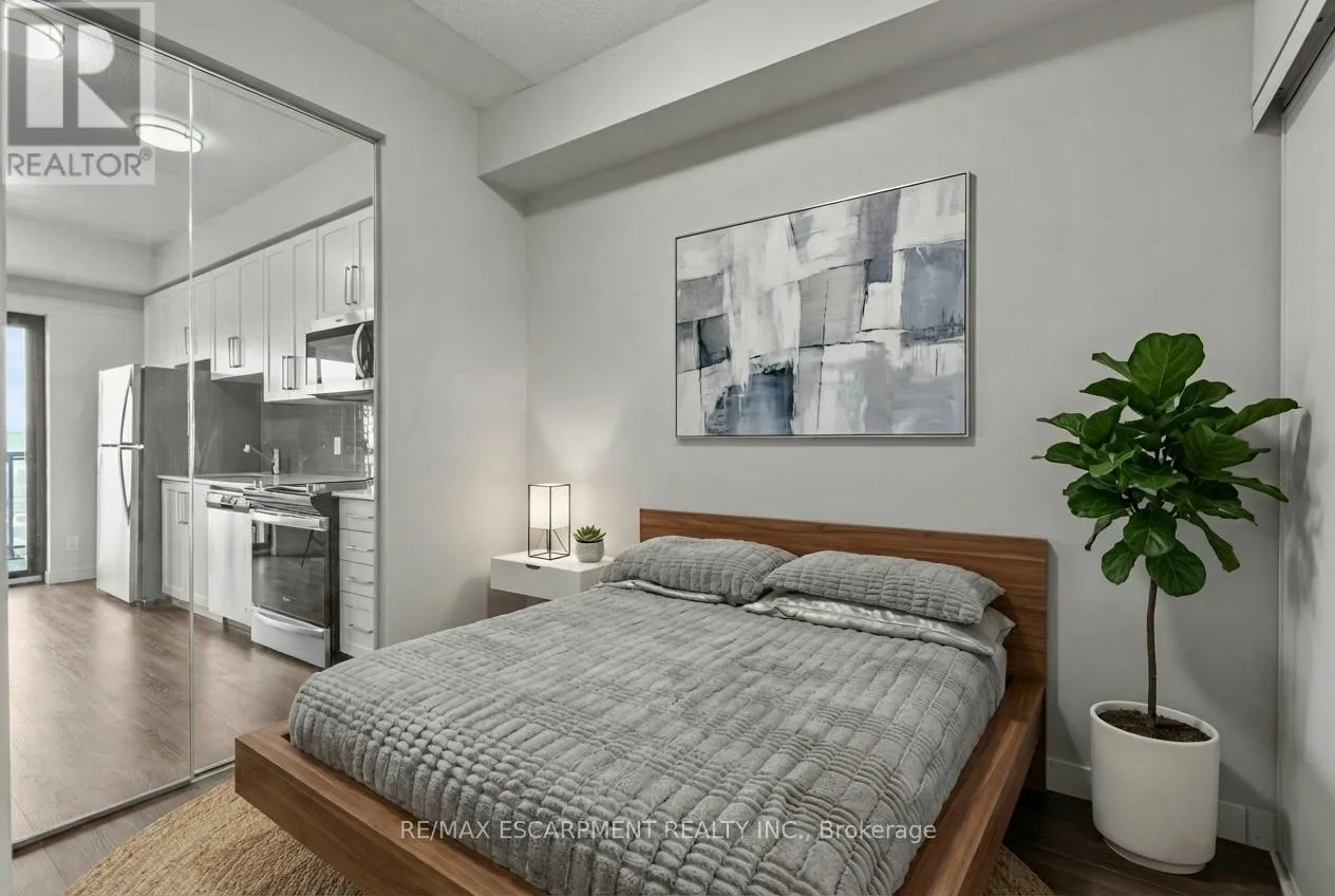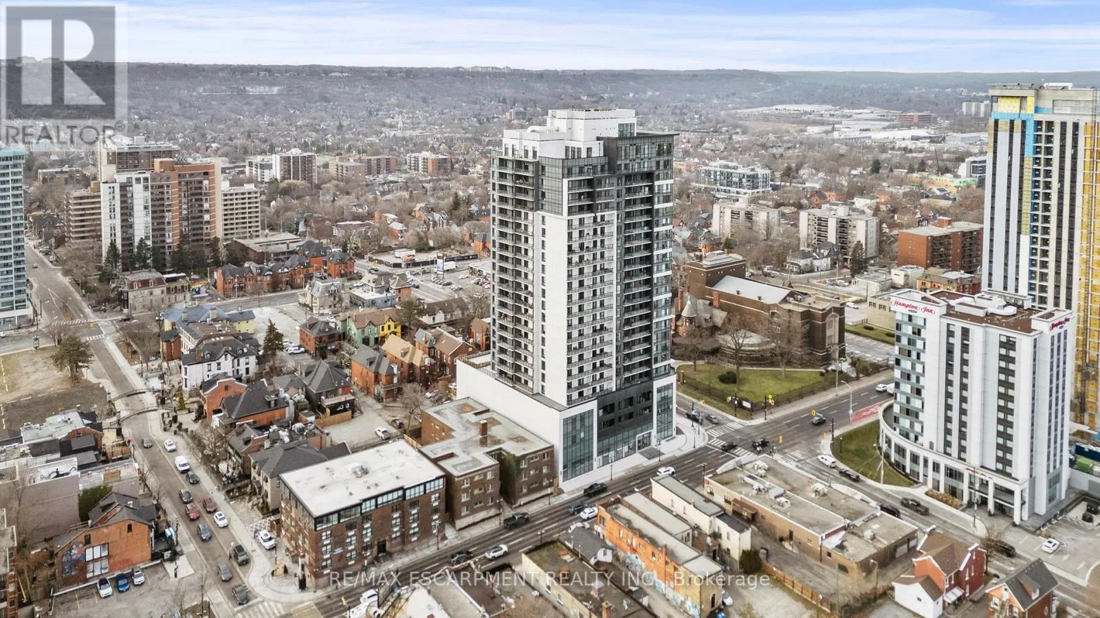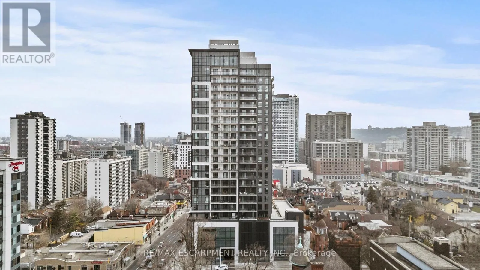 Cross Streets: Queen/King St. ** Directions: South of King on Queen. Experience chic, contemporary living at 15 Queen St S. This stunning and sun-filled 1-bedroom, 1-bath suite offers unobstructed west-facing views and soaring 9-ft ceilings. Thoughtfully designed with modern finishes throughout, the kitchen features beautiful cabinetry and stone countertops, complemented by laminate flooring across the unit. Step outside to enjoy the vibrant energy of Hess Village-restaurants, nightlife, and entertainment right at your doorstep. Residents enjoy resort-style amenities including a beautifully landscaped rooftop terrace, state-of-the-art fitness studio, tranquil yoga deck, stylish party room, and advanced digital security with parcel lockers. Conveniently located just minutes to McMaster University, hospitals, and Highway 403, with public transit at your door and a perfect Walk Score of 10. An exceptional opportunity for investors or first-time buyers seeking an upscale urban lifestyle. Some photos virtually staged. (id:27476)