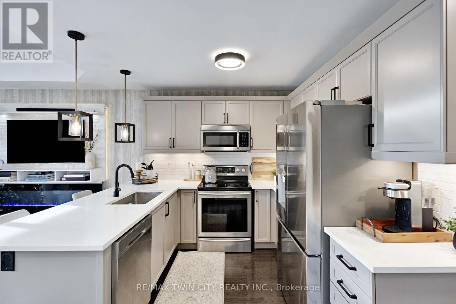 Cross Streets: Rymal E. ** Directions: Rymal E to Atessa Drive. Welcome to this beautifully maintained townhouse nestled in the highly desirable Hamilton Mountain neighbourhood. Offering the perfect blend of comfort, style, and functionality, this home is ideal for families, professionals, or anyone seeking low-maintenance living without compromise. The main living area has been thoughtfully designed to give you the best entertaining space for your friends and family. The heart of the home has been elevated with a recently stunning kitchen (2023), showcasing modern finishes, new appliances, quartz countertops and ample storage. Retreat to the serene primary bedroom, complete with a newly updated primary bathroom (2023) that adds a touch of luxury to your routine. Enjoy a movie or a good book beside the fireplace! Two other bedrooms and another full bathroom finish off the second level with tons of natural light beaming into all bedrooms. The finished basement provides valuable additional living space, ideal for a family room, home office, or guest area. Lovingly cared for by its owners, this home reflects pride of ownership throughout, with updates that enhance both style and peace of mind. This home has been taken from typical builder grade to a family home that is move in ready just for you! Located close to parks, schools, shopping, and transit, this townhome offers exceptional value in a sought-after location. (id:27476)