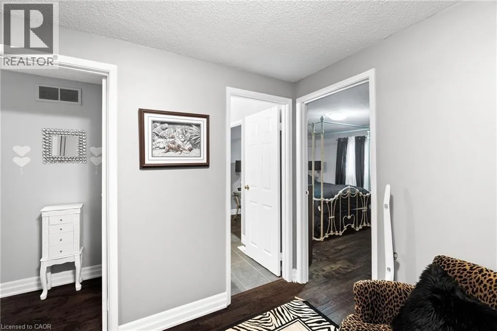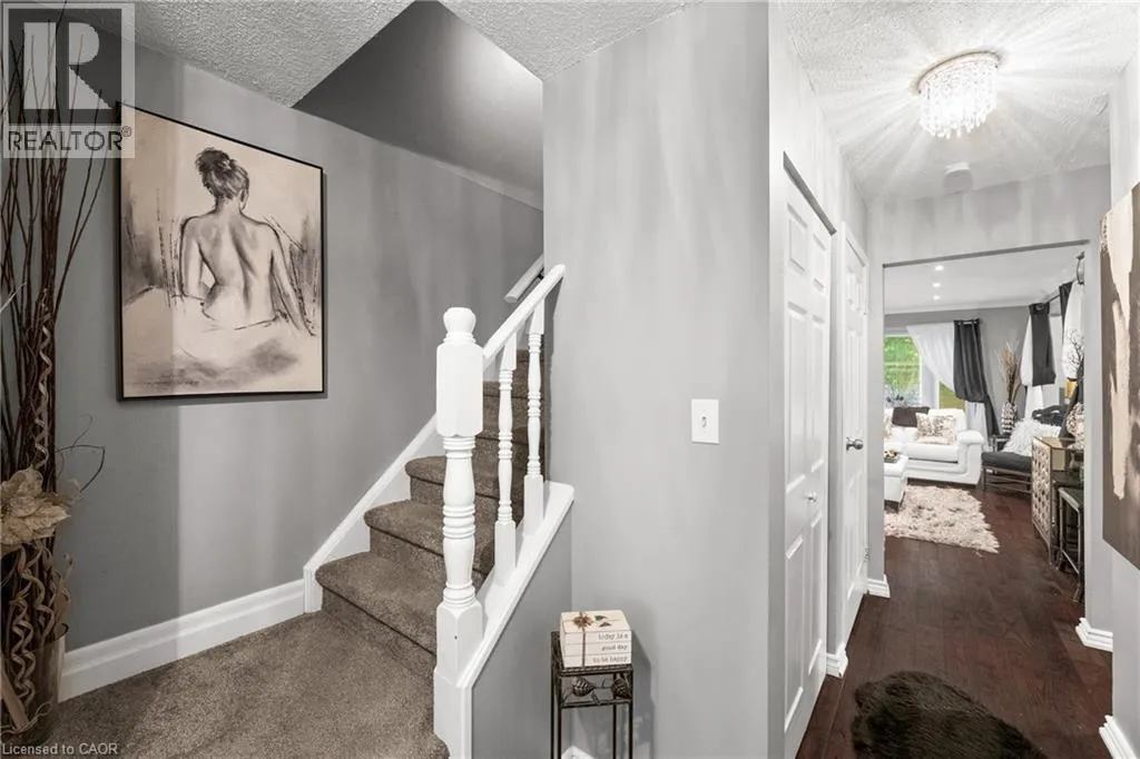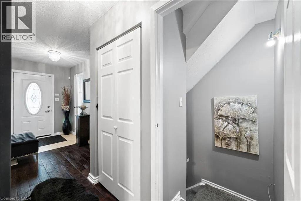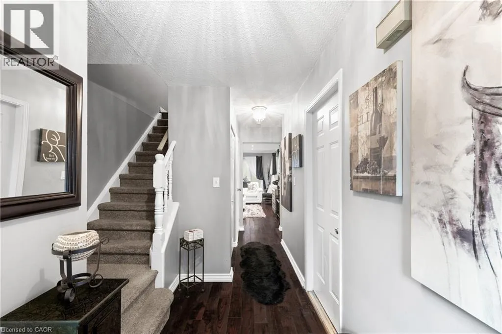 RYMAL RD & UPPER GAGE This fully renovated 3+1 bedroom, 2.5-bath townhome offers exceptional value with a low condo fee and a prime location near top-rated schools, public transit, and quick access to The Linc. It features spacious bedrooms, a beautifully updated kitchen, hand-scraped hardwood floors throughout, and a fully finished basement complete with a large rec room, additional bedroom, and full bathroom ideal for guests, in-laws, or a home office. Recent upgrades include new furnace, new front and patio doors (installed within the past two years), a full alarm system with Ring doorbell, and all window coverings included. A well-maintained, move-in ready home in a convenient, family-friendly neighbourhood. (id:27476)