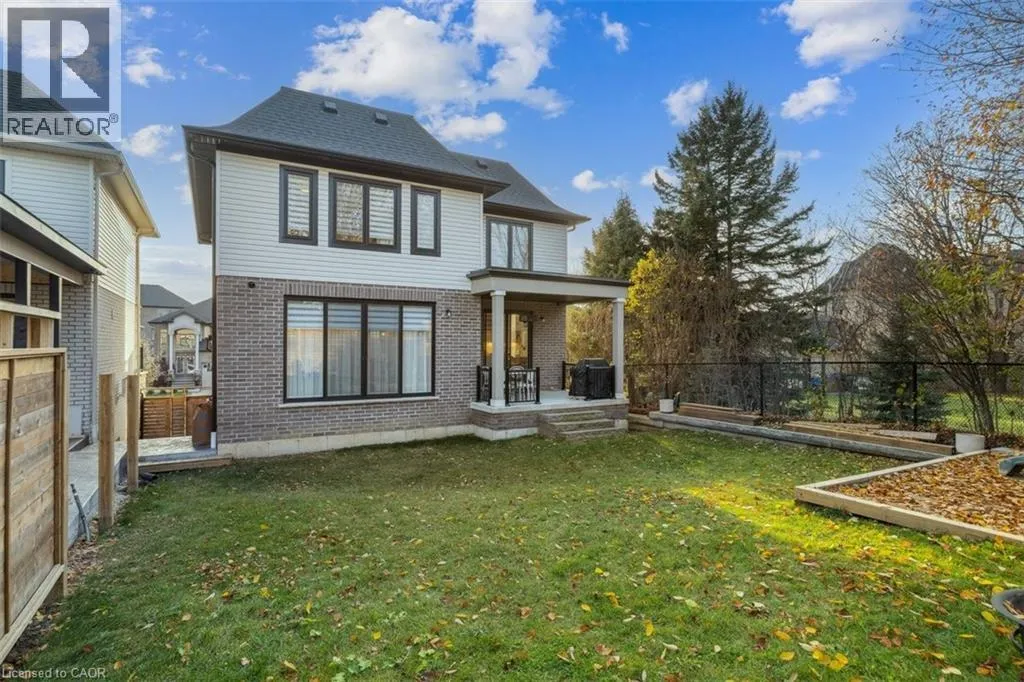 South on Dicenzo Dr from Stone Church. East on Cielo Court Welcome to this exceptional four-year-new DiCenzo build offering over 3000 sq ft of total living space! Nestled on a private court, the property captivates immediately with pristine curb appeal, including a newly completed interlocking-stone driveway. As soon as you enter into the spacious foyer, itâs clear no upgrade has been overlooked. The open-concept main level features an elegant dining room with floor-to-ceiling windows and a walkout to the front balcony. The chefâs kitchen is beautifully appointed with premium appliances, abundant cabinetry, endless upgrades, and a versatile oversized front closet ideal for a dream pantry. Sliding doors lead to a covered porch perfect for summer entertaining. Floor-to-ceiling windows continue in the living room with double sliding French doors, custom built-ins, and a gas fireplace. A private powder room completes this level. The staircase with built-in lighting leads to three generously sized bedrooms. Bedrooms two and three share a Jack-and-Jill bathroom, and a dedicated laundry area adds convenience. The primary suite is a true retreat with dual walk-in closets and a luxurious five-piece ensuite. The lower level, with a separate entrance from the double-car garage, has been newly finished to include a secondary living area with custom built-ins, a three-piece bathroom, and an office or potential fourth bedroom with an egress windowâideal for extended family or guests. Outside, the backyard is designed for relaxation and entertainment with a covered porch, expansive fully fenced yard, and dedicated play area. This home is truly move-in ready and offers an exceptional lifestyle. Book your private showing today! (id:27476)