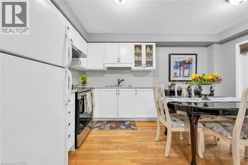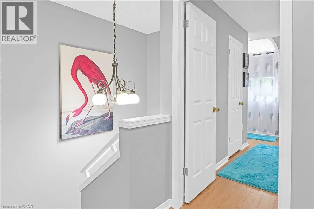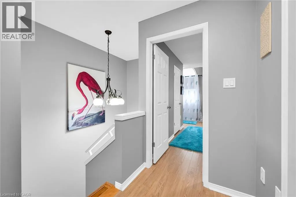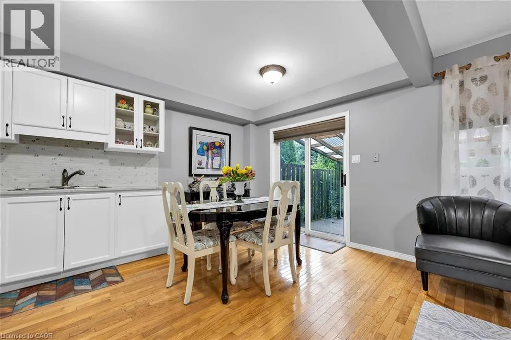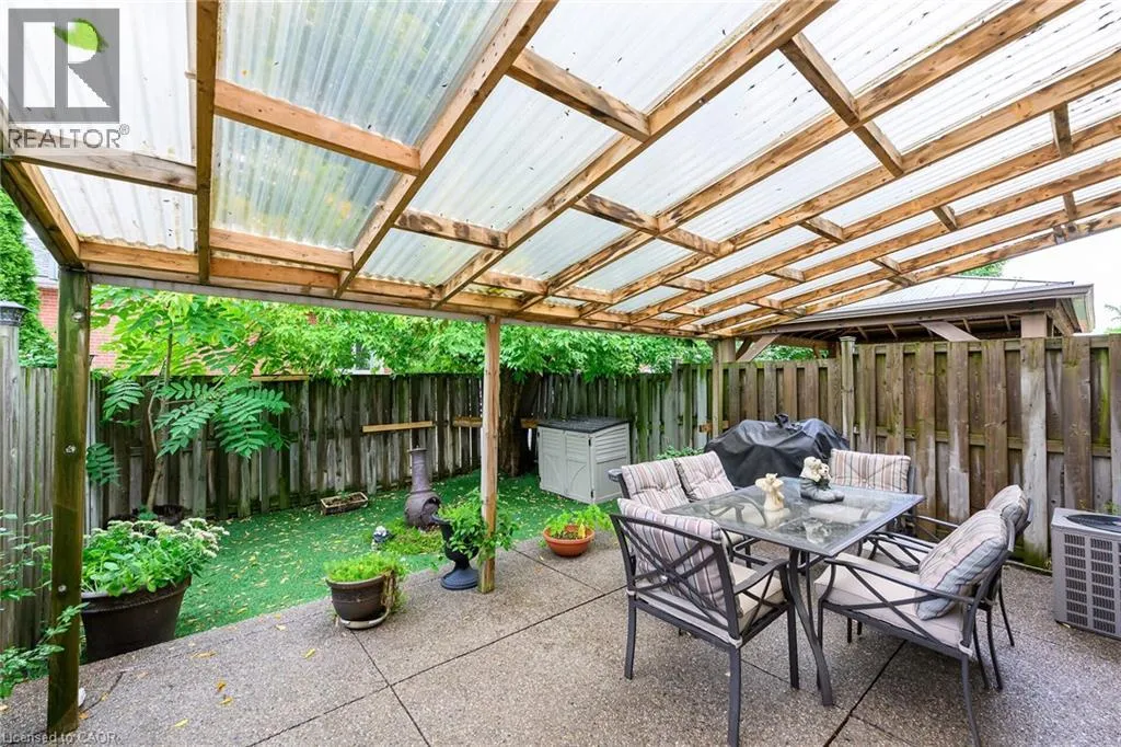 Barton St towards Grays Welcome to 5 Vulcan Court, Stoney Creek, a beautifully maintained freehold townhome with NO condo fees, nestled on a quiet court in a prime location close to all amenities.This move-in ready gem offers a blend of comfort, functionality, and pride of ownership throughout. Step inside to discover a warm and inviting open-concept layout featuring a spacious living and dining area with gleaming hardwood floors and an abundance of natural light. The oak staircase and absence of carpeting throughout the home provide both elegance and ease of maintenance. The kitchen is open and functional, perfect for everyday living and entertaining. Upstairs, youâll find generously sized bedroom ideal for families, guests, or a home office setup. The finished basement offers additional living space perfect for a rec room, gym, or home theatre. Step outside to your private backyard oasis, complete with a beautiful aggregate concrete patio and driveway, creating a clean and upscale exterior. The large lot offers plenty of space for outdoor entertaining, gardening, or simply relaxing in privacy. Additional features include a single-car garage with interior access, central location just 5 minutes from the lake, and convenient access to the QEW, schools, parks, shopping, and public transit. Donât miss your opportunity to own this stunning townhome that truly shows pride of ownership. Whether you're a first-time buyer, investor, or downsizer, 5 Vulcan Crt has everything youâve been looking for and more. (id:27476)