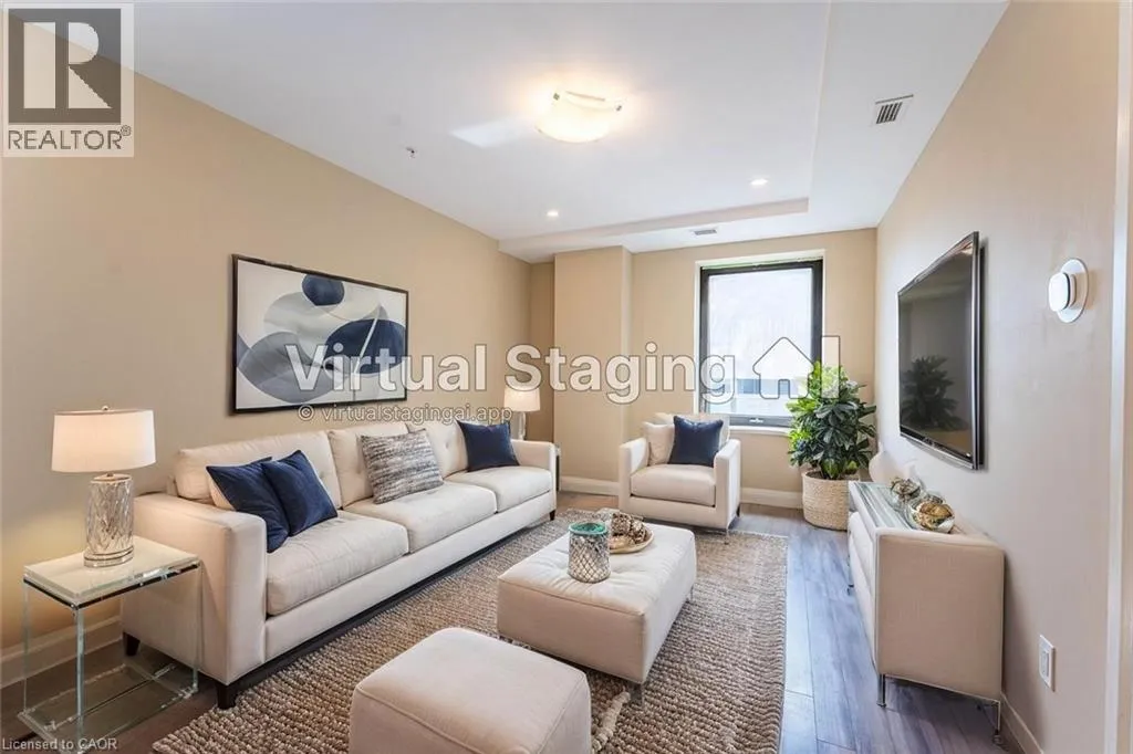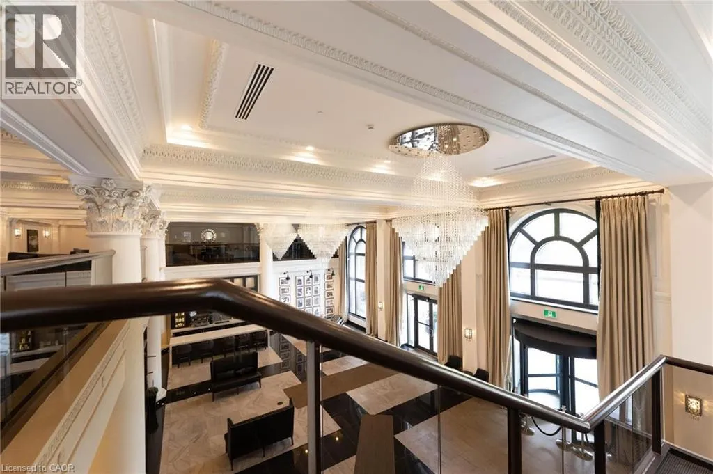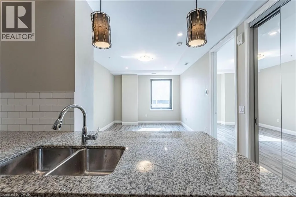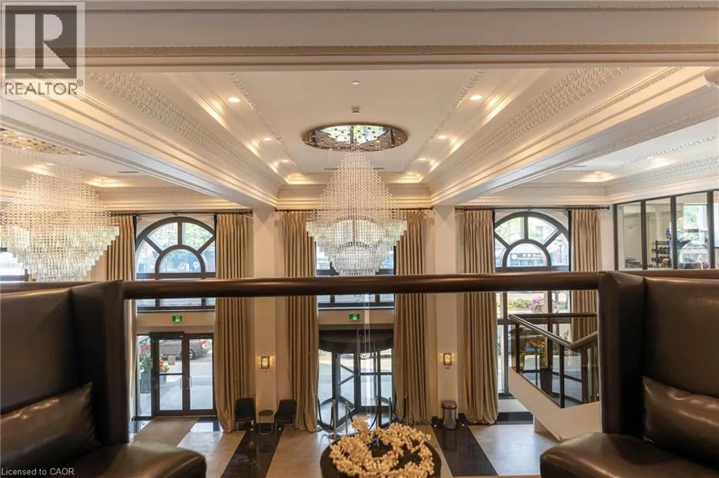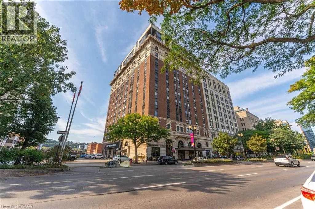 King and John Beautiful 1-bedroom, 1-bathroom condo in the prestigious Historic Residences of The Royal Connaught. Freshly Painted and Brand new flooring in this spacious unit offers an open-concept layout providing views of vibrant Downtown Hamilton. The kitchen features stainless steel appliances, granite countertops, and an undermount sink, mirrored in the bathroom for a cohesive look. Enjoy a walk-in closet in the bedroom, modern engineered flooring, pot lights throughout, and the convenience of insuite laundry. The building offers 24-hour security, a theatre room, fitness centre, rooftop terrace/garden, and more. Ideally located steps from shops, acclaimed restaurants, GO Station, Gore Park, the Art Gallery of Hamilton, and public transit. (id:27476)