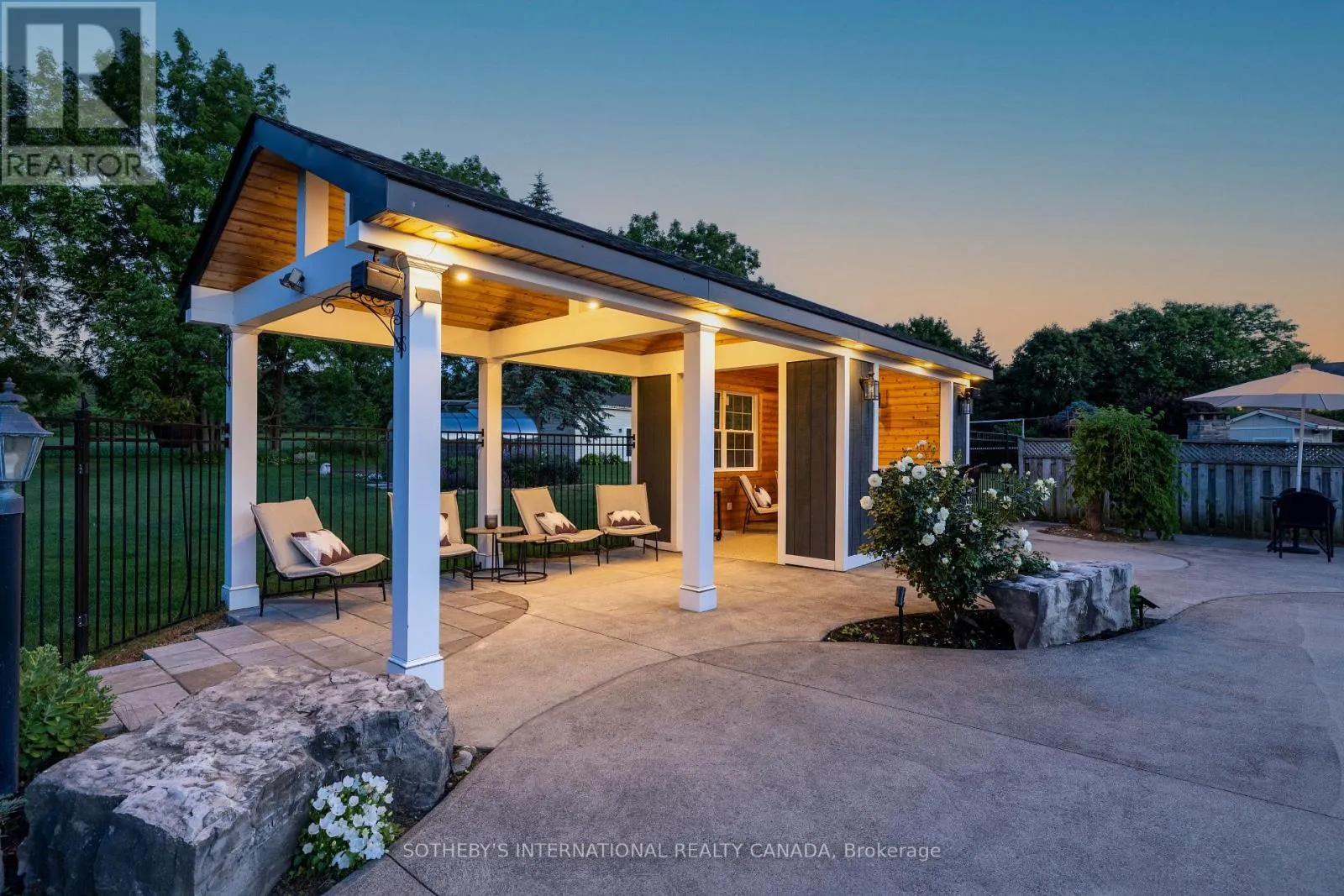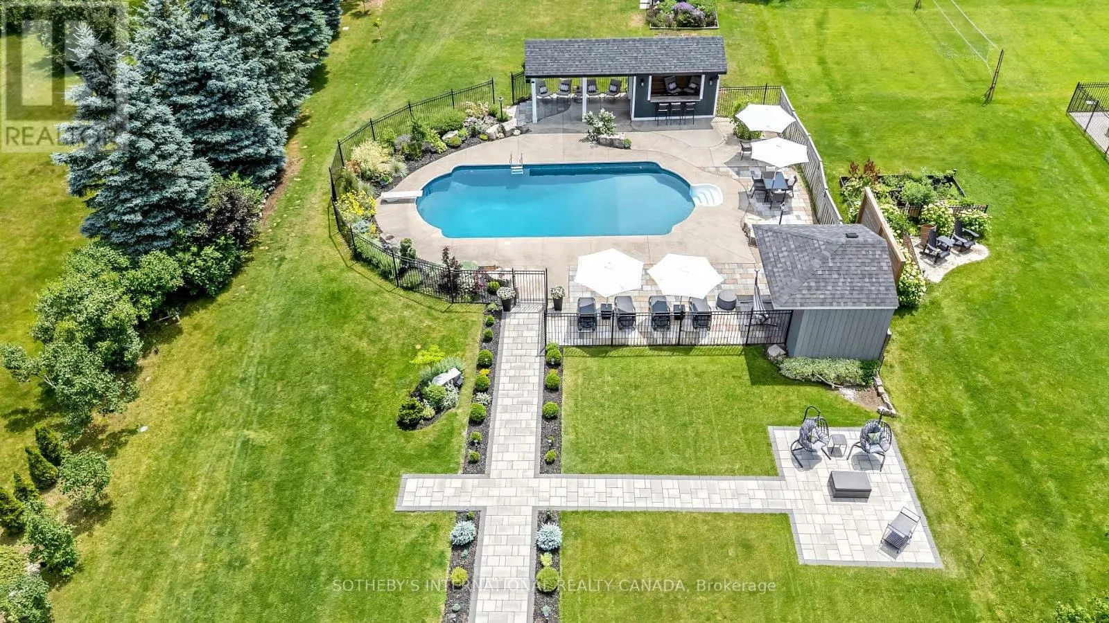 Cross Streets: Meander/Centre. ** Directions: Centre Rd to Meander Close. Your dream home awaits. Welcome to 10 Meander Close, a luxurious cape cod style home set in an exclusive enclave of estate homes in the charming community of Carlisle. Featuring over 4000 square feet of impeccably designed, finished living space, 6 total bedrooms, 5 bathrooms, & incredible backyard oasis with in-ground pool, hot tub, cabana, gazebo, fire-fit, & greenhouse. White oak hardwood flooring on the main & second level, with matching wood staircase with wrought iron spindles, sophisticated designated office, romantic formal dining room, & sunken living room with focal brick wood fireplace & custom built shelving. The stunning white kitchen features black accents, gold hardware, granite counter tops, 10 ft centre island, 10 ft long walk-in pantry, & high-end appliances. Large mudroom off the kitchen, ideal for family storage with garage entry. Upstairs, 5 large bedrooms, 4 share 2 resort like bathrooms, & the primary has an expansive 5 piece ensuite. Large dressing room in the primary with built-in shelving with glass doors. Convenient upper level laundry room & hallway balcony overlooking the stunning backyard. This home has been tastefully renovated with gorgeous feature walls, wainscotting, crown moulding, upgraded lighting, built-in cabinetry & so much more. The finished basement features a glass encased theatre room, extra bedroom with access to 4 piece bath, & plenty of storage space. Take the back sliding doors to the backyard retreat with incredible hardscape, gardens, & outdoor lighting. Jump into the hot tub on those cold winter nights, or walk the path to the pool area with plenty of space for lounging, dining, & entertaining. Custom cabana, fire-pit, gazebo, & state of the art greenhouse to keep the whole family entertained throughout the summer. The curb appeal is remarkable, with hundreds of thousands spent on hardscape & lush gardens both in the front & back of the home. Full irrigation system with 15 zones. Shows 10++. (id:27476)