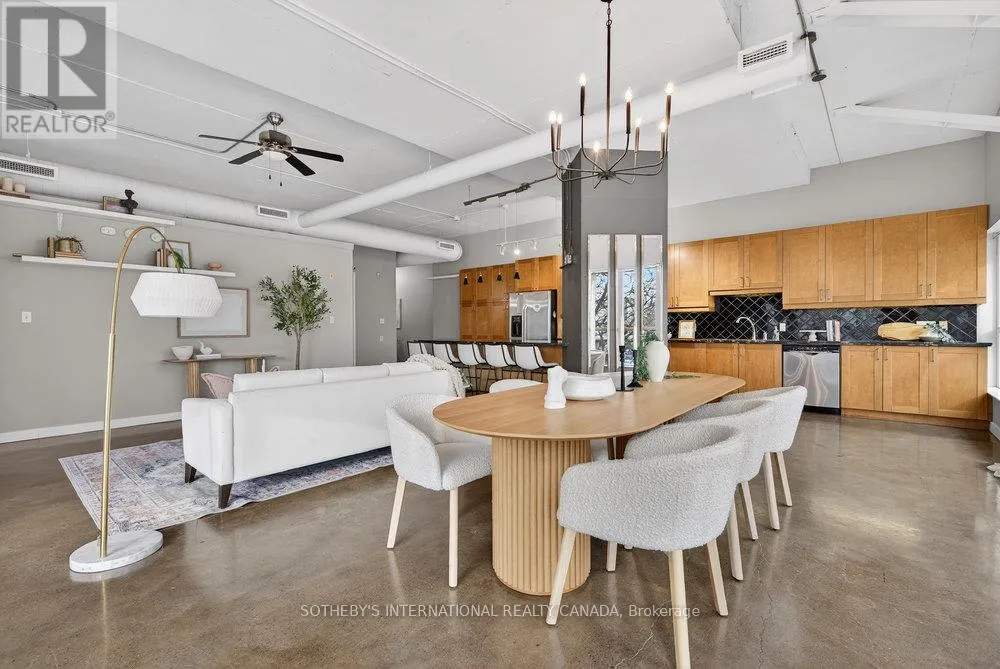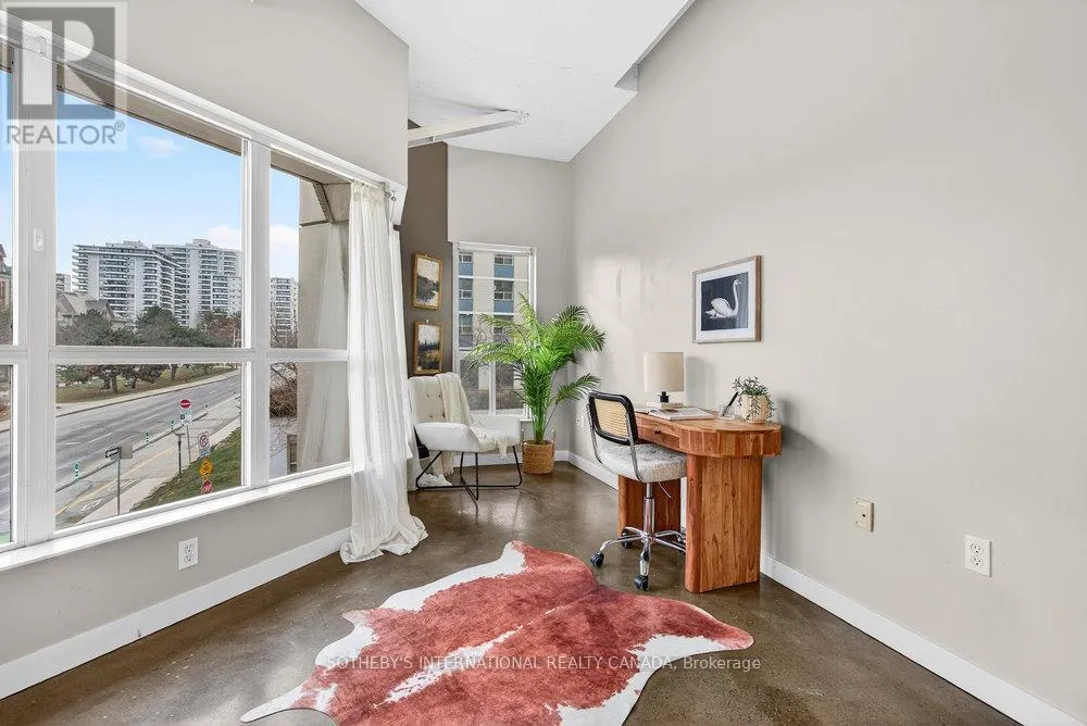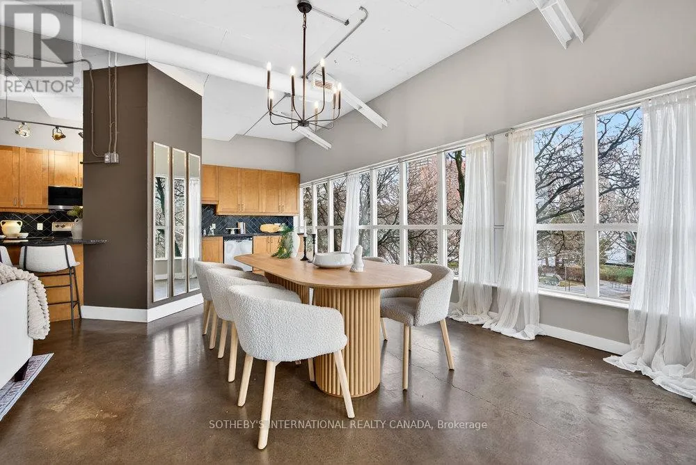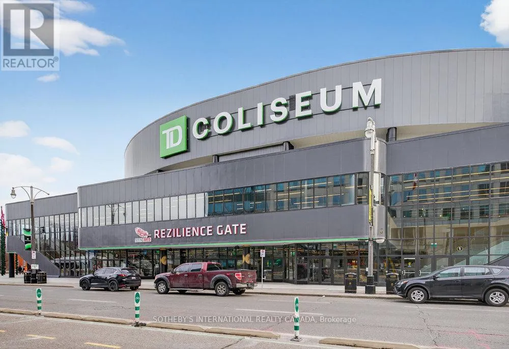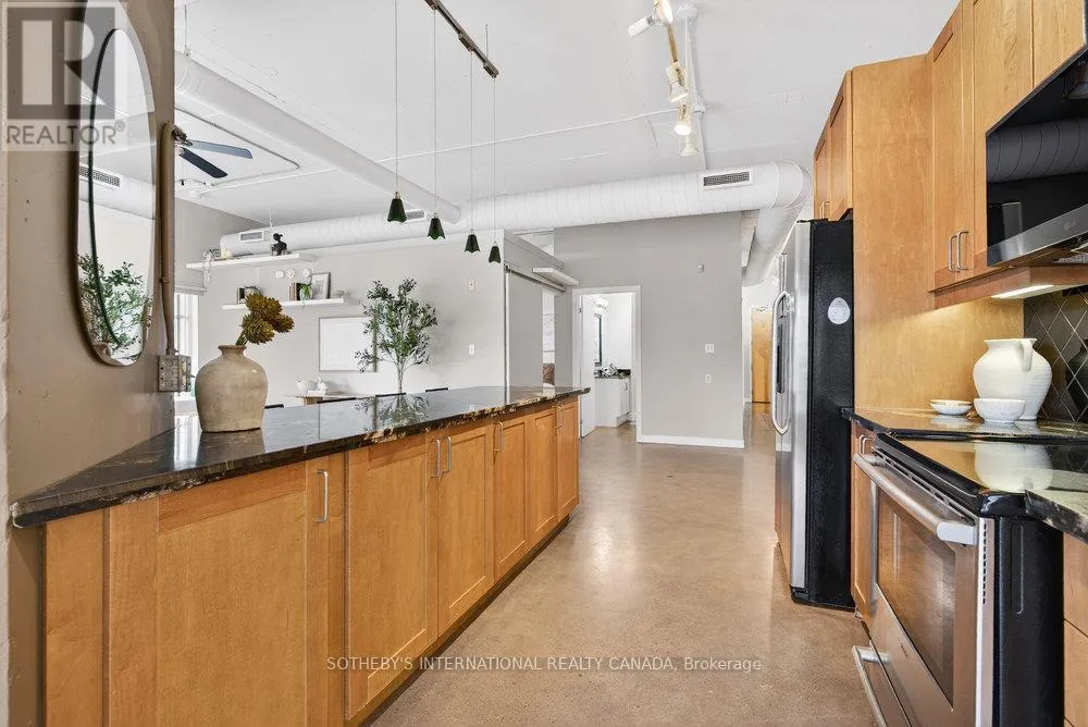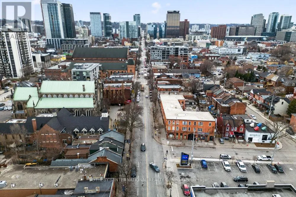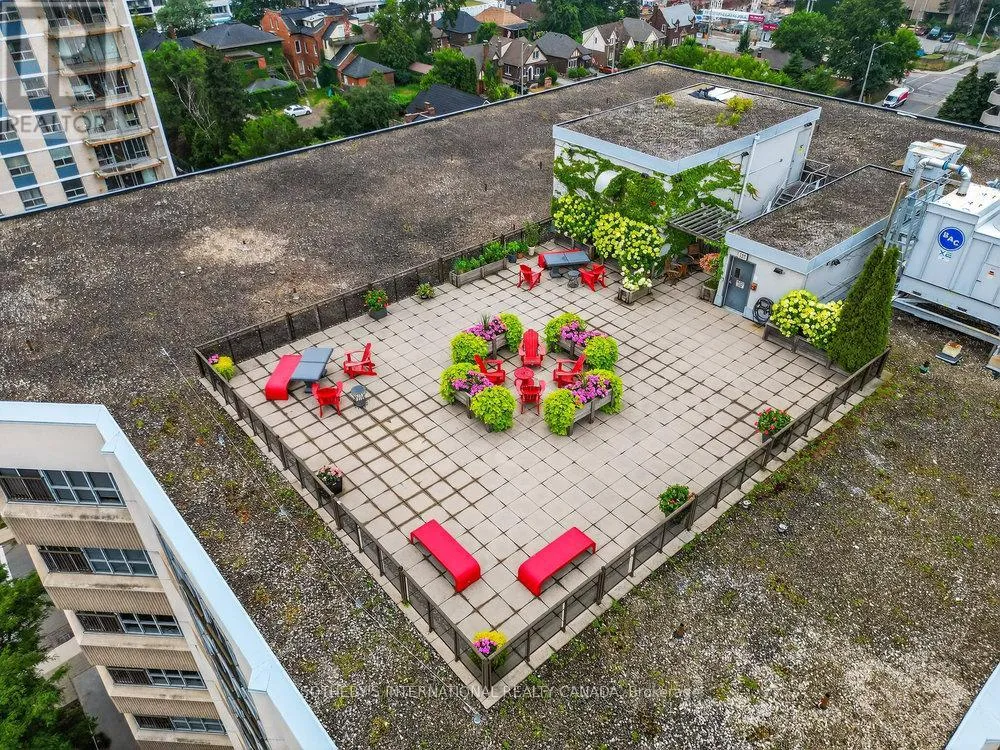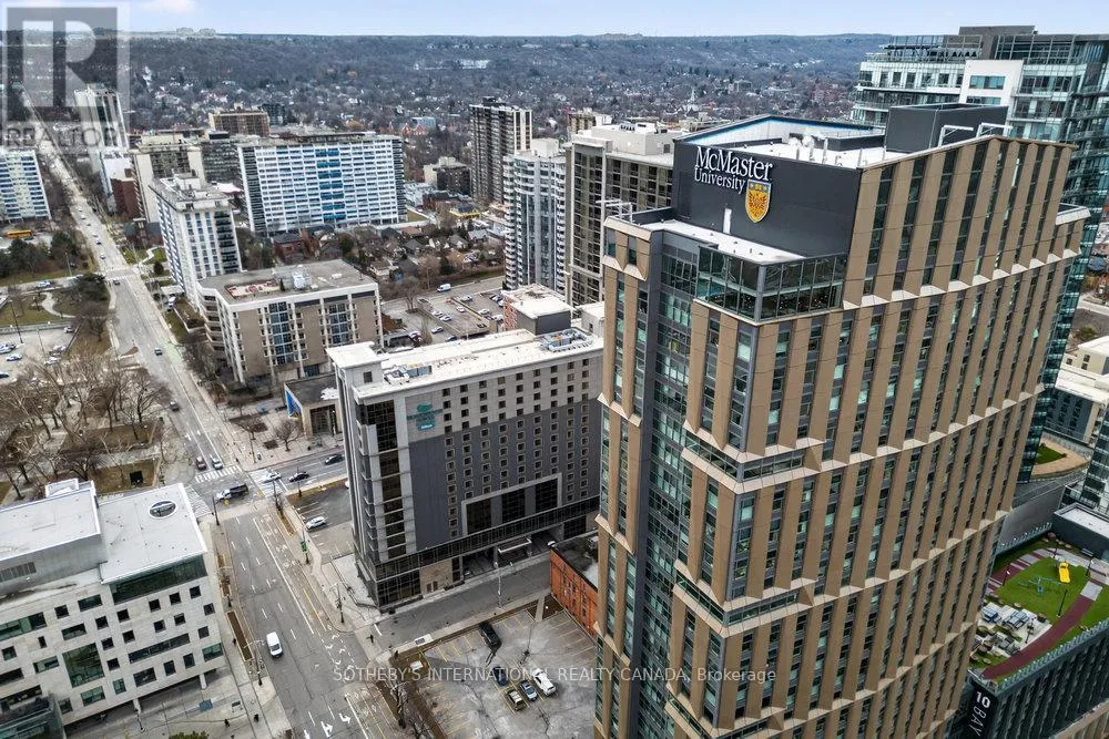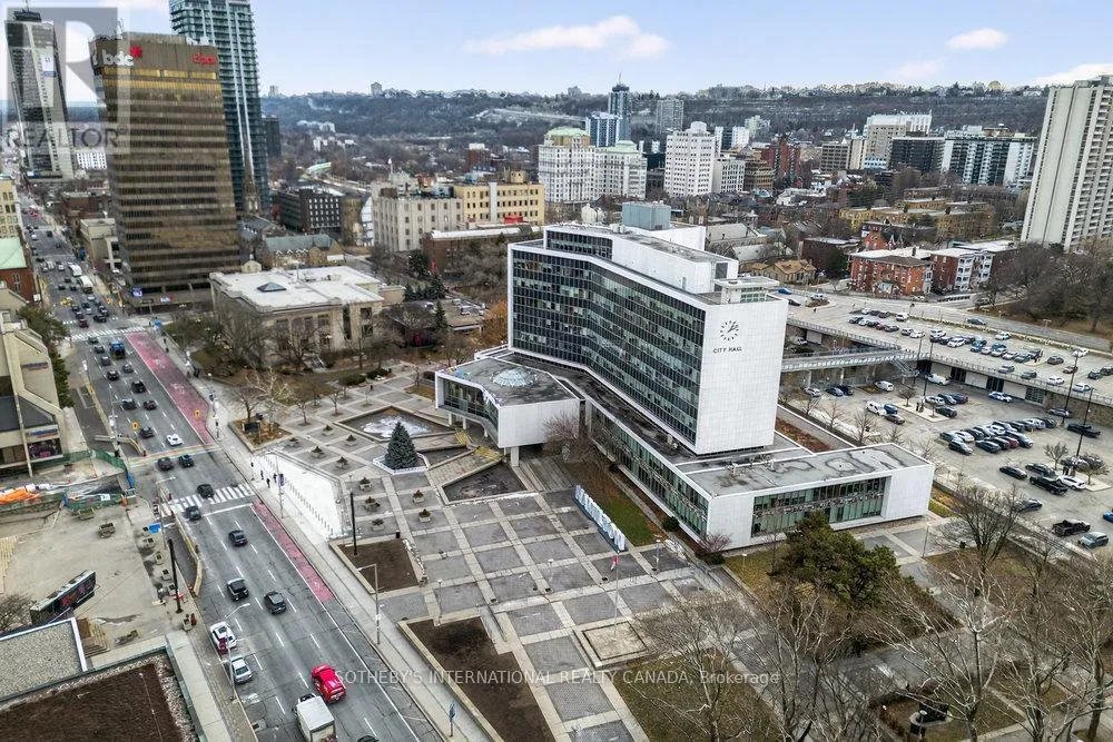 Cross Streets: Jackson St/Bay St. S. ** Directions: Bay St. South between Main and Jackson. Acrossfrom City Hall. An exceptional corner loft at the sought-after Core Lofts, offering almost 1,700 sq. ft. of bright, open-concept living in the heart of downtown Hamilton. This 2-bedroom, 2-bathroom residence features 10+ ft ceilings, walls of glass, and beautiful morning sun that fills the space with natural light. The spacious kitchen is appointed with oak cabinetry and granite countertops, flowing seamlessly into expansive living and dining areas ideal for both everyday living and entertaining. The primary suite includes a spa-inspired ensuite with jacuzzi tub and oversized shower. In addition to two bedrooms, the layout includes a separate den-style alcove off the main living area, offering flexible use as a home office or sitting area. The second bedroom is interior and does not include an exterior window. Beautifully presented with a bright, clean feel throughout, this home offers effortless condo living well suited to professionals, with in-suite laundry, underground parking, and locker, in a secure, well-managed building with a fitness centre, rooftop terrace, and party room. Condo fees include heat and water, adding to the ease and convenience of day-to-day living. Enjoy a truly walkable lifestyle just steps from the newly opened TD Coliseum, along with downtown restaurants and cafés, the Art Gallery of Hamilton, Central Library, Farmers' Market, waterfront trails, GO Transit, and the vibrant communities of Locke Street South and James Street North. Convenient access to St. Joseph's Healthcare Hamilton, David Braley Health Sciences Centre, and major transit corridors makes commuting and downtown connectivity seamless. A rare opportunity to own a true loft-style corner residence offering space, light, and an effortless urban lifestyle. (id:27476)