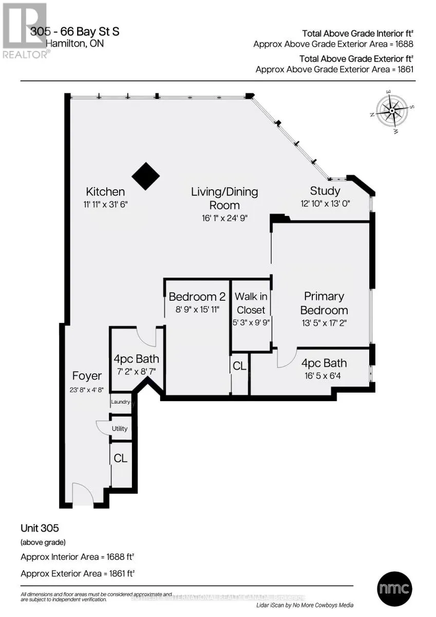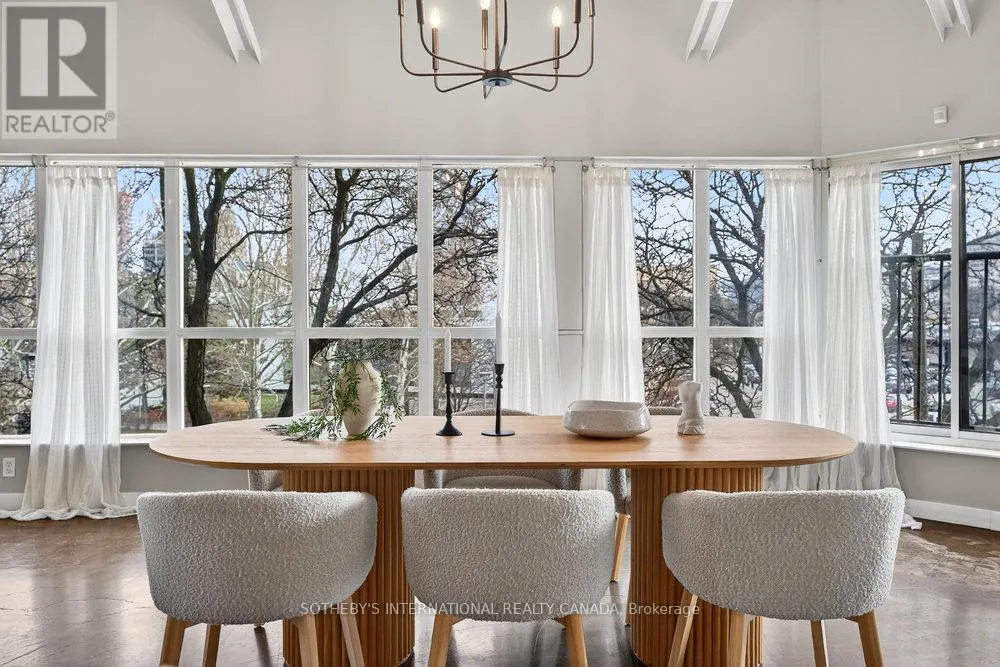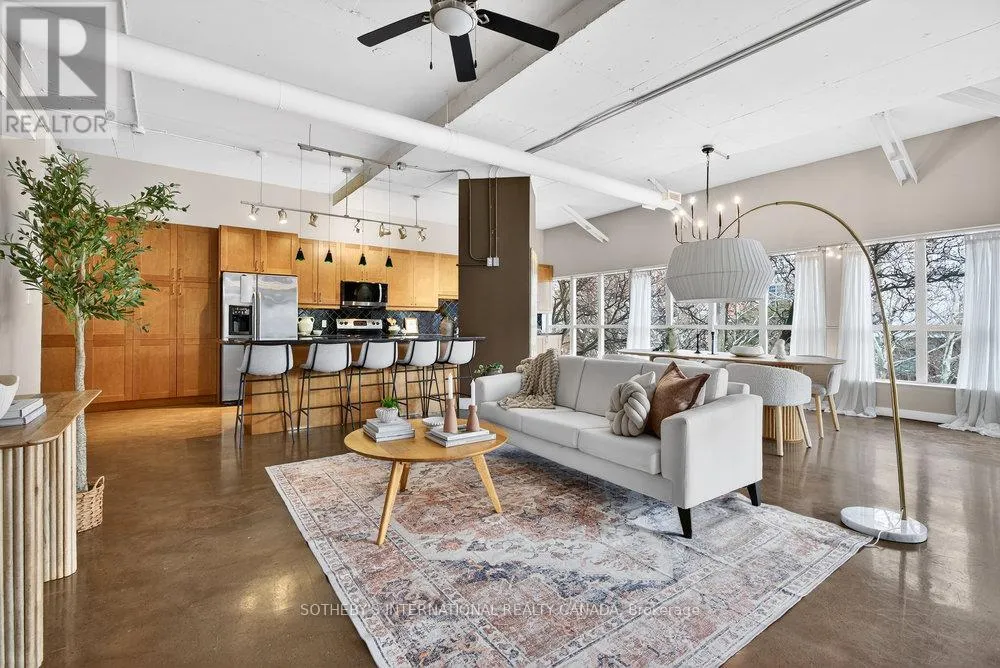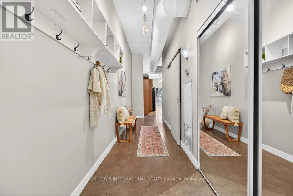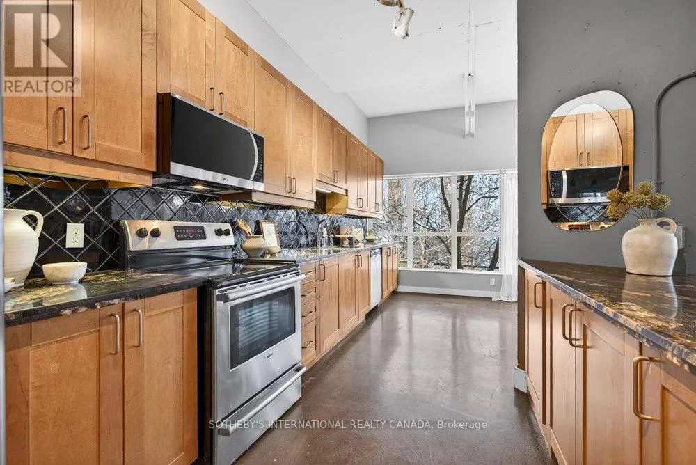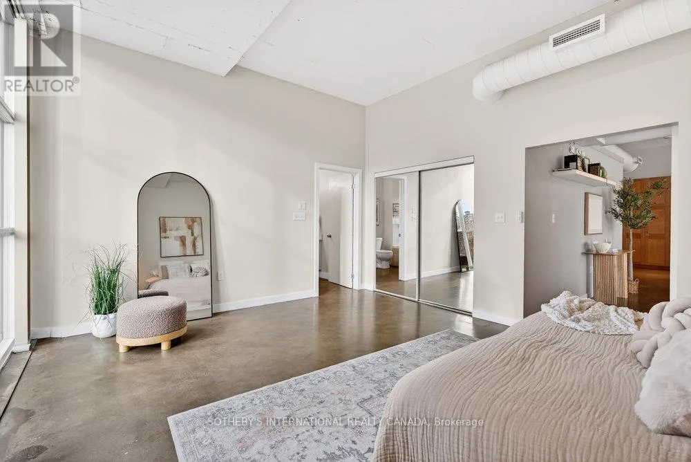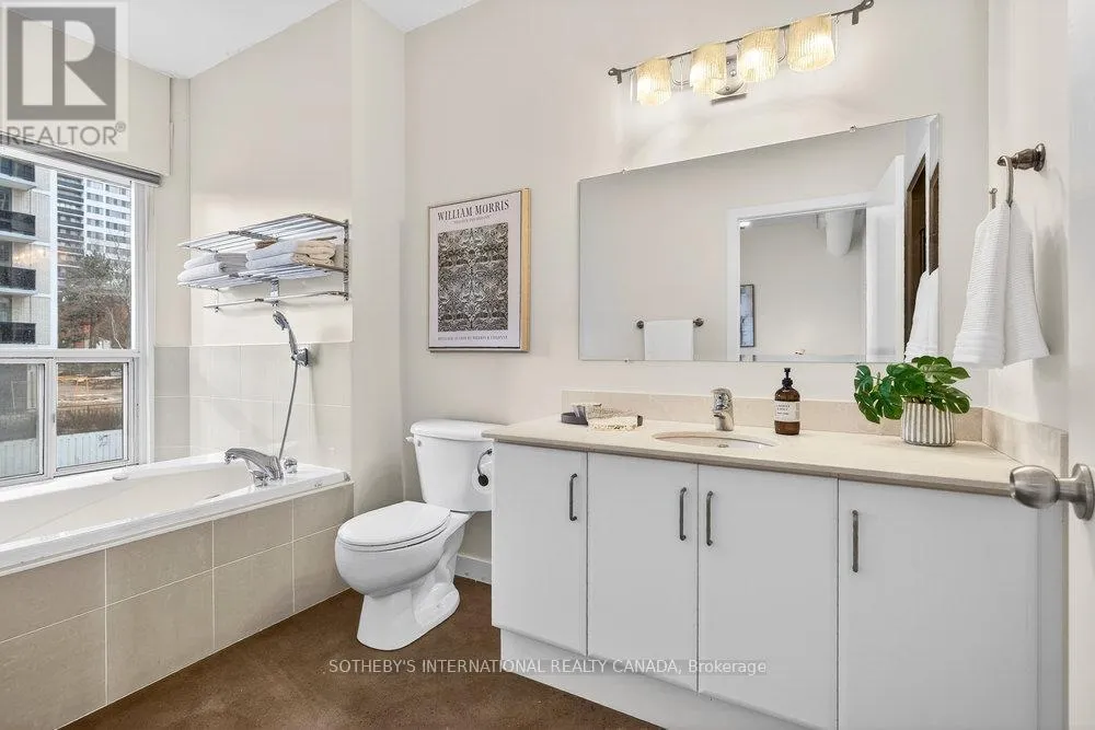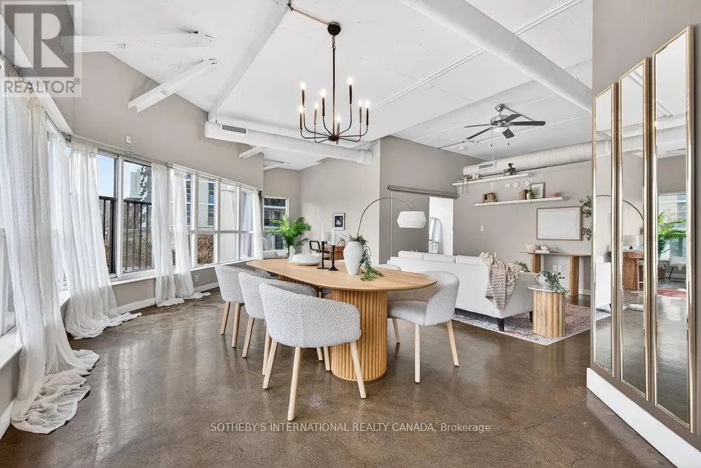Cross Streets: Jackson St/Bay St. S. ** Directions: Bay St. South between Main and Jackson. Acrossfrom City Hall. An exceptional corner loft at the sought-after Core Lofts, offering almost 1,700 sq. ft. of bright, open-concept living in the heart of downtown Hamilton. This 2-bedroom, 2-bathroom residence features 10+ ft ceilings, walls of glass, and beautiful morning sun that fills the space with natural light. The spacious kitchen is appointed with oak cabinetry and granite countertops, flowing seamlessly into expansive living and dining areas ideal for both everyday living and entertaining. The primary suite includes a spa-inspired ensuite with jacuzzi tub and oversized shower. In addition to two bedrooms, the layout includes a separate den-style alcove off the main living area, offering flexible use as a home office or sitting area. The second bedroom is interior and does not include an exterior window. Beautifully presented with a bright, clean feel throughout, this home offers effortless condo living well suited to professionals, with in-suite laundry, underground parking, and locker, in a secure, well-managed building with a fitness centre, rooftop terrace, and party room. Condo fees include heat and water, adding to the ease and convenience of day-to-day living. Enjoy a truly walkable lifestyle just steps from the newly opened TD Coliseum, along with downtown restaurants and cafés, the Art Gallery of Hamilton, Central Library, Farmers' Market, waterfront trails, GO Transit, and the vibrant communities of Locke Street South and James Street North. Convenient access to St. Joseph's Healthcare Hamilton, David Braley Health Sciences Centre, and major transit corridors makes commuting and downtown connectivity seamless. A rare opportunity to own a true loft-style corner residence offering space, light, and an effortless urban lifestyle. (id:27476)