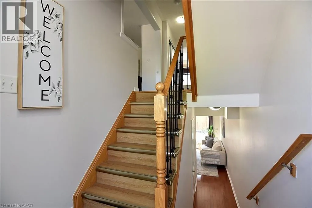 Kitty Murray-Emick-Ohara Opportunity Knocks! NO ROAD FEES! Welcome To 45 Ohara Lane, A Chic Freehold Street Townhome In Ancasterâs Meadowlands, Steps To Parks, Schools, Redeemer University With Shopping, Eateries And Entertainment Nearby. Excellent Access To Highway 403 For Commuters! The Tasteful Yet Manageable Landscaping Adds To The Curb Appeal That You Will Enjoy Coming Home To. The Stairs To The Main Level Are Enhanced By The Iron Spindles. Here You Find The Bright Living/Dining Room With Hardwood Floors, A Perfect Space To Entertain Or Simply Kick Back And Relax. The Modern Kitchen Features Quartz Countertops And Backsplash And Stainless-Steel Appliances. Enjoy The Morning Coffee Or Casual Meals In The Bright, Spacious Dinette. The 2 -Piece Powder Room Completes The Main Level. The Upper-Level Features 3 Bedrooms, All With Engineered Hardwood Floors, And A 3 Piece Bath With A Huge Glass-Door Shower With A Rainfall Showerhead. The Lower Level Offers The Family Room With Hardwood Floors And A Walk Out To The Fenced Rear Yard. Also On The Lower Level Is The Laundry/Utility Room, A Storage Room Plus Direct Access To The Garage With A Door Opener. Both The Furnace And Central Air Are Owned. This Carpet-Free Home Has Been Freshly Repainted Making It Move-In Ready For You! (id:27476)