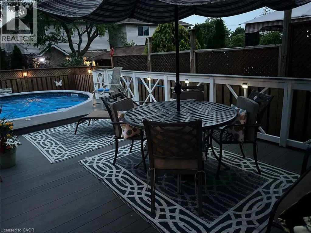 Rymal, South on Upper Wellington to Jacqueline One owner home, meticulously maintained and thoughtfully upgraded in recent years. The attractive curb appeal is enhanced by the tasteful landscaping, concrete driveway and walkways leading to the porch or through the arbour to the rear yard. A glass insert in the front door provides natural light to the spacious foyer. The living and dining rooms both feature hardwood floors and crown mouldings. The masterpiece of the home is the custom chefâs kitchen, completely reconfigured in 2010 with white cabinetry, granite counters and high-end stainless-steel appliances: Frigidaire Professional double wall ovens and refrigerator, Electrolux 5 burner gas cooktop. Loads of storage thanks to the pantry with pull-out drawers, base cabinets with lazy susans, pots and pans drawers and a lighted display cabinet. Patio doors lead to the large composite deck, refreshing pool and concrete patio. Perfect for summer entertaining! A handy powder room completes the main floor and a wood staircase with painted spindles leads to the bedroom level. All the bedrooms are spacious while the primary suite offers his and hers closets and a renovated ensuite: new vanity with a quartz counter and a glass shower with a rainfall showerhead. The lower level consists of a large rec room with gas fireplace, perfect for entertaining or quiet family evenings. The workshop, laundry/utility room and large cold room offer ample storage or workspace. Updates include kitchen & furnace 2010, roof shingles 2012, pool & deck 2021, liner 2025, windows and doors 2021-22 (except dining room), fridge & cooktop 2022-23, driveway & gutter leaf guard 2023, ensuite bathroom 2024. Extras include upgraded light fixtures, pot lights, brushed nickel door hardware, window blinds and a large shed. Conveniently located in the family-friendly Allison neighbourhood, steps to parks, library, YMCA and transit with an easy drive to Limeridge Mall & Upper James shopping/eateries. This move-in ready home awaits you! (id:27476)