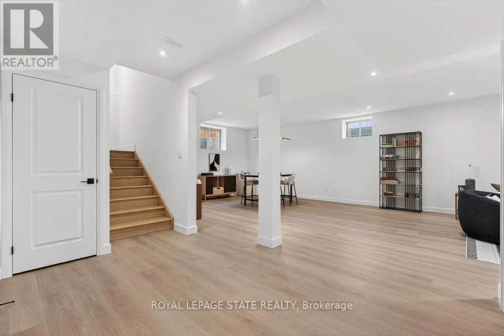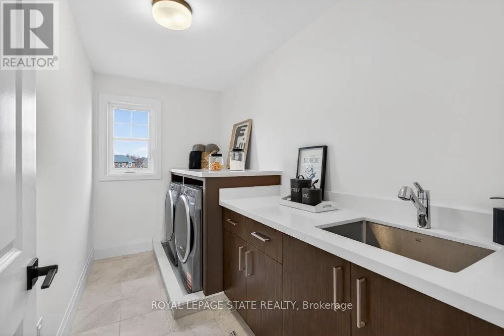 Fruitland to N. Service to Glover and Watershore Brand new lake-facing home in award-winning community- The Residences at Watershore! Don't miss this rare opportunity to own a stunning 4-bedroom, 4.5 bathroom home on a premium corner lot just steps from Lake Ontario. This home features a custom layout that has been professionally designed with elevated finished throughout. The bright, open concept main level features 12 x 24 tiles, engineered hardwood flooring, oak stairs to both the upper and lower levels, and a thoughtfully designed main floor den with reeded glass door. At the heart of the home, the chef-inspired kitchen is a true statement- featuring a countertop with full-height quartz backsplash for a sleek, cohesive finish. Premium details like the panel-ready fridge and dishwasher, along with a decorative hood fan, complete with kitchen's timeless and elevated aesthetic. The large living and dining areas are anchored by a gas fireplace with custom wood mantle, perfect for relaxing or entertaining. A dedicated mudroom adds convenience and function.Upstairs, retreat to the lake facing primary suite, complete with private balcony, walk-in closet with custom organizers, and a spa-like ensuite featuring a freestanding tub, custom glass shower, double sinks & quartz counters. The second bedroom includes its own ensuite with a roll-top shower and quartz vanity. Two additional spacious bedrooms share easy access to a well-appointed main bath. The second-floor laundry room includes a washer, dryer and built-in cabinetry and counter space for added function. The fully finished basement featured 9-foot ceilings, larger windows for increased natural light, vinyl plank flooring and a 3-piece bathroom- ideal for a home gym, guest retreat, or family room. Ideally located just minutes from the QEW, top-rated schools, shopping, and everyday amenities. Don't miss it! (id:27476)