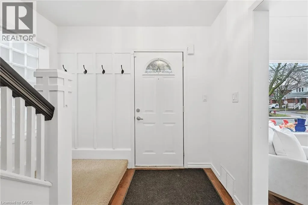 OTTAWA TO DUNSMURE Welcome to this charming all-brick century home in the desirable Crown Point neighbourhood of Hamilton. Offering approximately 1,700 sq. ft. of finished living space, this 3-bedroom, 2-bathroom home seamlessly blends classic character with modern updates.A functional foyer welcomes you into bright living and dining rooms featuring hardwood floors, perfect for everyday living and entertaining. The kitchen boasts white cabinetry, stone countertops, and stainless steel appliances, providing both style and functionality.The primary bedroom is a standout with vaulted ceilings and hardwood flooring, while two additional well-sized bedrooms offer versatility for family, guests, or a home office. The finished basement expands your living space and includes a full 3-piece bathroom, ideal for recreation or extended living needs.Step outside to a newly built deck with built-in storage, perfect for outdoor entertaining and summer enjoyment. Located close to everything Ottawa st has to offer, transit, and local amenities, this Crown Point home delivers timeless appeal, comfort, and convenience. (id:27476)