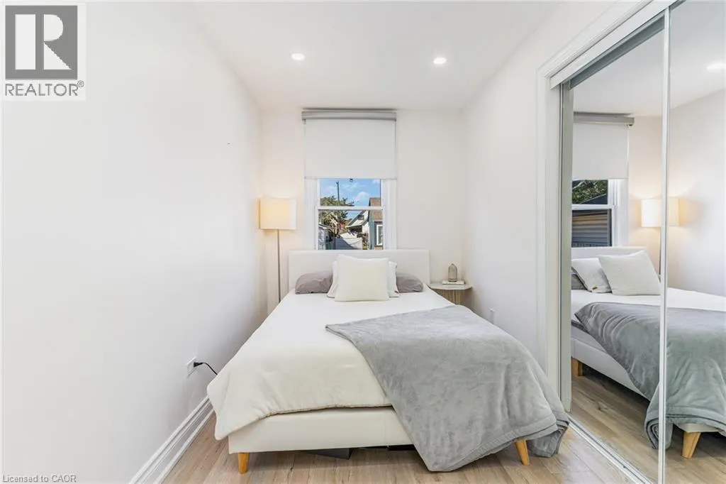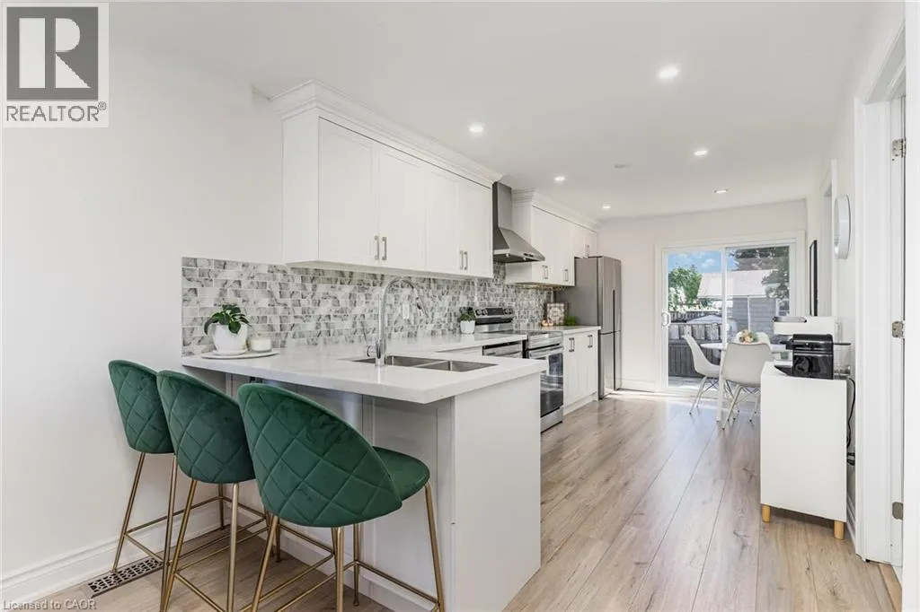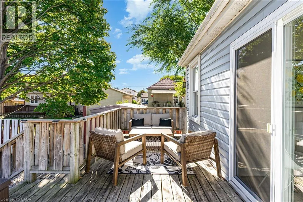 East 31st between Munn and Crockett Condo alternative in ideal Hamilton Mountain location! Walking distance to The Juravinski, Shops and Restaurants of Concession Street, Schools, Parks and Public Transit. Quick drive to the Sherman Cut and the LINC for commuters. This 2 bedroom, 1 bathroom bungalow was updated in 2021 with new electrical, plumbing, flooring, and HVAC. Enjoy a new (2021), large eat-in kitchen complete with quartz countertops, bar seating, and direct access to the rear deck and yard. An updated 4 pc bath (2021) complete with ensuite laundry and 2 bedrooms both with closets. 1 car front yard parking. Do not miss out, book your showing today! (id:27476)