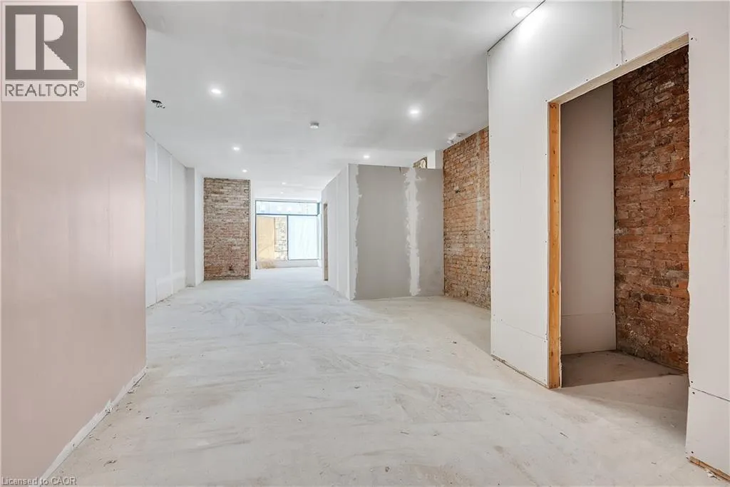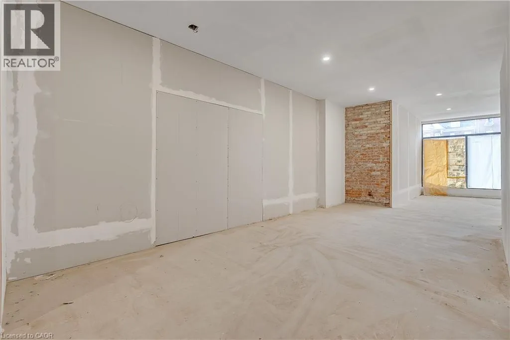 Between Emerald Avenue and East Avenue on King Welcome to your business's new home! Nearly 1,000 square feet of prime retail space on Hamilton's future LRT corridor. Unit has been recently renovated, fully ready for tenant touches and fixtures! Includes furnace and A/C, rough-ins for plumbing and water lines, 100-amp panel, recessed pot lights, and gorgeous exposed brick. Steps to Hamilton's downtown, International Village, Cathedral High School and minutes to Hamilton General Hospital. Residential units above have been fully renovated and are presently 100% tenanted, meaning an existing customer base right when you move in! Building includes brand new façade and front windows. Parking available at rear. Note: unit still requires construction of washroom, including necessary rough-ins. (id:27476)