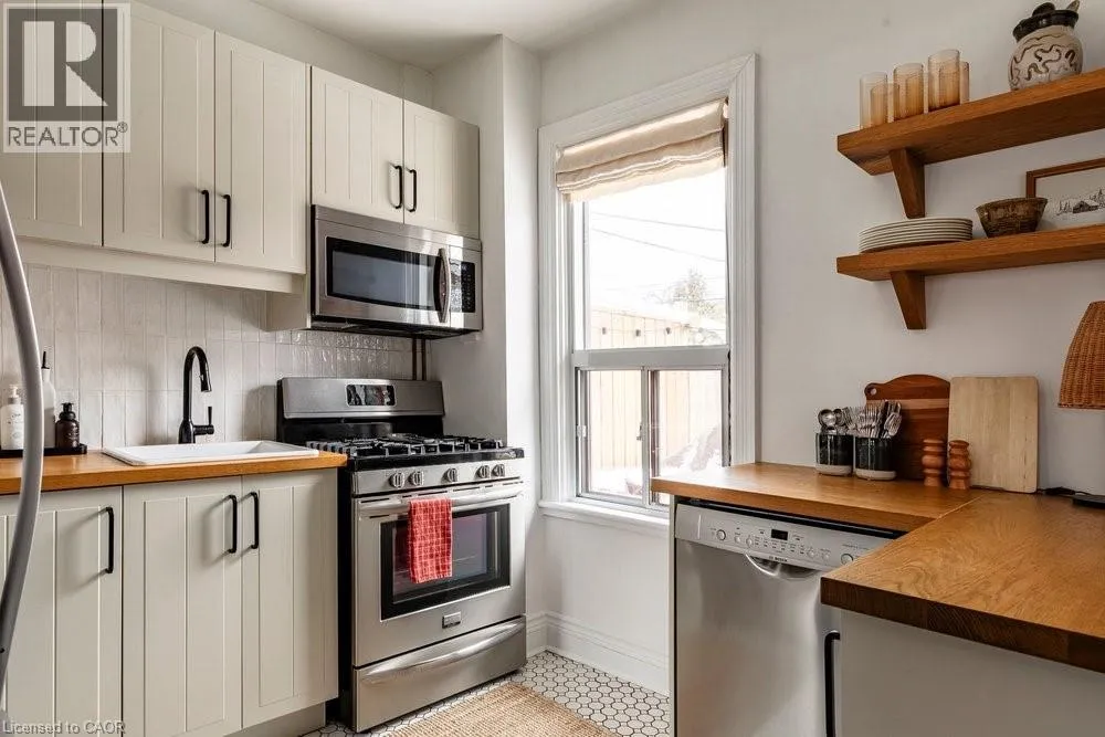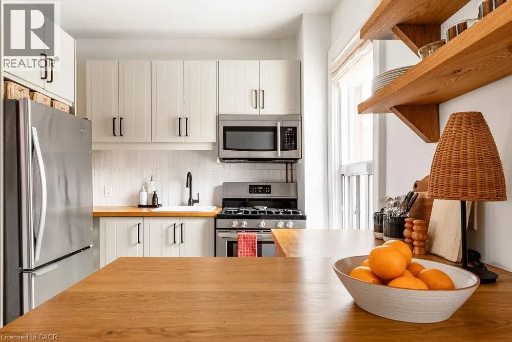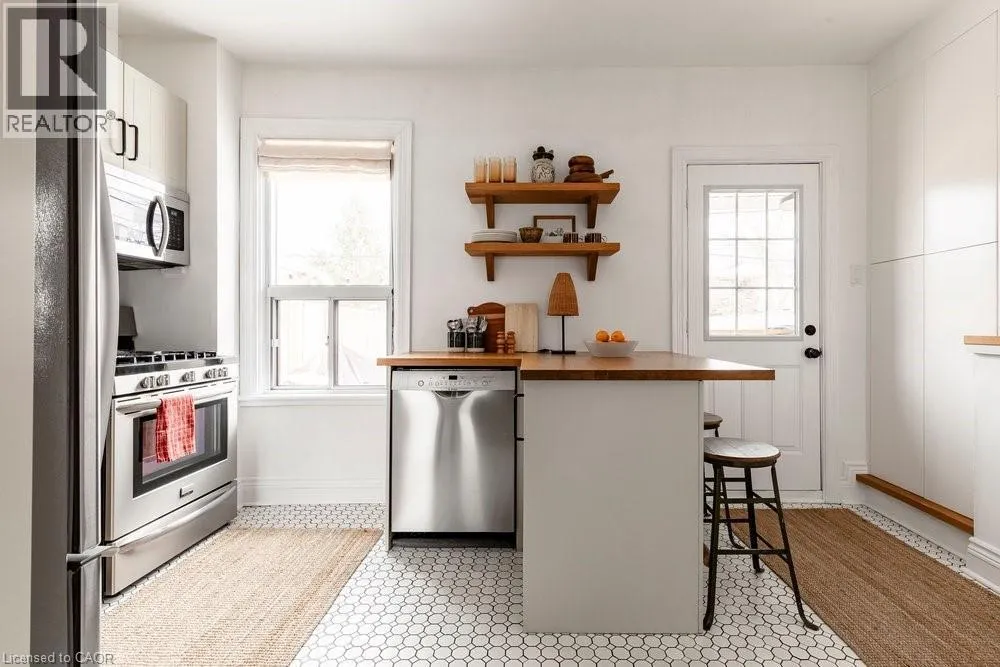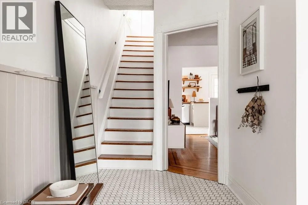 West on Cannon St Turn Right on Chestnut Ave. East on Barton St E Turn Right on Chestnut Ave. Welcome to 114 Chestnut Avenue, a charming c.1910 gambrel-style home full of character and thoughtfully updated for modern living. A wide, welcoming entry sets the tone, opening into the dining and living rooms where original inlaid oak floors and matching arches. The updated kitchen blends heritage-inspired cabinetry with contemporary function, offering storage, a dedicated pantry wall, and an efficient layout ideal for everyday living. Upstairs, three well-proportioned bedrooms are complemented by a four-piece bathroom featuring a classic clawfoot tub. The lower level provides valuable additional living space, including a recreation room, a second four-piece bathroom, laundry area, and ample storage. Outdoors, the private backyard is framed by mature lilac trees and gardens designed for seasonal interest and charm. Convenient laneway parking for one vehicle completes this inviting property. Chestnut Avenue is a friendly street close to local favourites like Playhouse Cinema, MaiPai, Nanny & Bullâs, Hamilton Library and Tim Hortonâs Field. (id:27476)