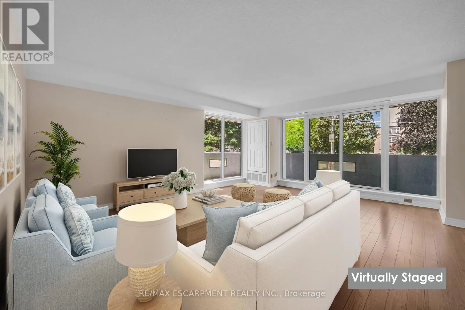 Cross Streets: Main St W/Caroline St S. ** Directions: Niagara-QEW to Hamilton, RedHillVlyPkwy, King Exit, Right on King, Right on Mtn Access, Kenilworth to Sherman, Left on CharltonAveE, Right on BayStS |Toronto-QEW to Hamilton, Main St W exit from ON-403W, Merge onto HWY8/MainStW, Right on CarolineStS. BRIGHT, SPACIOUS & STEPS TO EVERYTHING... Unit 203 at 67 Caroline Street South is a 1521 sq ft CORNER UNIT in Bentley Place, nestled in the heart of Hamilton's vibrant Durand North neighbourhood. This bright and beautifully laid-out suite offers the perfect blend of space, comfort, and unbeatable location. Step inside and be greeted by an OVERSIZED LIVING ROOM with expansive windows that flood the space with natural light plus WALK OUT to a private, WRAP-AROUND CORNER BALCONY. The living space flows seamlessly into a formal dining room with bay window and a spacious eat-in kitchen loaded with abundant cabinetry and an extended dining nook, perfect for everyday meals or entertaining guests. The primary suite is your own private haven, featuring a walk-in closet, 4-pc ensuite with soaker tub and separate shower, and a balconette walk-out for a touch of fresh air. A generous second bedroom with walk-in closet, a second full bath, and convenient in-suite laundry complete the layout. This unit includes TWO parking spaces (1 underground P2#4, 1 surface #14), and the building offers fantastic AMENITIES including an exercise room and party room with kitchen. Bonus: the building has all NEW THERMAL WINDOWS (2025), adding value and energy efficiency. Location is everything and this one delivers! Enjoy walkable access to nearby parks, Locke Street, and Hess Village, with boutique shopping, amazing restaurants, and the GO Station just minutes away. If you're seeking a spacious and sun-filled condo in one of Hamilton's most desirable neighbourhoods, this is it. CLICK ON MULTIMEDIA for virtual tour, drone photos, floor plans & more. (id:27476)