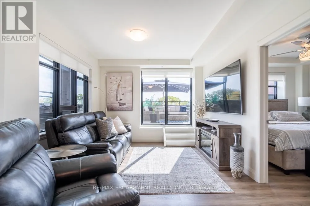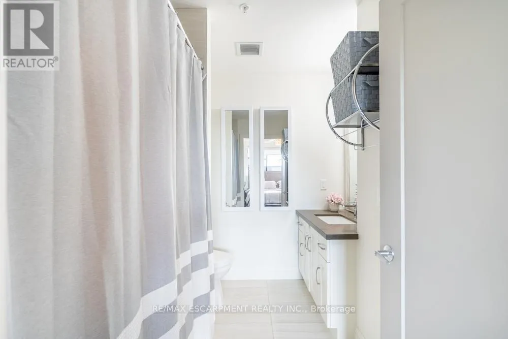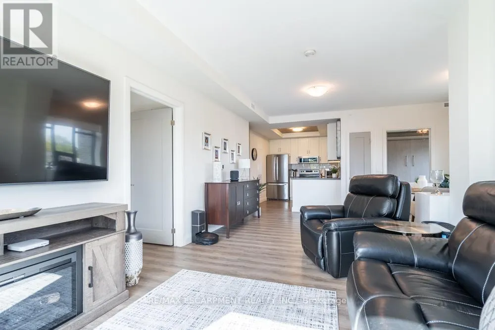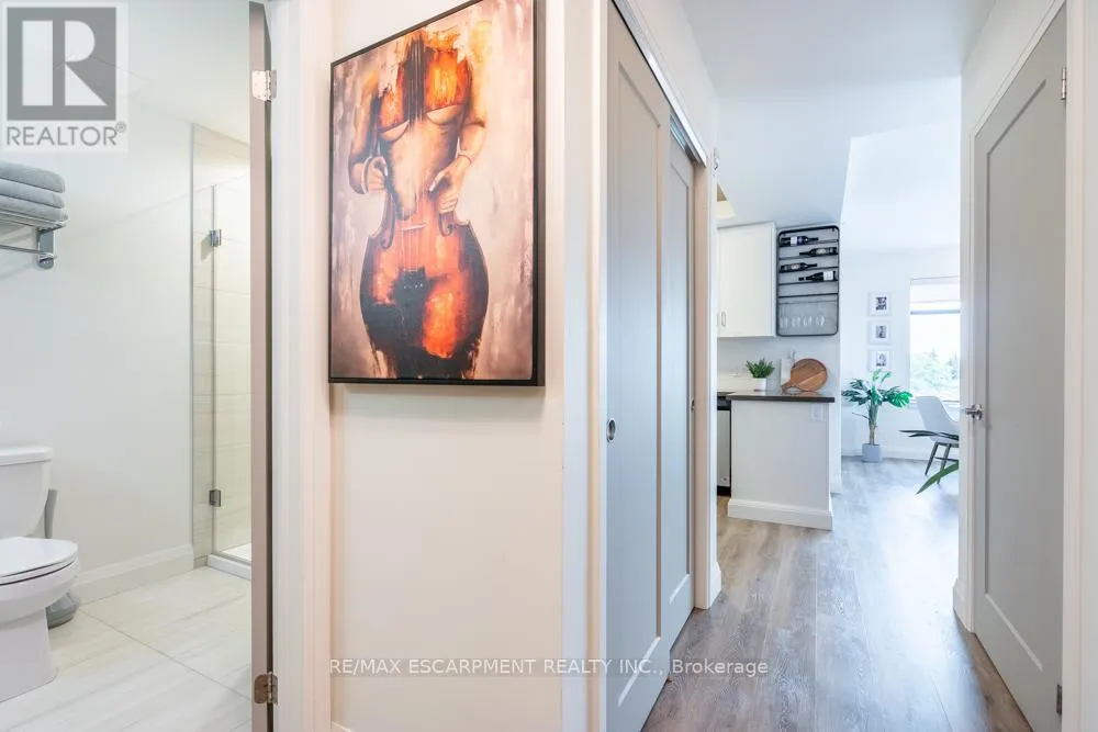 Cross Streets: Dundas St E. ** Directions: Dundas St E to Hamilton St S. Dreaming of condo living without giving up your outdoor space? This rarely offered corner unit delivers the best of both worlds with a massive 600 sq ft private terrace perfect for entertaining, relaxing and soaking up incredible lake AND city views. Inside, you'll find a 2-bed, 2-bath gem loaded with upgrades: a chef's kitchen with beautiful quartz counters, clean white subway tile backsplash, soft-close custom cabinetry, undercabinet lighting and a breakfast bar. The bedrooms are spacious, and the primary suite has its own four-piece ensuite. Enjoy in-suite laundry for your convenience. That's not all, this building has stunning amenities including a lavish party room, a dog wash station, a gym and rooftop patio. And the location? Unbeatable. Steps to restaurants, groceries, trails and highway access, all in the heart of Waterdown. This one has it all. RSA. (id:27476)