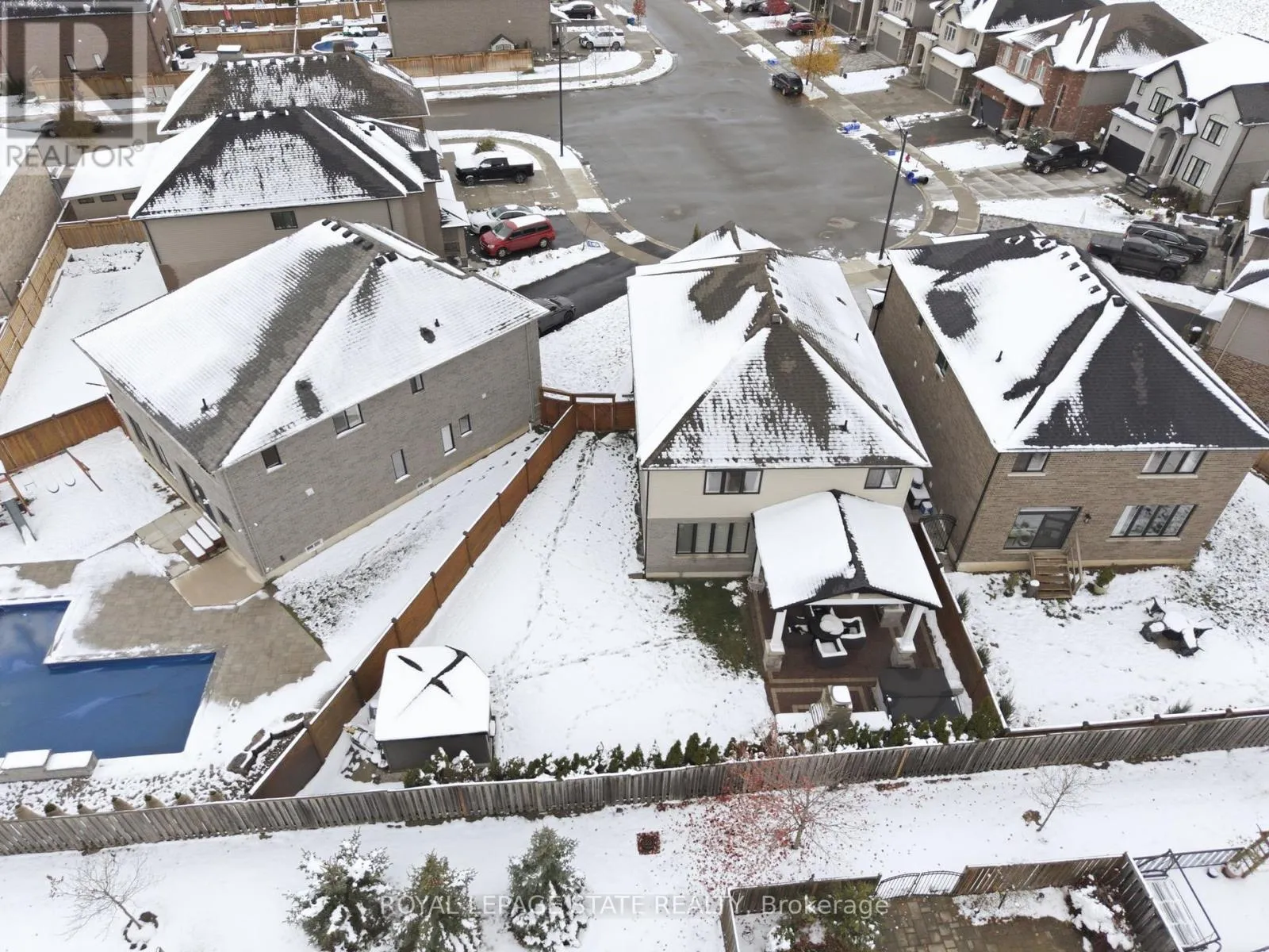Cross Streets: Daw Ave. ** Directions: From Hwy 56, West on Fall Fair Way, North on Daw and located in the court on Festival Way. Welcome to 16 Festival Way, an executive residence featuring nearly 3,700 sq. ft. of luxuriously finished living space, set on a large, pool-sized, pie-shaped lot. Nestled in one of Binbrook's most prestigious courts, this exceptional 4-bedroom, 4 bath home effortlessly blends timeless elegance with modern sophistication. Step into the impressive 2-storey foyer, where wainscoting and herringbone tile set the tone for refined design. The open-concept main floor showcases natural white oak hardwood and crown moulding throughout, creating an inviting yet upscale atmosphere. At the heart of the home lies the custom chef-inspired kitchen, featuring an expansive 10-foot island, oversized cabinetry, quartz countertops, and top-of-the-line GE Café and Jenn-Air appliances. The adjoining living room centers around a custom tiled bio-ethanol fireplace, while the formal dining room, powder room, and laundry/mudroom complete this beautifully designed level. Beyond the 8-foot glass doors, your outdoor oasis awaits a custom stone kitchen with concrete countertops, built-in natural gas Napoleon grill, and a spacious covered patio with cedar ceiling & pot lights ideal for year-round entertaining. A massive stone fireplace adds warmth and ambiance, making this the perfect retreat for cozy evenings. The upper level continues to feature white oak hardwood floors and crown moulding, leading to four generous sized bedrooms. The primary suite is a true sanctuary, featuring a spa-inspired 4-piece ensuite and a custom-built walk-in closet designed for ultimate organization and style. The fully finished basement provides comfort and versatility, complete with plush designer carpeting, an open-concept media room with a 130" high-end projector screen and built-in surround sound system, plus an oversized gym with mirror wall, a 3-piece bathroom, and ample storage. This remarkable home is rare, combines luxury, craftsmanship, and thoughtful design inside and out. (id:27476)
