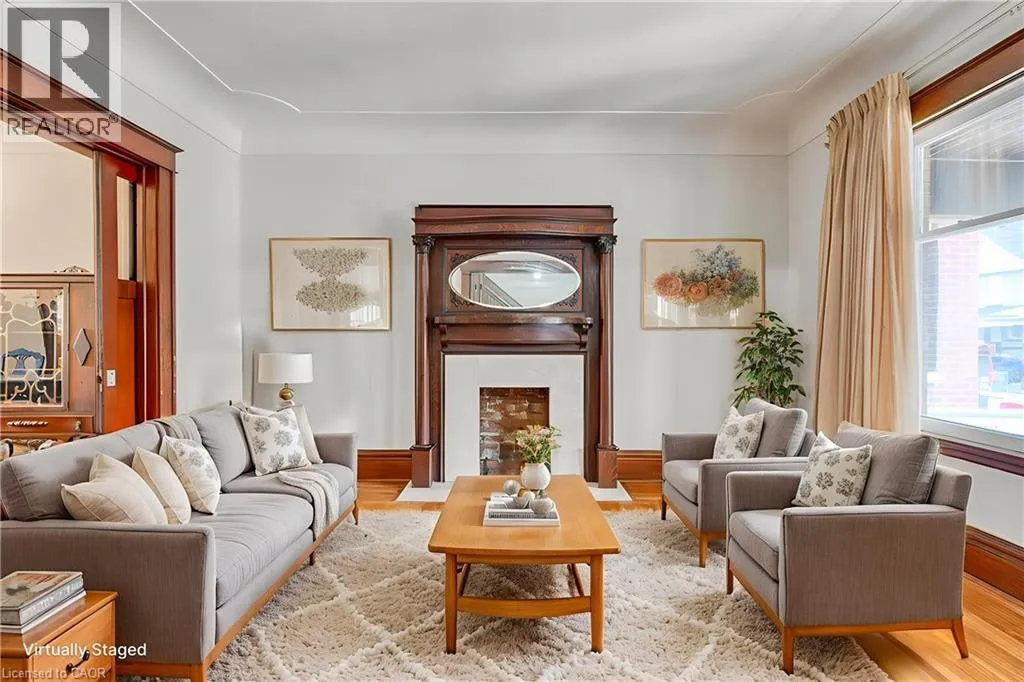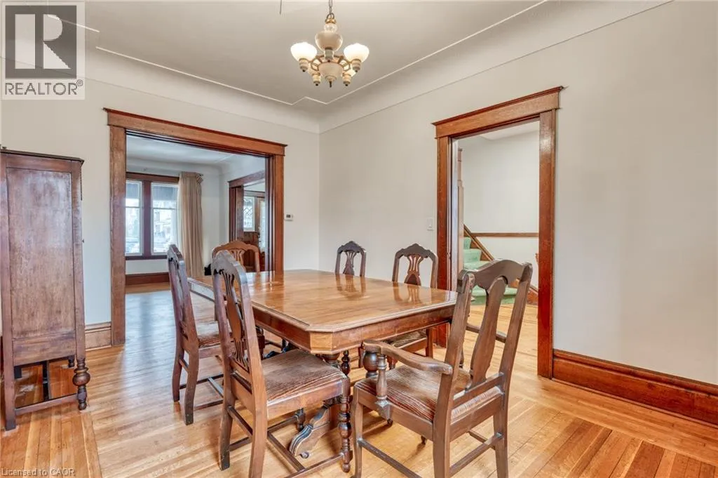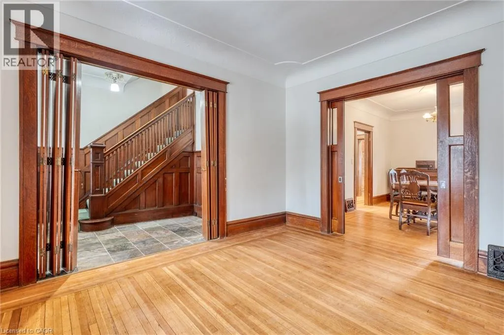 King St. to Barnesdale Loads of character in this home that offers 5 bedrooms, 2 bathrooms and detached garage. With over 1800 square feet plus the finished basement this home offers a lot of space for any family. This large family home offers hardwood flooring with inlay, pocket doors, high ceilings, large principal rooms. The bedroom level with 3 bedrooms, full bathroom offers an extra room that could be used as an office or extra closet space. The 3rd level with 2 extra bedrooms. Basement with recent bathroom and laundry room update. Detached garage (entry off of King St.) and driveway parking in front. This home has been maintained by the same owner for decades and sits in a great neighbourhood close to schools, parks, easy access to public transit. Shingles (2023). (id:27476)