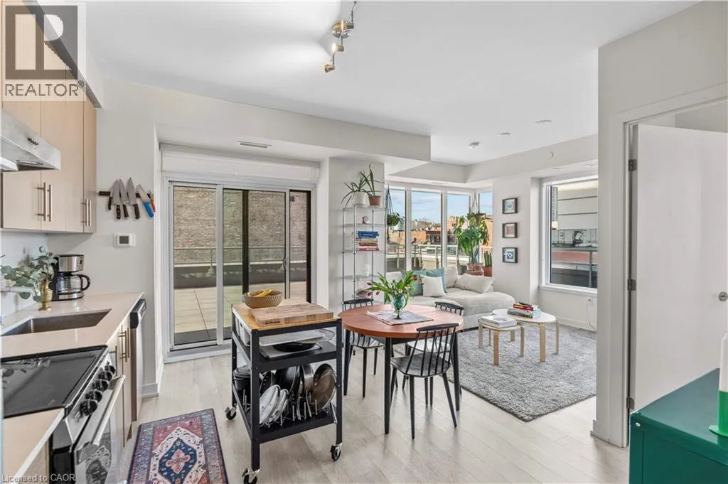 JARVIS/FURGUSEN TO KING WILLIAM ONE OF ONE! This 4th floor corner unit cannot be replicated: the only 607sf terrace with North AND West exposure ¬enjoy space, privacy and a view. A flomplan designed with lifestyle in mind, starting with a generous entryway with front hall closet, perfect for welcoming guests. The primary suite is tucked away, featuring a three piece ensuite with glass shower and full closet, the perfect hideaway for busy professionals who value sleep. The open concept main living space comes predecorated with floor to ceiling windows with inspiring city views, outfitted with privacy shades if that's more your style. Tall ceilings and neutral floors make a perfect backdrop for any decor, and the open floor plan makes for endless furnishing opportunities. This space is anchored by an efficient kitchen finished in light oak cabinetry with a sleek penny tile backsplash, modern stainless appliances, stone counter and undermount sink A second full bedroom with closet, and a stylish 4 piece bath ensure this space will work for any lifestyle. Sold with 1 underground parking (close to the stairs!), and 1 locker. Added bonus: roof top patio with bbqs, party room, full executive gym, pet spa - complimentary amenities to enjoy! (id:27476)