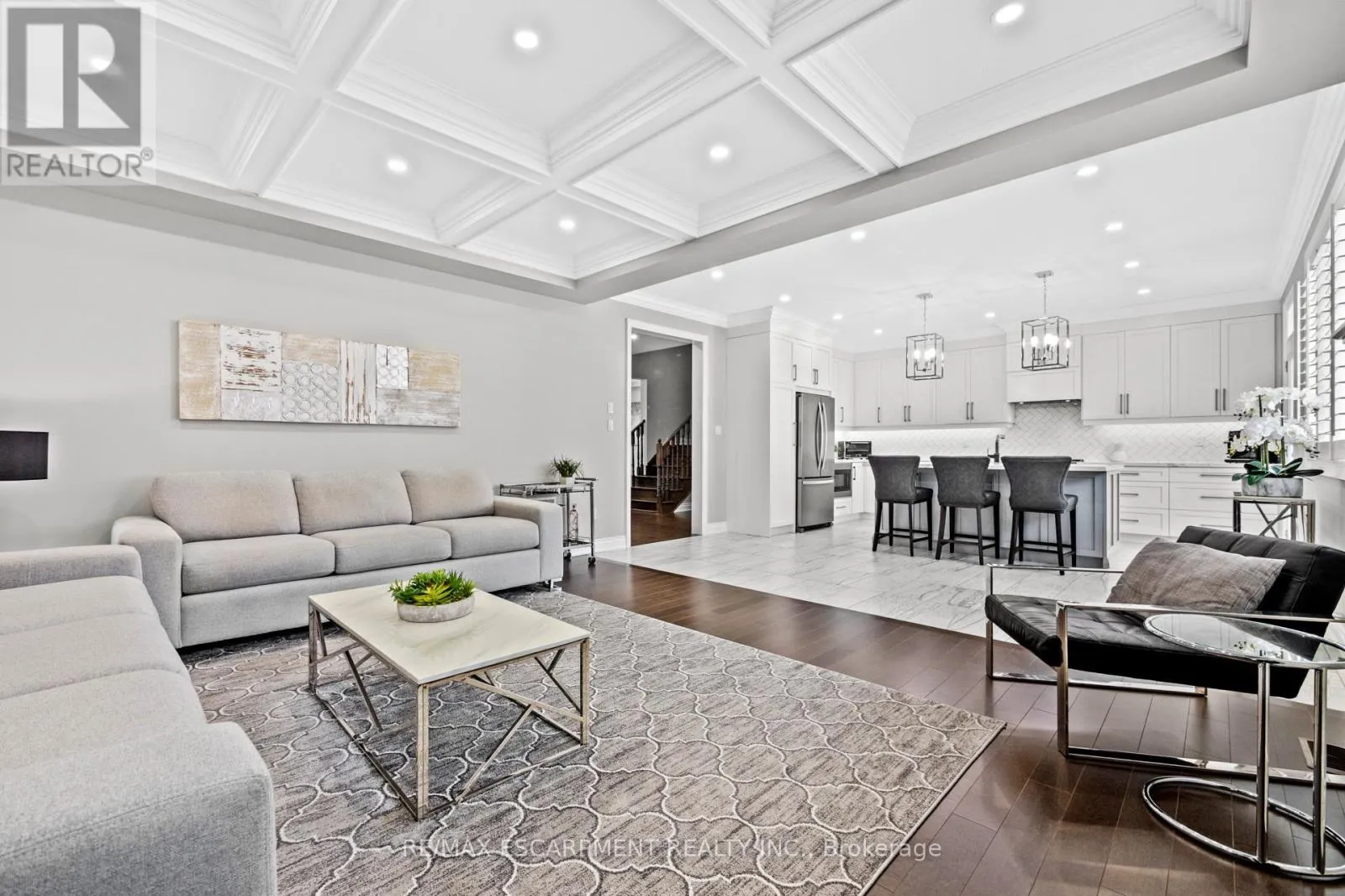 Cross Streets: Dundas St & Burke St. ** Directions: Burke St. South To Kenesky Dr. To Avanti Cres. Welcome To 107 Avanti Crescent, A Beautiful Detached Home On One Of The Most Sought-After Streets In Waterdown's Mountainview Heights Community. With Nearly 3,000 Sq Ft Of Finished Living Space Above Grade, This 4-Bedroom, 3.5-Bath Home Offers A Great Layout And High-End Finishes Throughout. The Entire Home Is Carpet-Free, With Hardwood Flooring On The Main Level, Pot Lights, And A Custom White Shaker Kitchen With Quartz Countertops, An Oversized Island With Seating And Stainless Steel Appliances. The Family Room Is Warm And Welcoming With A Gas Fireplace And Coffered Ceiling. Both The Main And Upper Levels Boast 9 Foot Ceilings & The Home Features California Shutters Throughout. Upstairs, Every Bedroom Has A Walk-In Closet And Access To A Bathroom, Perfect For Families, Including A Spacious Primary Suite With Dual Walk-In Closets And A Luxurious 5-Piece Ensuite. Exterior Pot Lights Surround The Home For Added Curb Appeal. The Unfinished Basement Includes A Rough-In For A Bathroom And Room To Grow. Located Close To Top-Rated Schools, Parks, Trails, And Highways 403/407, This Is A Rare Opportunity To Own A Stunning Home In One Of Waterdown's Best Neighbourhoods. (id:27476)
