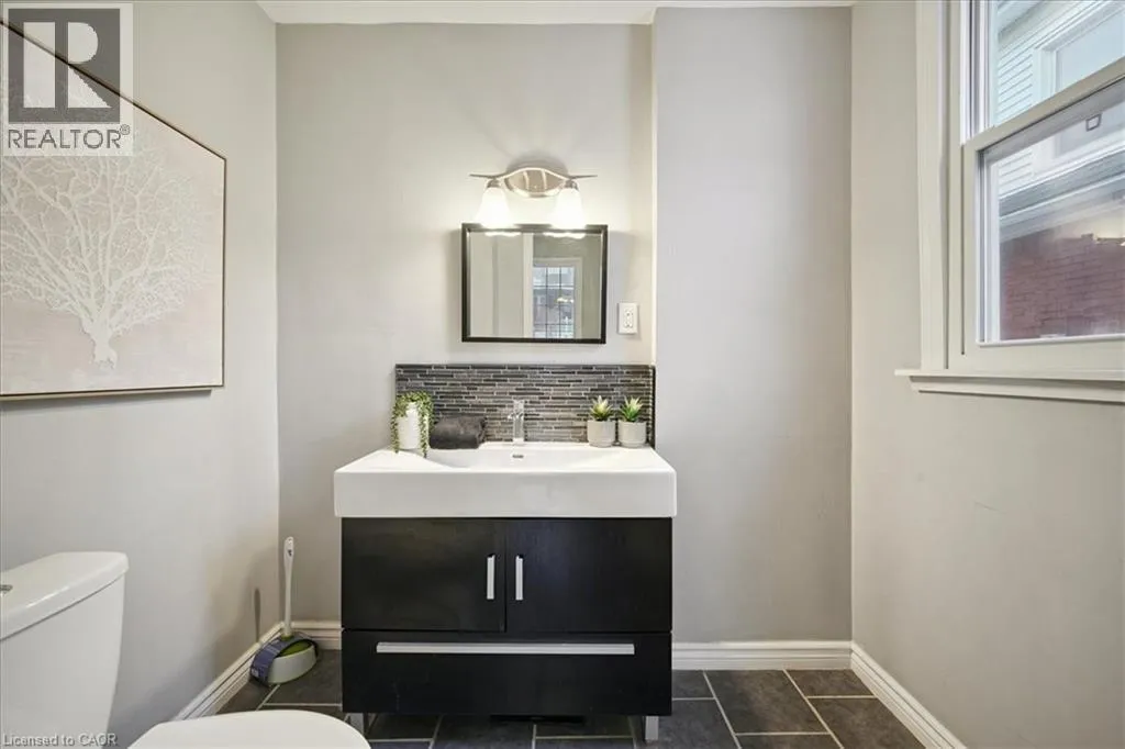 Roxborough to Paling 171 Paling Avenue is a great opportunity for buyers seeking a move-in-ready home with future flexibility. Fresh paint (2025), light fixtures (2025) and flooring create a bright, clean feel throughout, while main-floor laundry adds everyday convenience. A main-floor bedroom with its own ensuite 2-piece bath offers excellent versatility, ideal for multi-generational living, a home office, or den with potential to expand to a 3-piece bathroom. Upstairs, the home features three generously sized bedrooms, including a spacious primary bedroom with a walk-in closet, providing comfortable and functional family living. The fully fenced yard provides private outdoor space for pets, kids, or entertaining. The layout also allows for the potential to be converted back into a duplex, providing long-term adaptability as needs change. Rear parking potential, in addition to one front driveway space, adds practical value. Conveniently located close to transit, amenities, and major routes, this property represents a smart entry point into the Hamilton market. (id:27476)