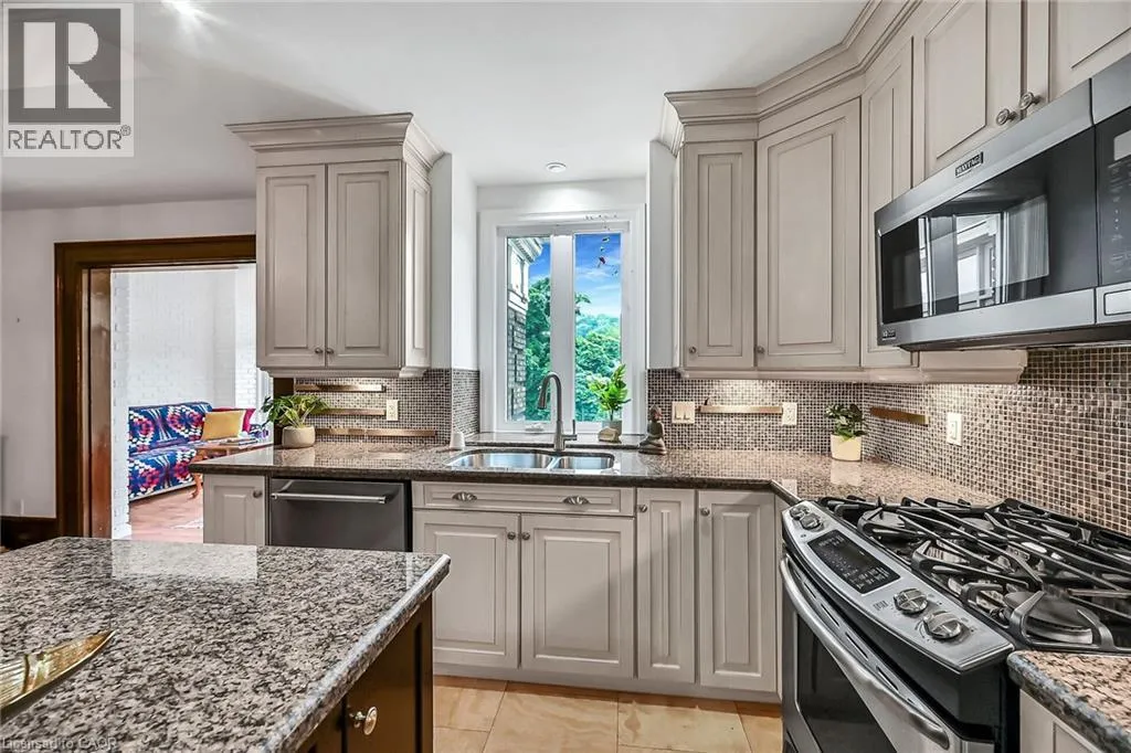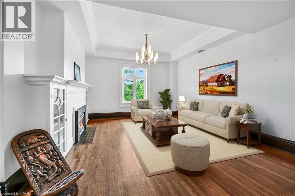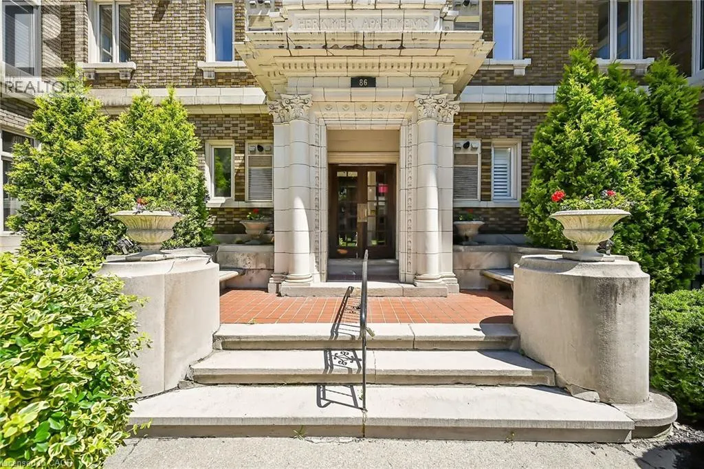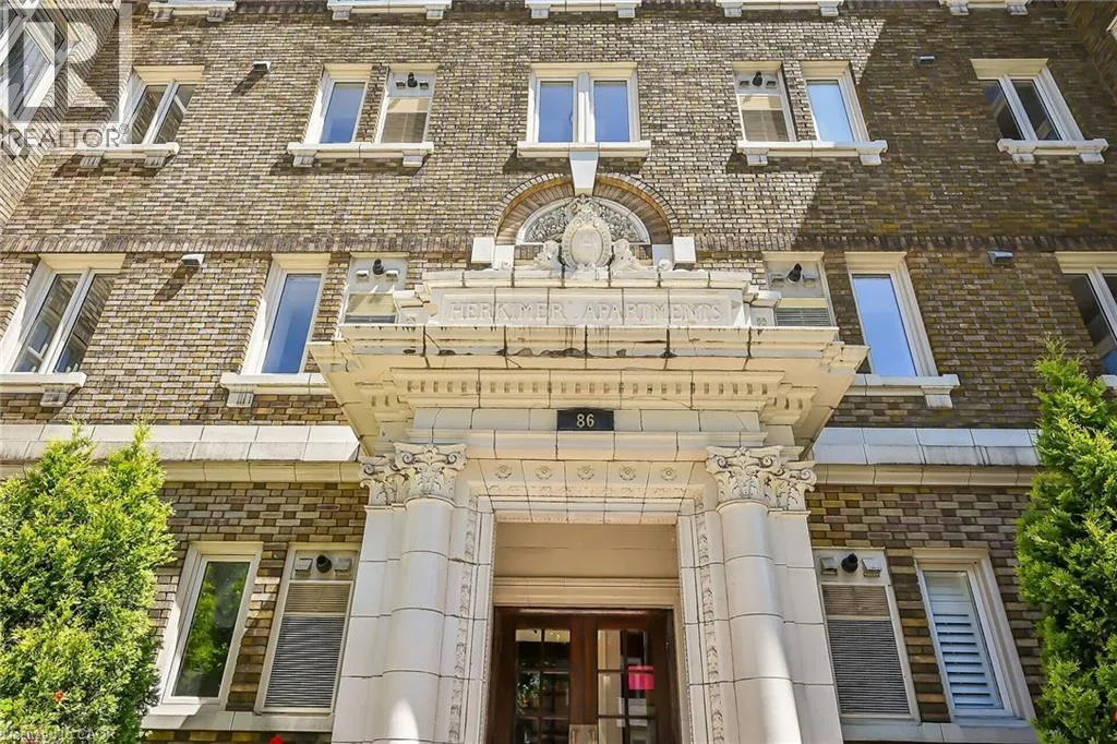 Aberdeen to Queen. Right on Herkimer Rare Find! Welcome to this timeless penthouse in the Historic Herkimer Apartments! Located in the heart of Hamilton's prestigious Durand neighbourhood, this spectacular 2-bedroom, 1.5-bathroom condo blends historic elegance with modern convenience. This penthouse unit features inlaid hardwood floors, coffered 10' ceilings, crown mouldings, pot lights, and a gas fireplace in the living room with built-in cabinetry. The open-concept kitchen boasts granite counters, an island with breakfast bar, and abundant cabinetry. Enjoy the 3 piece jacuzzi shower, in-suite laundry, and two separate entrances for added flexibility. Relax in the sunroom with breathtaking views of the Niagara Escarpment, through oversized windows, or entertain on the rooftop deck and terrace available to residents. Including in the terrace breathtaking city views, are sitting areas, gas bbq and gas fire table under a large gazebo. For added peace of mind, the in unit Furnace and Air-conditioning has been replaced in November 2025. Includes garage parking, two lockers, and all the charm of a historic building with the modern lifestyle of today. Don't miss this rare opportunity to own a piece of architectural history in one of Hamilton's finest neighborhood's! RSA (id:27476)