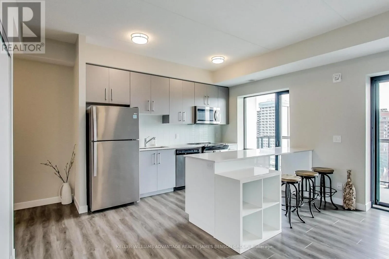 Queen St S & King St W Welcome to Platinum Condos!! Located at the intersection of King & Queen in Downtown Hamilton. Stunning, bright, sun-filled, South facing, open concept Two Bedroom, Two Bathroom with Parking and locker unit featuring: 9 foot high ceilings, laminate flooring throughout, extended height kitchen cabinets with upgraded S/S Appliances, backsplash and Quartz Countertops, full-size in- suite laundry, Private Large Balcony with escarpment / city views. Walk to everything, Hess Village, Breweries, Shops, Restaurants & Cafes. Minutes to Hamilton GO, West Harbour GO, Bus routes. McMaster University is just minutes away by bus, minutes From Hwy 403. Amenities Include a State-Of-The-Art Gym, Yoga Deck, Party Room and Rooftop Terrace. (id:27476)