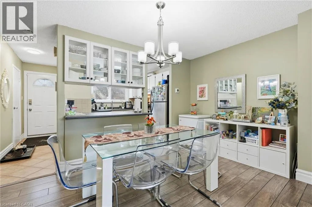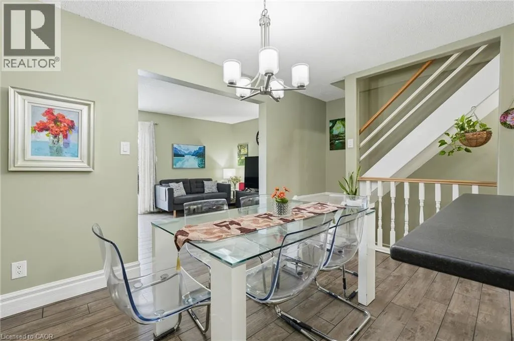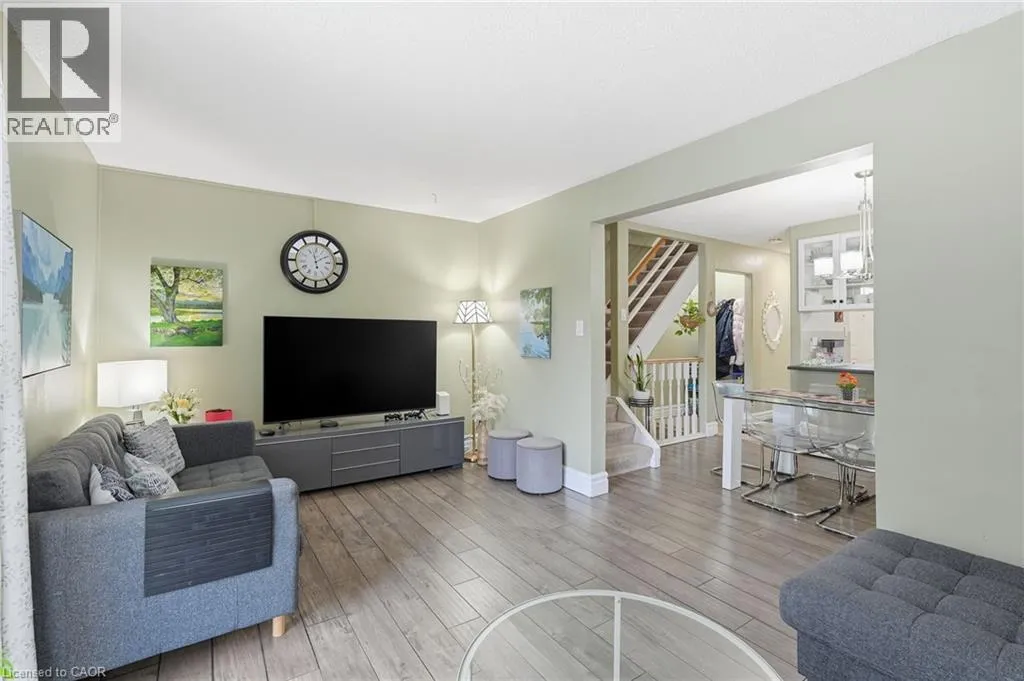 Between Stone Church & Regent on Garth Located in one of the strongest neighbourhoods on the West Mountain, this fully renovated 3+1 bedroom, 2-bath townhouse offers exceptional value for first-time buyers, investors, and families alike. The home features an open concept dining and living space, ideal for everyday living and entertaining. Enjoy direct highway access for easy commuting, along with strong schools, a close-knit community, and nearby amenities. Backing onto green space for added privacy, the property also includes a closed backyard perfect for outdoor enjoyment. A finished basement adds a fourth bedroom, offering flexible living space for guests, a home office, or growing families. Condo fees include building insurance, cable TV, high-speed internet, water, parking, exterior maintenance, common elements, and other services, adding value and convenience in a strategically located setting. (id:27476)