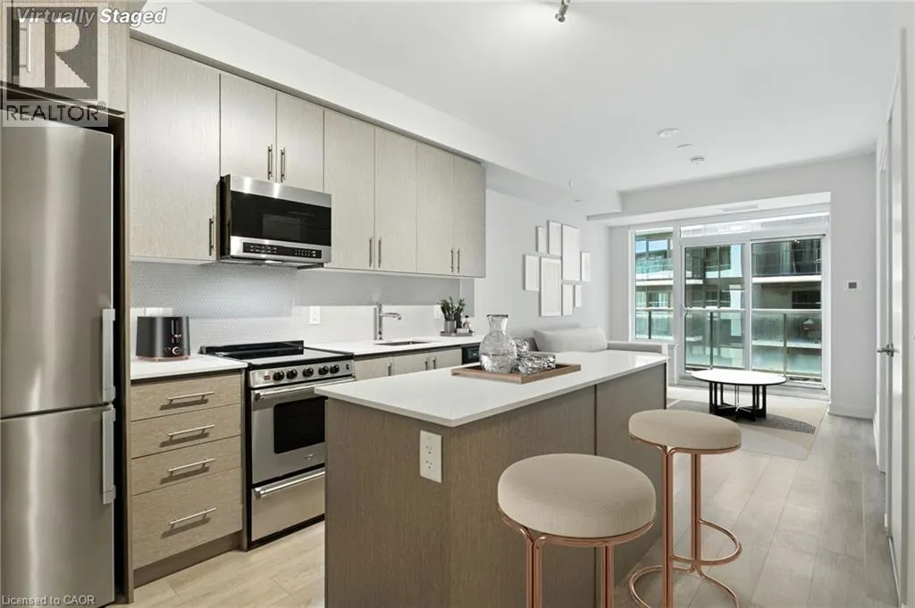 Wellington St N to King William Experience stylish urban living at its finest in this beautiful Kiwi Condo, ideally located in the heart of downtown Hamilton. This vibrant community puts you just steps from shops, restaurants, entertainment, transit, and everything the city has to offer. The building is packed with upscale amenities, including a state-of-the-art gym and yoga studio, a welcoming concierge, a rooftop terrace with BBQs and sweeping city views, a dog wash station, mail room, and a spacious party room with fireplace and full kitchenâperfect for entertaining. Inside the unit, youâll find a thoughtfully designed 1-bedroom, 1-bathroom layout with an airy open-concept kitchen and living area. The sleek, modern kitchen features stainless steel appliances, an island, and ample storage, while the living room flows effortlessly to a large private balcony through sliding glass doors. Convenience is key, with in-suite laundry and controlled entry for peace of mind. Parking is available at nearby municipal lots, making this property as practical as it is stylish. This condo is the perfect opportunity to secure a slice of Hamiltonâs thriving downtown lifestyle. (id:27476)