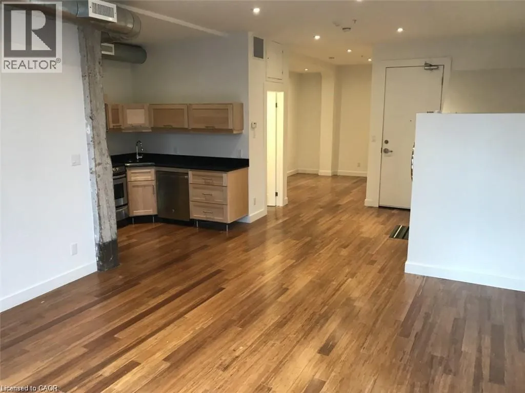 King St E to Walnut St S Sign a 13th month lease agreement and get one-month free rent! This exceptional Studio style one bedroom apartment combines style and convenience, featuring hardwood floors, granite countertops, maple cabinetry, and in-suite laundry. Enjoy the view from your own balcony. Located in the vibrant International Village, you'll be just steps away from local shops, dining, and transportation including the popular Brothers Grimm Bistro located in the lower level of the building. Brothers Grimm offers Tenants of 193 King St E. a 10% discount on food (dine-in) and 15% on take out food. Rent is plus hydro, and tenants can procure monthly parking just steps away in the rear parking lot (current price $95 monthly), additional parking is available in the lot directly across the street or at the meters steps from the front door. We use Single Key; Credit check, employment letter, references, and lease agreement required. Available for immediate move-in! (id:27476)