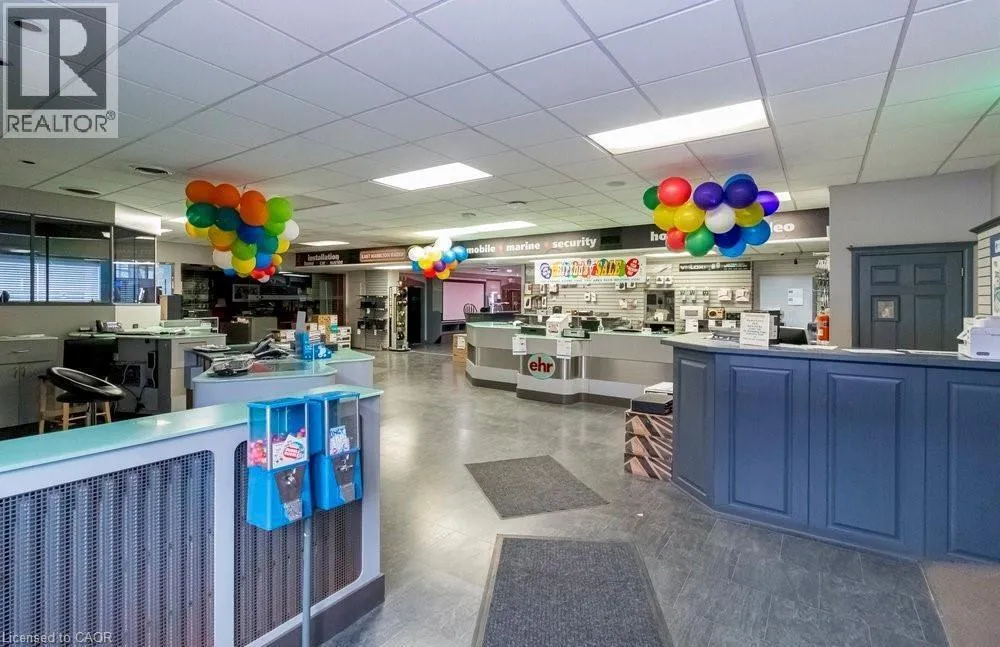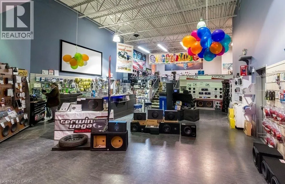 Corner of Barton E. and Kenilworth N. This high visibility corner property across from The Centre Mall offers 17,200+ sq. ft. of combined retail and warehouse space on 0.84 acre property. The steel and girder portion of the building added in 2000 offers 20' ceiling height, partial mezzanine office level & underground parking/install bay for approx. 10 cars. The building offers approx. 17, 200 sq. ft. + 2000 mezzanine an includes the large retail show room space with enclosed an separated sections, 20' area and sound proof movie theatre & listening rooms. Separate main floor offices, large warehousing space w/delivery bays. The basement offers storage rooms & kitchen/lunch room. Underground parking/install bay w/workshop. Surface parking lot accommodates approx. 36 cars. Zoning C2, C5. Environmental Phase I (2025) available. Property for sale only, the business is not for sale. (id:27476)