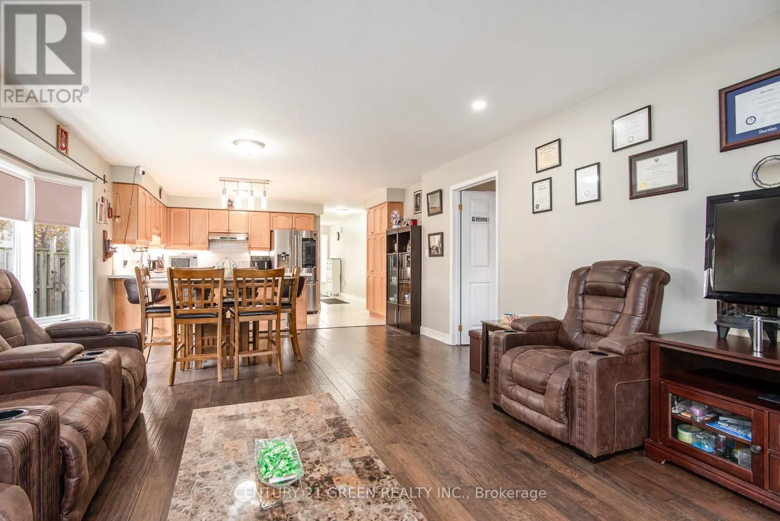 Cross Streets: Dakota Blvd. ** Directions: Rymal Rd E and Dakota Blvd. Beautiful Freehold End-Unit Bungalow on Premium Lot. Welcome to this immaculately maintained one-storey home, perfectly situated on a large, fully fenced premium lot with a spacious deck, garden shed. This all-brick bungalow offers a blend of comfort, style, and thoughtful upgrades throughout. The open-concept main living area features extended tile flooring from the foyer to the kitchen, hardwood floors, and abundant pot lights. The bright family room opens to the stunning backyard, perfect for entertaining or relaxing. The modern kitchen offers granite countertops, undermount sink, backsplash, pendant lighting, and a valance with lights, plus a convenient breakfast bar. The primary bedroom includes a custom ensuite with walk-in shower and granite vanity, while the main bath also features granite finishes. The second bedroom is bright and spacious. Main floor laundry includes a utility sink and direct access to the garage. The fully finished basement offers exceptional additional living space, including two large bedrooms and a full bathroom-perfect for guests, teens, or extended family. Recent Updates: Roof shingles (2020) Walkway and deck gazebo (2020) Furnace, A/C, and tankless water heater (2020) New pot lights in living room and basement (2025) Sump pump replaced (2024) Fridge, stove, dishwasher, range hood, washer and dryer updated in past few years. This home is move-in ready, with pride of ownership evident throughout. A rare opportunity to own a beautifully updated bungalow in a desirable, family-friendly neighbourhood. (id:27476)